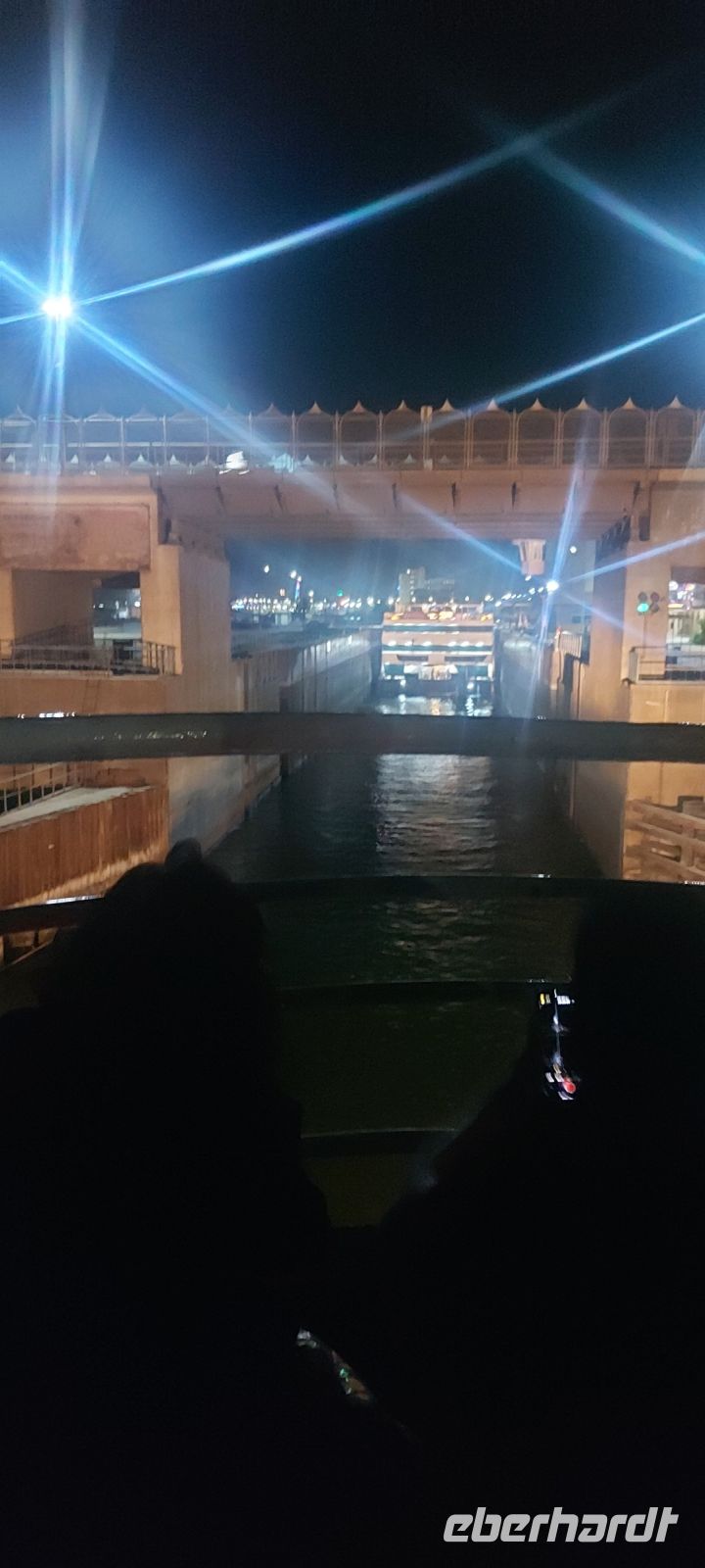 Wir fahren weiter Richtung Süden und gelangen am frühen Nachmittag nach Kom Ombo. Hier besichtigen wir die Kultstätte von Sobek und Horus - den Doppeltempel, der über dem Nil aufragt, ein beeindruckendes Bauwerk und wieder anders als alle anderen Tempel, die wir bisher gesehen haben. Dieser Tempel war ein Pilgerziel gegen Krankheiten, die Inschriften zeugen davon. Der Doppeltempel ist dem Krokodilgott Sobek gewidmet. Ein Museum zeigt Krokodilmumien. Das Abendessen ist heute Orientalisch. Die Crew trägt das lange traditionelle Gewand Galabeya und lädt uns zum Anschluss in die Lounge zum Galabeya-Abend ein. Es wird getanzt und gespielt mit allen Nationen, die auf dem Schiff anwesend ist. Zum Abschluss gibt es noch eine Tombola mit traditionellen Geschenken aus Ägypten. Heute Abend legen wir in Assuan an, wo wir die nächsten Tage bleiben.