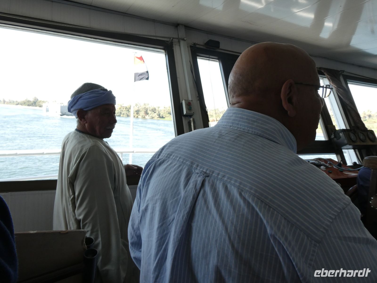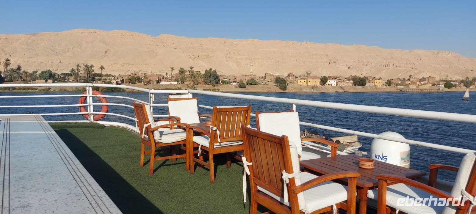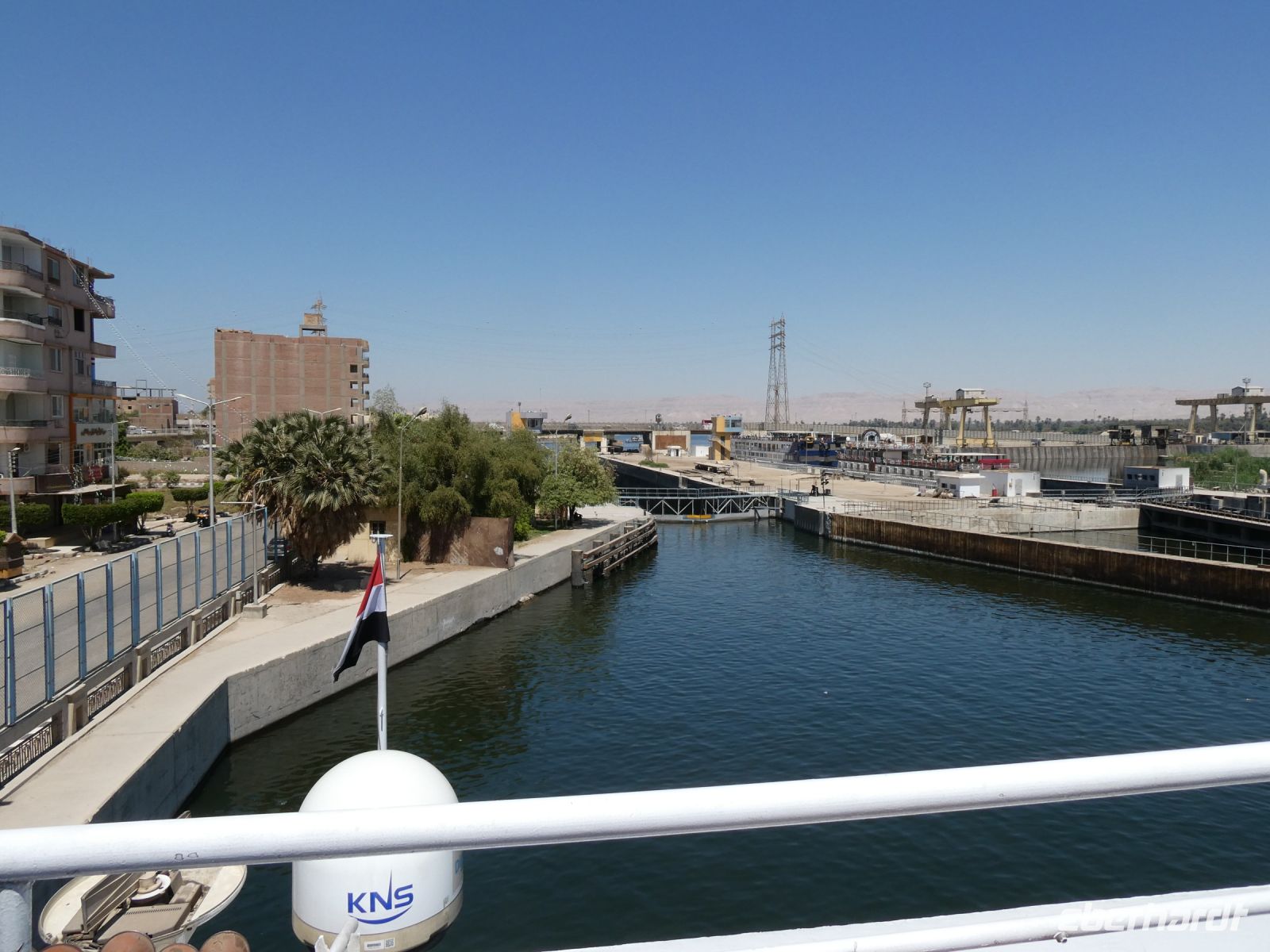 Nach dem Frühstück im Restaurant der MS Nile Style treffen wir uns mit unserem örtlichen Reiseleiter Essam in der Lounge-Bar. Heute wird er uns einen Vortrag über Land, Leute und die Stellung der Frau im Islam im modernen Ägypten halten und uns auch einige Traditionen erklären. Wir hören gespannt zu und können anschließend noch Fragen stellen. Wir erfahren, dass Moslems in Ägypten nicht mit Moslems in den umliegenden Ländern wie beispielsweise Syrien oder Saudi-Arabien zu vergleichen sind. Ägypter sind Kopten (Christen) oder Moslems. Die ägyptischen Moslems leben ihren Glauben nicht unter Zwang, sondern wie der Islam es im Koran empfiehlt. Kopftücher sind für Frauen keine staatliche Pflicht, außer in den heiligen Räumen der Moscheen. Daher ist auch der Ramadan eine Freude für sie, auch wenn die Entbehrung - gerade bei diesen heißen Temperaturen - nicht einfach ist. Der Islam basiert auf fünf Säulen, die Essam uns ausgiebig erklärt. So erhalten wir einen aktuellen Überblick über die Gesellschaft in Ägypten, in die wir in den letzten 10 Tagen einen Einblick gewinnen durften. Für den frühen Nachmittag verabreden wir uns, um die Kapitänszentrale unseres Schiffes zu besichtigen. Wir erfahren, wie die Tradition des Schiffsführers innerhalb der Familie vom Vater auf den Sohn vererbt wird, da für den Nil ein spezielles Wissen benötigt wird, das vor allem die einfachen Fischfänger haben. Am Nachmittag genießt der Großteil der Gruppe die herrliche Sonne und den fantastischen Ausblick auf das Nilufer vom Sonnendeck aus. Wir durchqueren gegen Mittag die Schleuse in Esna und fahren dann weiter nach Luxor, wo wir heute übernachten werden.