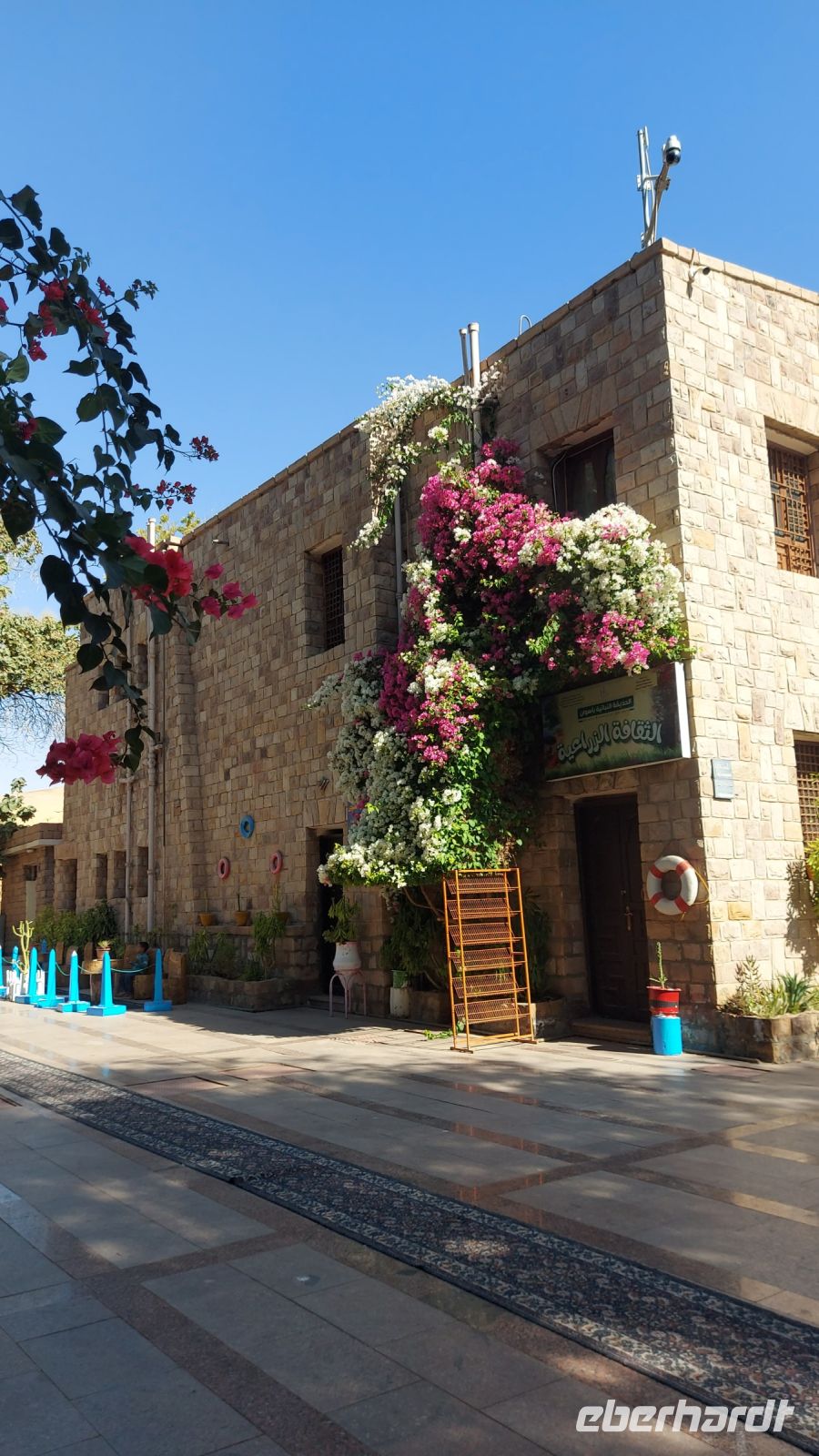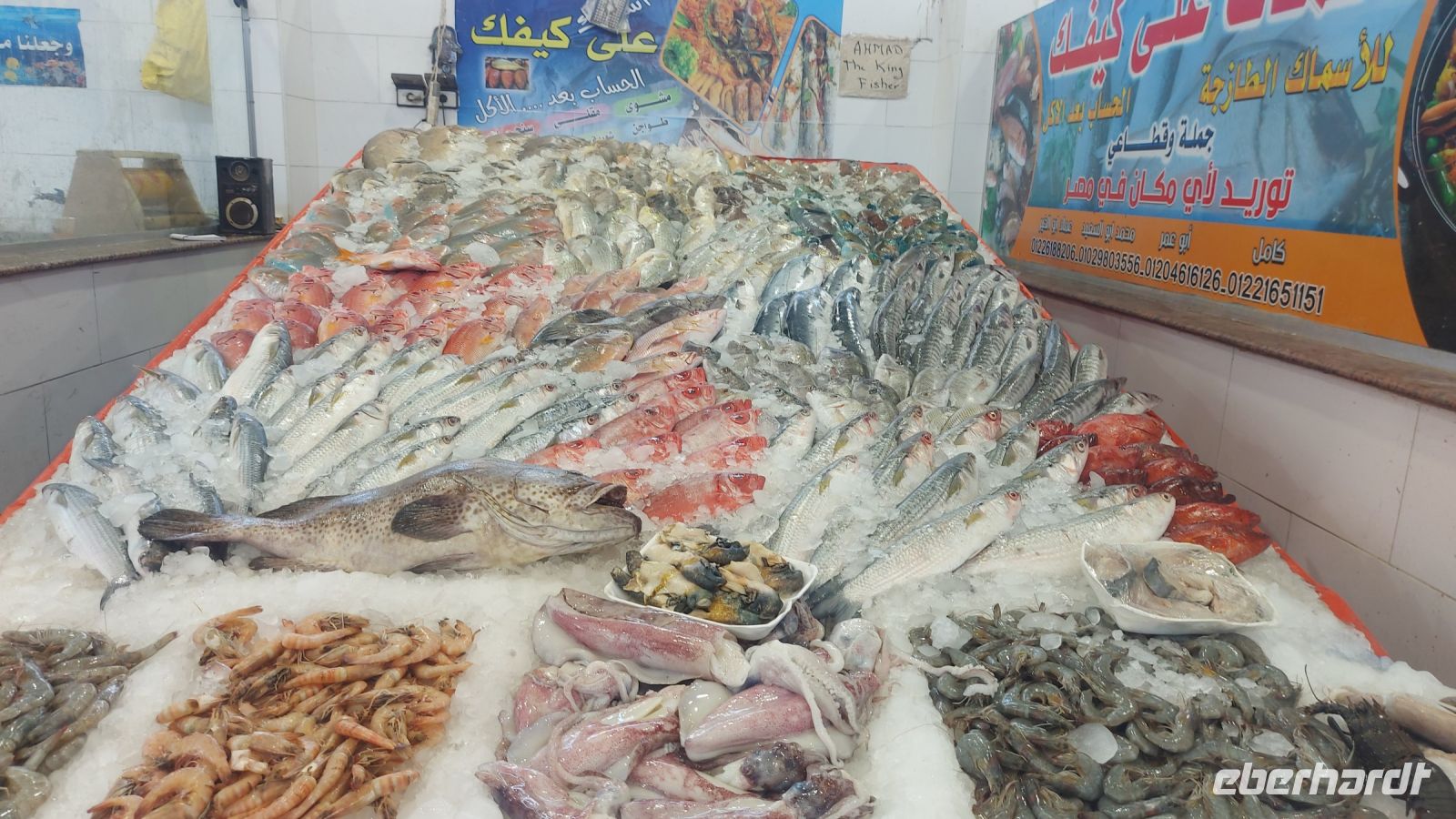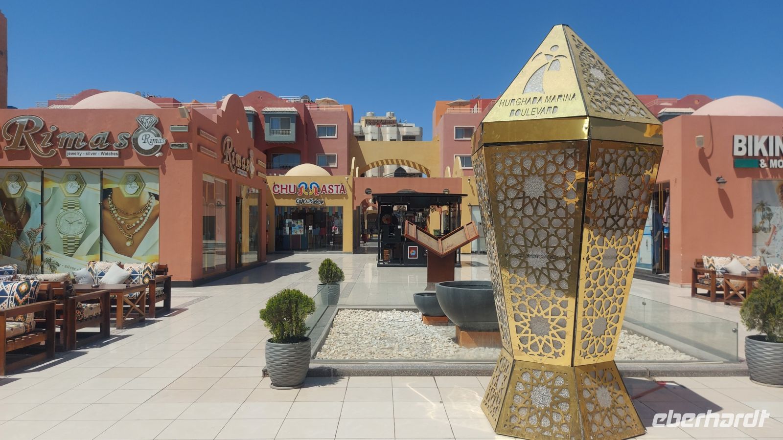 Nach dem Frühstück ist der Großteil der Gruppe daran interessiert, die Stadt Hurghada zu besichtigen, wie Essam angeboten hat. Essam erzählt, wie die Stadt sich in den 1980er Jahren zum Touristenort entwickelt hat. Rund 40 Kilometer Strand ziehen jedes Jahr viele deutsche Gäste an. In Hurghada besichtigen wir Fisch- und Gemüsemärkte, eine koptische Kirche, die Marina (Hafen) und die große Moschee, aus der gerade der Imam zum Mittagsgebet ruft. Das Mittagessen nehmen wir im Hotel ein. Der Nachmittag steht allen Gästen frei zur Verfügung. Wir sehen uns am Strand oder am Pool und sortieren im Kopf die vielen Erlebnisse auf dieser Reise. Beim Abendessen wird Live Cooking geboten. Neben den ägyptischen Speisen werden internationale Gerichte angeboten, eine umwerfende Auswahl. Wer möchte, sitzt am Abend noch zusammen an der Pool-Bar, die jeden Abend ein besonderes Show-Programm auf der Bühne bietet.