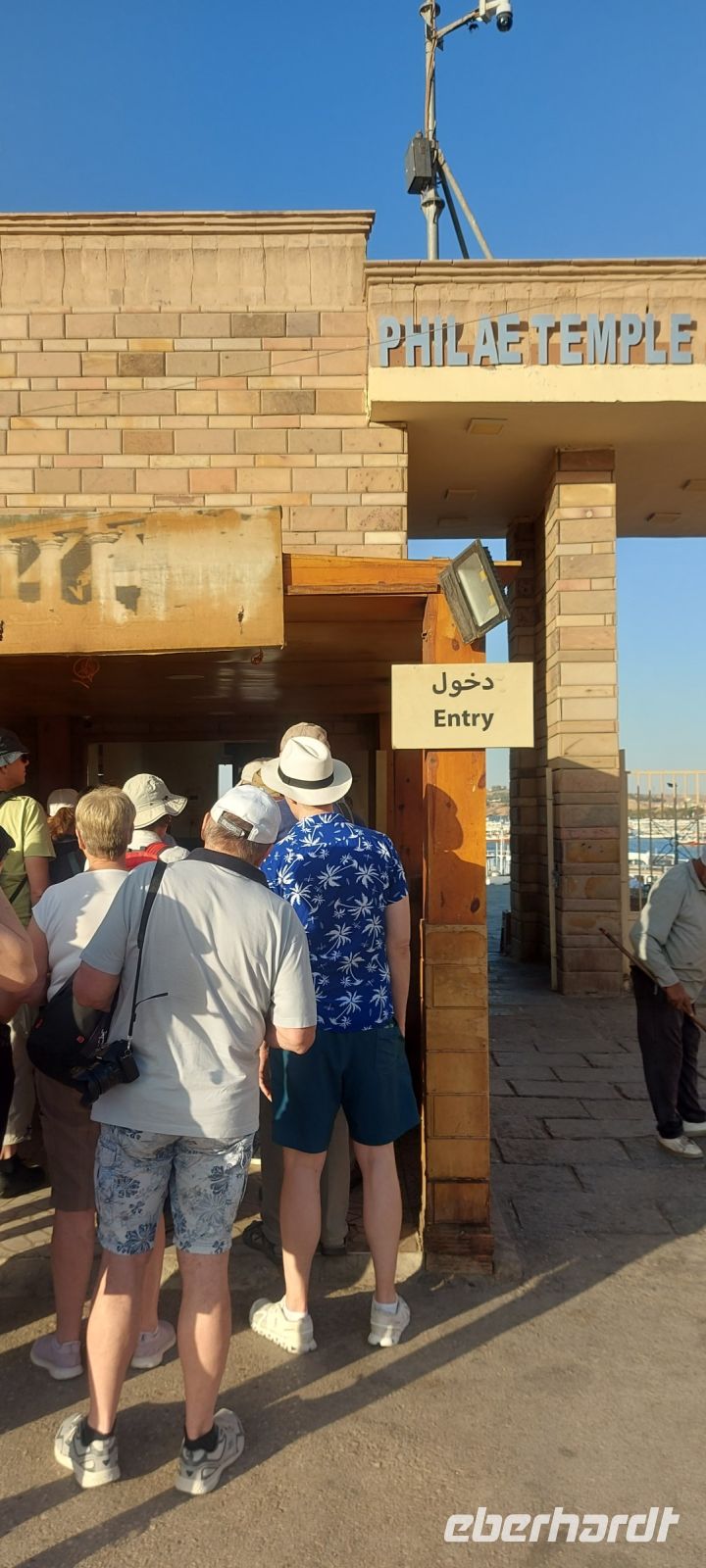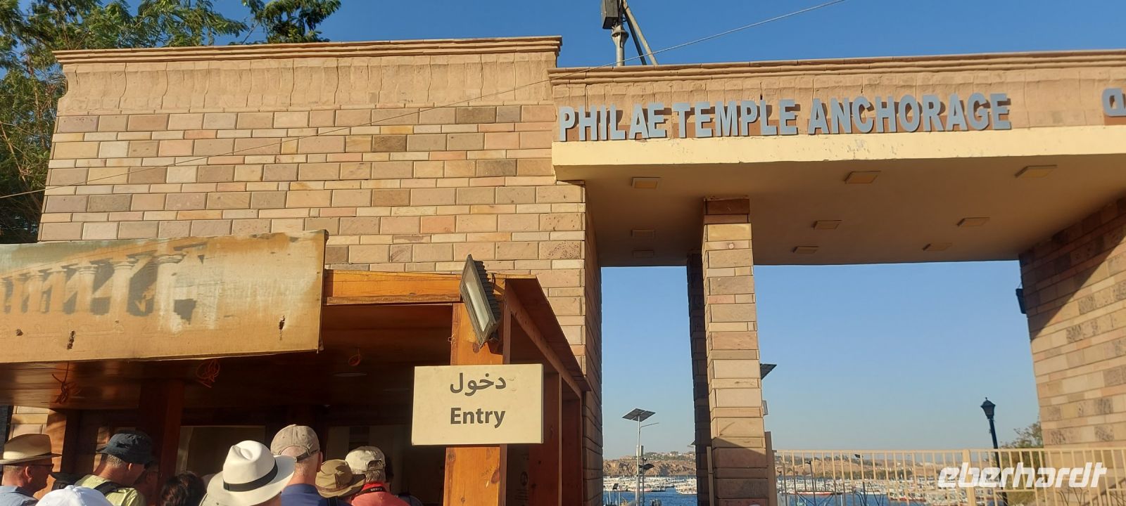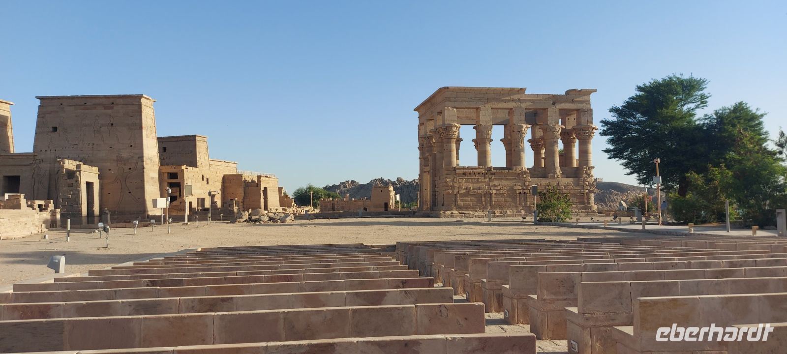 Den heutigen Tag verbringen wir in Assuan und Umgebung - im Goldland. Hier leben die Nubier, ein Volk, das von Ramses II bezwungen wurde, um die Streitigkeiten mit den Ägyptern beizulegen. Mit dem Bus machen wir einen Ausflug zum Isis-Tempel, den wir per Boot auf der Insel Agilkia nach einer kurzen Fahrt erreichen. Nach der Besichtigung fahren wir mit dem Bus weiter zum Hochdamm am Nasser-See, ein Projekt, das die Wasservorräte für Ägypten sichern soll und in den 70er Jahren fertiggestellt wurde. Der alte Staudamm ist ebenfalls noch zu sehen. Unsere Fahrt führt uns weiter zum Steinbruch in Assuan. Von hier stammt der rote Granit, den wir schon in vielen Tempeln gesehen haben. Zu sehen ist ein unfertiger Obelisk, der in seiner Größe alle bereits existierenden übertroffen hätte. Er liegt noch in den Granitfelsen, aber seine Umrisse sind gut zu erkennen. Ein weiteres Produkt aus Assuan ist Papyrus. Viel unechtes Papyrus wurde uns von den Händlern auf den Basaren bereits angeboten. In einer Fabrik sehen wir die Herstellung von der Pflanze bis zum hellen und noch kostbareren dunklen Papyrus. Es gibt Gelegenheit, einige schöne Bilder aus der Galerie zu kaufen. Viele davon stellen Szenen da, die wir bereits in den Tempeln gesehen haben.