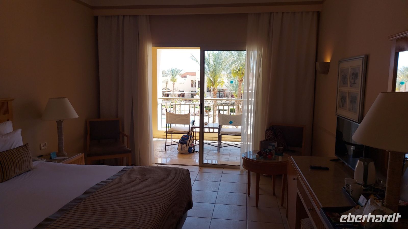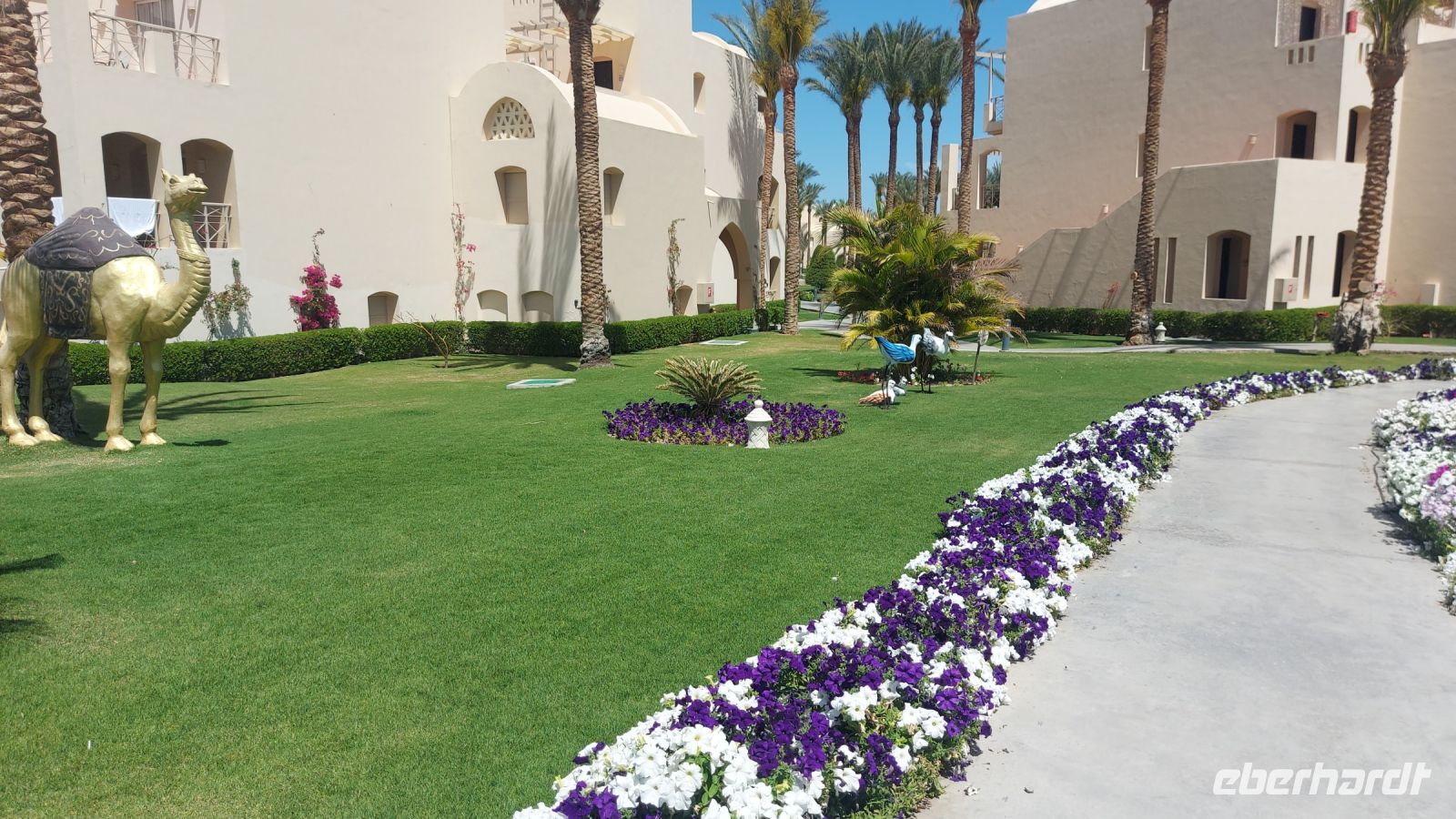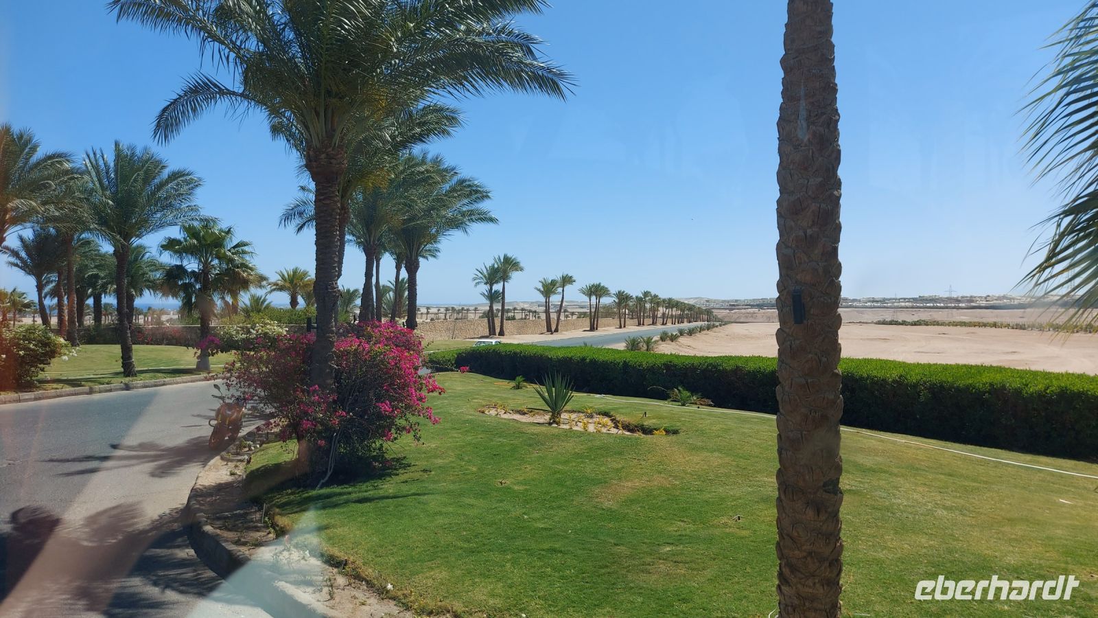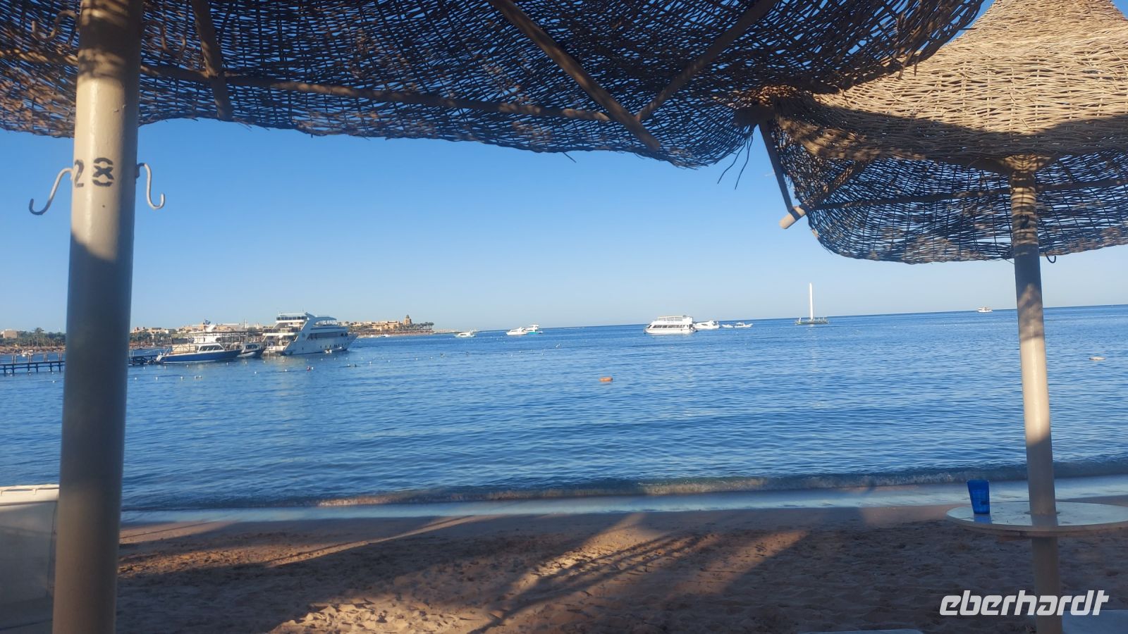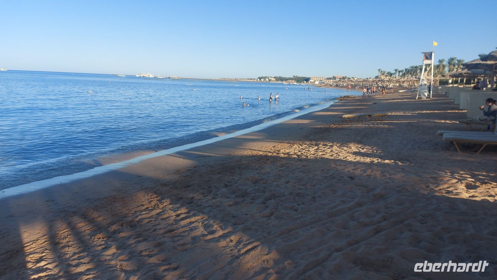 Am frühen morgen verlassen wir nach dem Frühstück das Schiff und verabschieden uns von der freundlichen Crew. Mit dem Reisebus fahren wir einige Stunden durch die Wüste Sinai bis wir nach Hurghada gelangen. Unser schönes Hotel Jaz Makadi Star & Spa liegt außerhalb direkt am Sandstrand. Wir checken ein und gehen über die Poolanlage zu unseren Zimmern. Das Mittagessen genießen wir im Hotel. Im Anschluss ist Zeit zum Ausruchen am Pool oder am Strand. Mit unserem grünen Bändchen bewaffnet lassen wir uns an der Pool- oder Strandbar verwöhnen. Das Abendessen nehmen wir im Hotel ein. Die letzten Tage sind der Entspannungen gewidmet. Unser Reiseleiter Essam ist dabei und organisiert weitere fakultative Ausflüge für diejenigen, die noch wissenshungrig sind. An der Poolbar wird abends Programm geboten, auch Spiele stehen bereit.