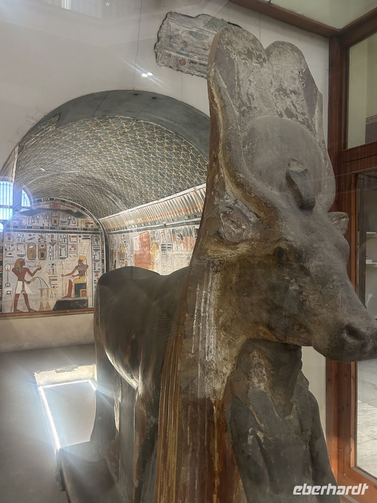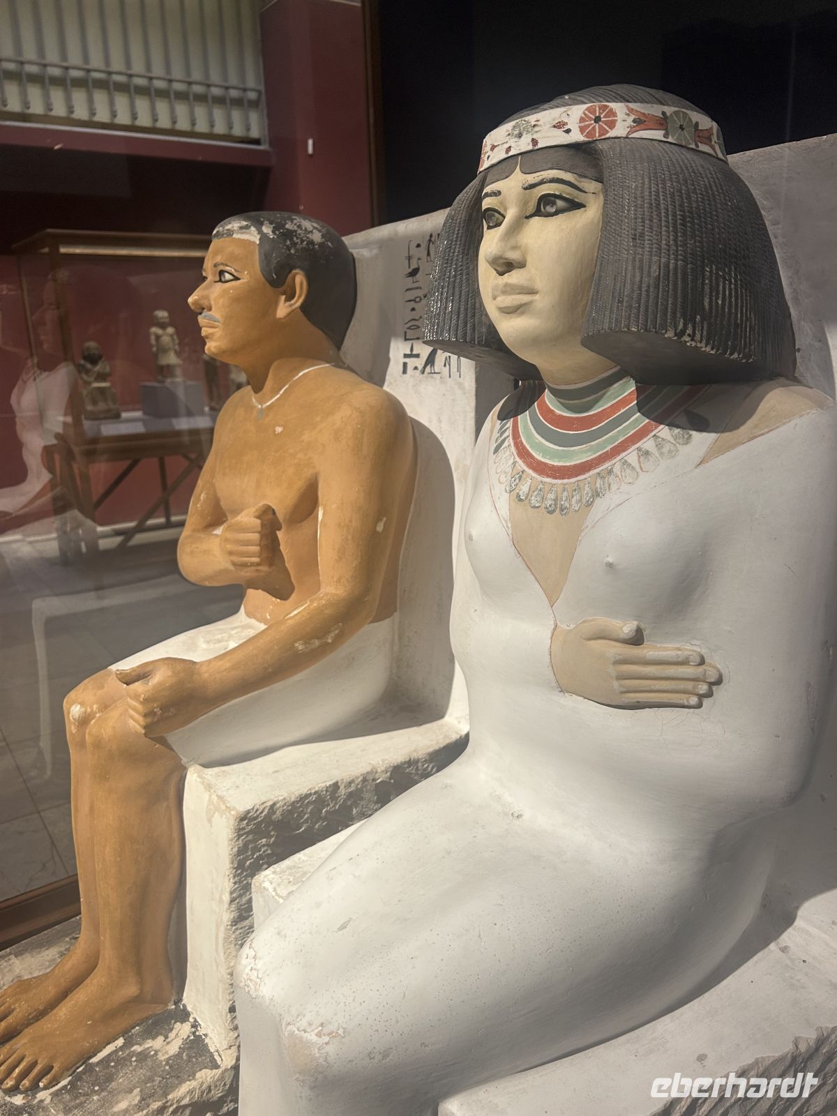 Zuerst fahren wir zum Ägyptischen Nationalmuseum in Kairo, was sich gerade im Umzug befindet. In Kürze wandern alle Exponate in das neu erbaute Museum in der Nähe der Pyramiden und wir haben Glück, das wir noch das Wichtigste sehen können. Wir sind zeitig genug da, um dem größten Ansturm zu umgehen. In Ruhe können wir die Exponate mit guten Erklärungen von Essam anschauen und haben dann noch genügend Zeit, um selbstständig durchzuschauen.