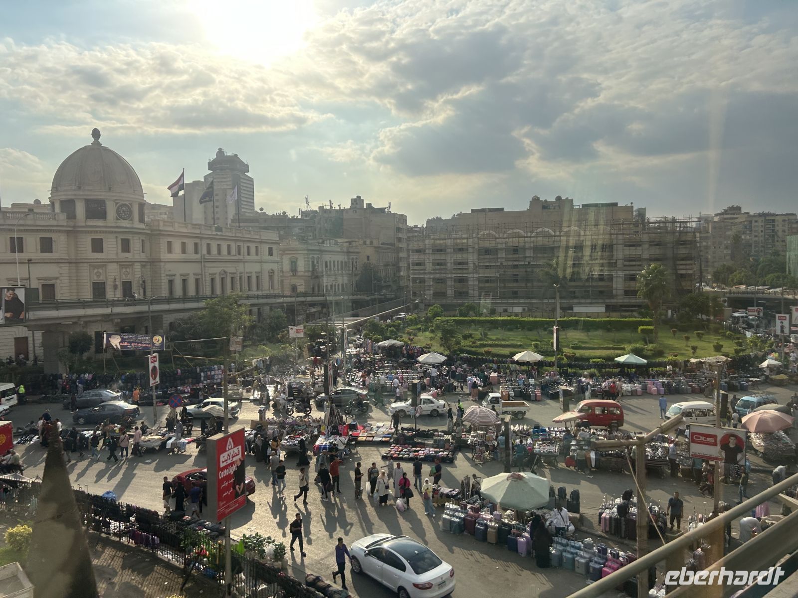 Danach genießen wir auch den Panoramablick über die riesige Stadt mit ihren 23 Millionen Einwohnern und können sogar in der Ferne die Pyramiden erspähen, obwohl sie ca. 30 km weit entfernt sind.