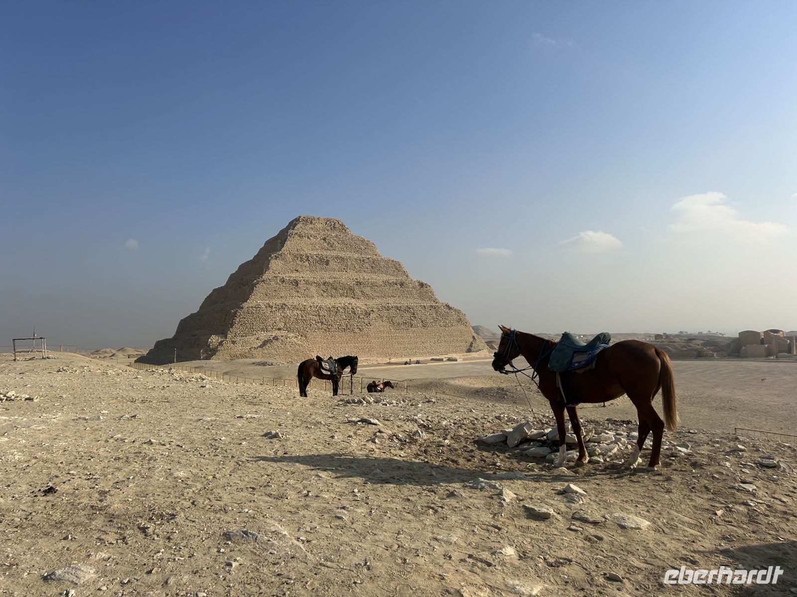 Wir treffen uns wieder 7.30 Uhr zur Abfahrt mit dem Ziel der Nekropole von Saqqara, Memphis’ Begräbnisstätte. Hauptsächlich während des Alten Reiches wurden hier Herrscher und hohe Würdenträger zu Grabe getragen. Wir besichtigen dort auch die Stufenpyramide des Djoser und eine Grabkammer. Da wir die ersten Gäste sind, haben wir die Anlage für uns und können in Ruhe den Erklärungen Essams folgen.