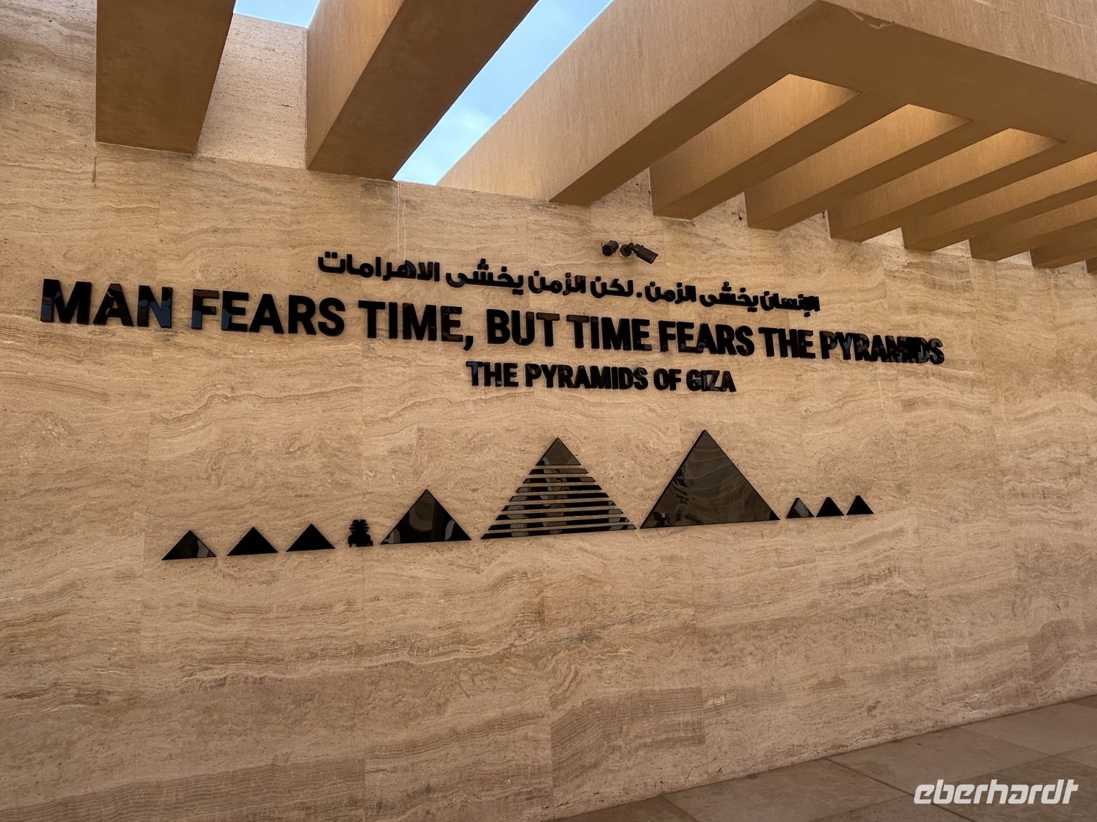 Wir gelangen mit einem Busshuttle von der Panorama Aussicht bis zu den einzelnen Pyramiden, wo Essan uns alles genau erklärt. Am Schluss verweilen wir bei der Sphinx, die mit ihren 73 m sehr beeindruckend ist. Diese weltberühmte Figur, dieses Mischwesen aus Mensch und Löwe war bei den Pharaonen wohl eher ein „er“, ein Löwe mit dem Kopf eines Pharaos, der die Gräber bewachen sollte. Allerdings hatht er es nicht einfach.