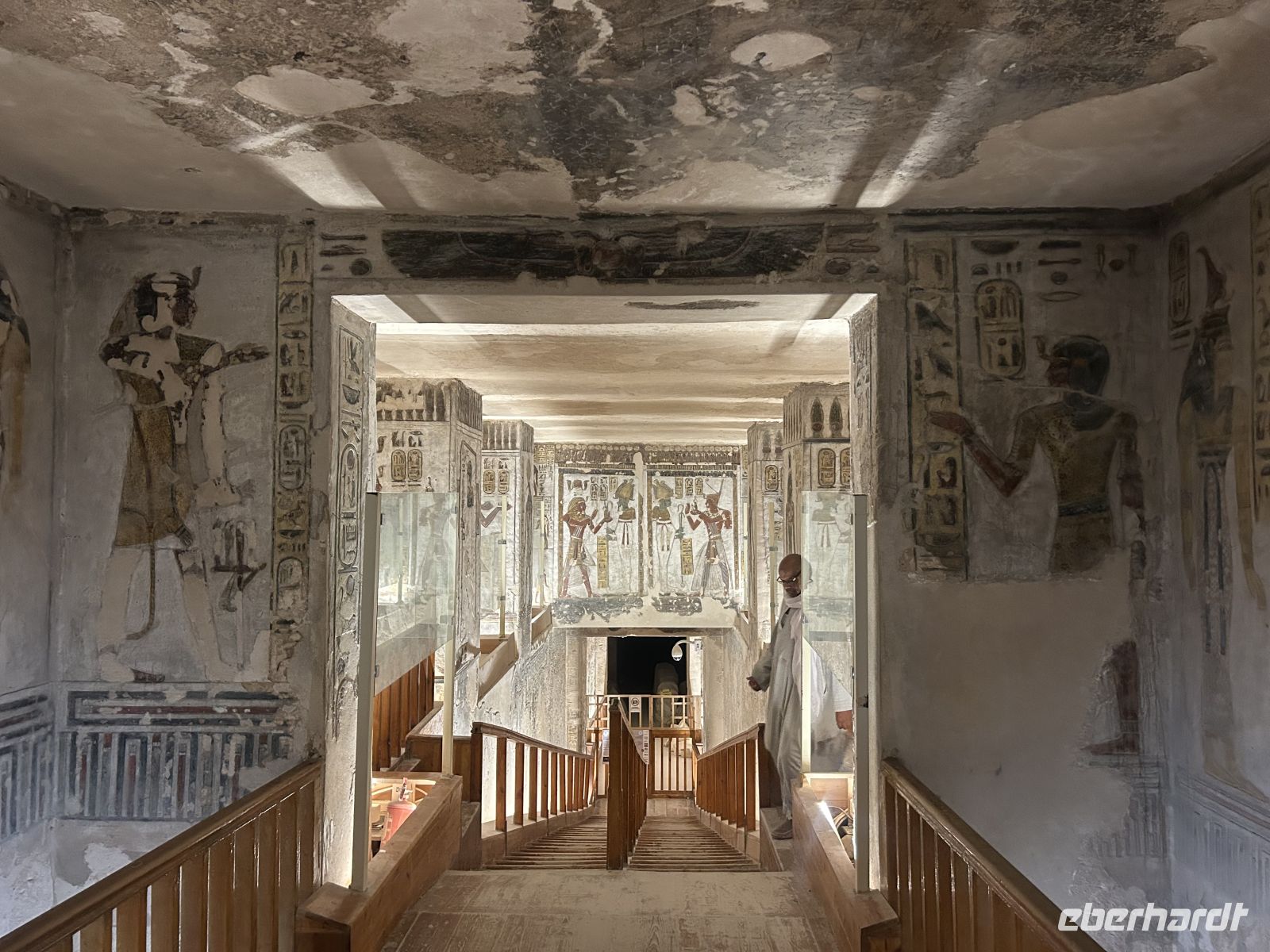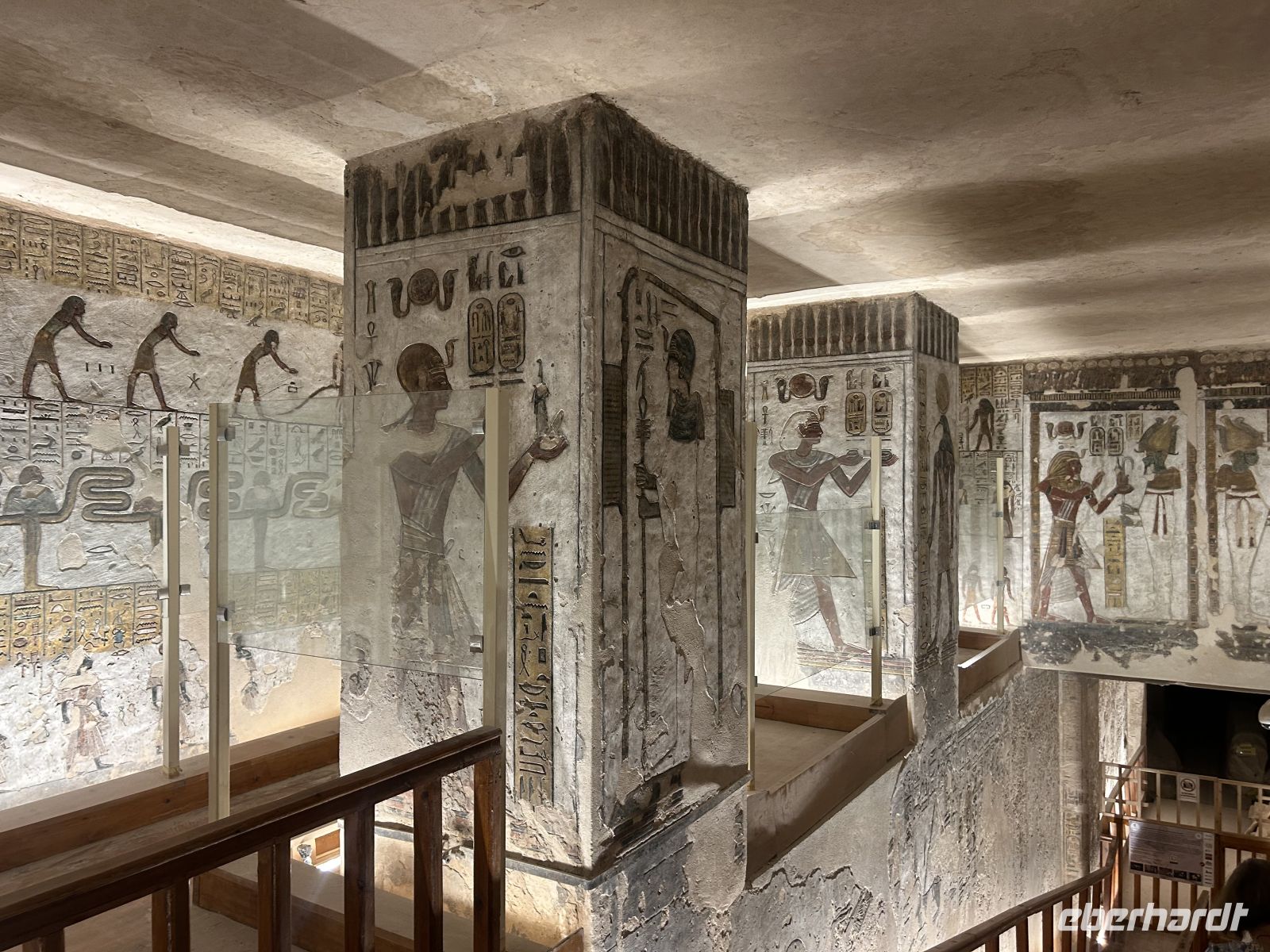 Unermessliche Grabschätze in raffiniert versteckten Höhlen, Mumien, Gold und jahrtausende alte Flüche verbergen sich im Tal der Könige. Insgesamt 65 Gräber wurden hier entdeckt, von denen immer nur 6 bis 8 für Besucher geöffnet sind, um die empfindlichen Malereien zu schützen. Wir besichtigen 3 Grabstätten.