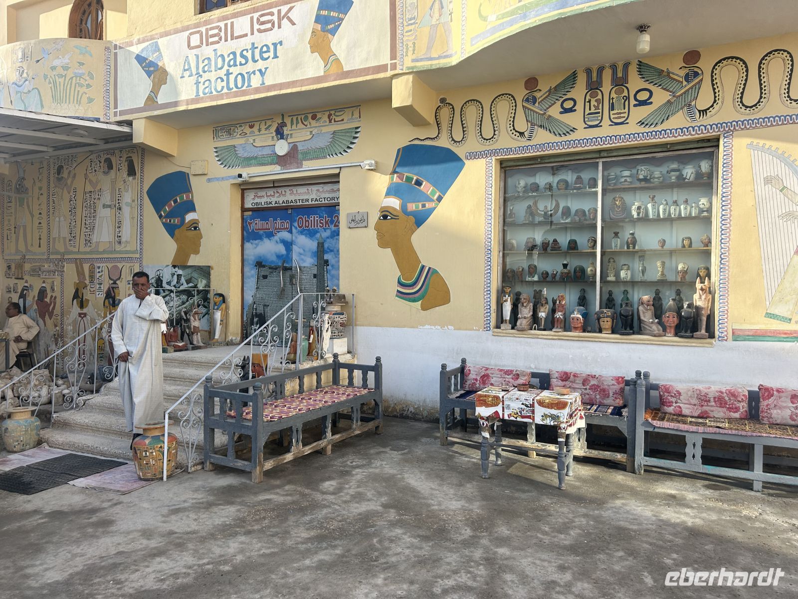 Bei der anschließenden Besichtigung einer Alabaster Werkstatt sehen wir zu, wie aus dem wertvollen Rohstoff kunstvolle Objekte werden. Einige nehmen die Möglichkeit wahr, Andenken zu kaufen.