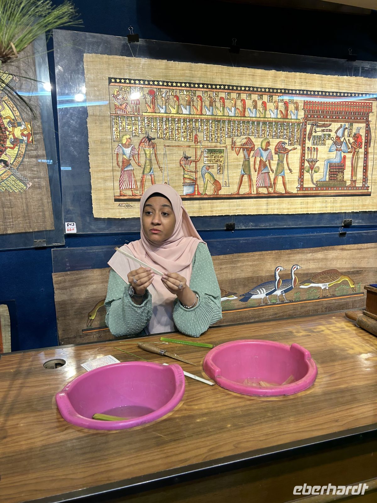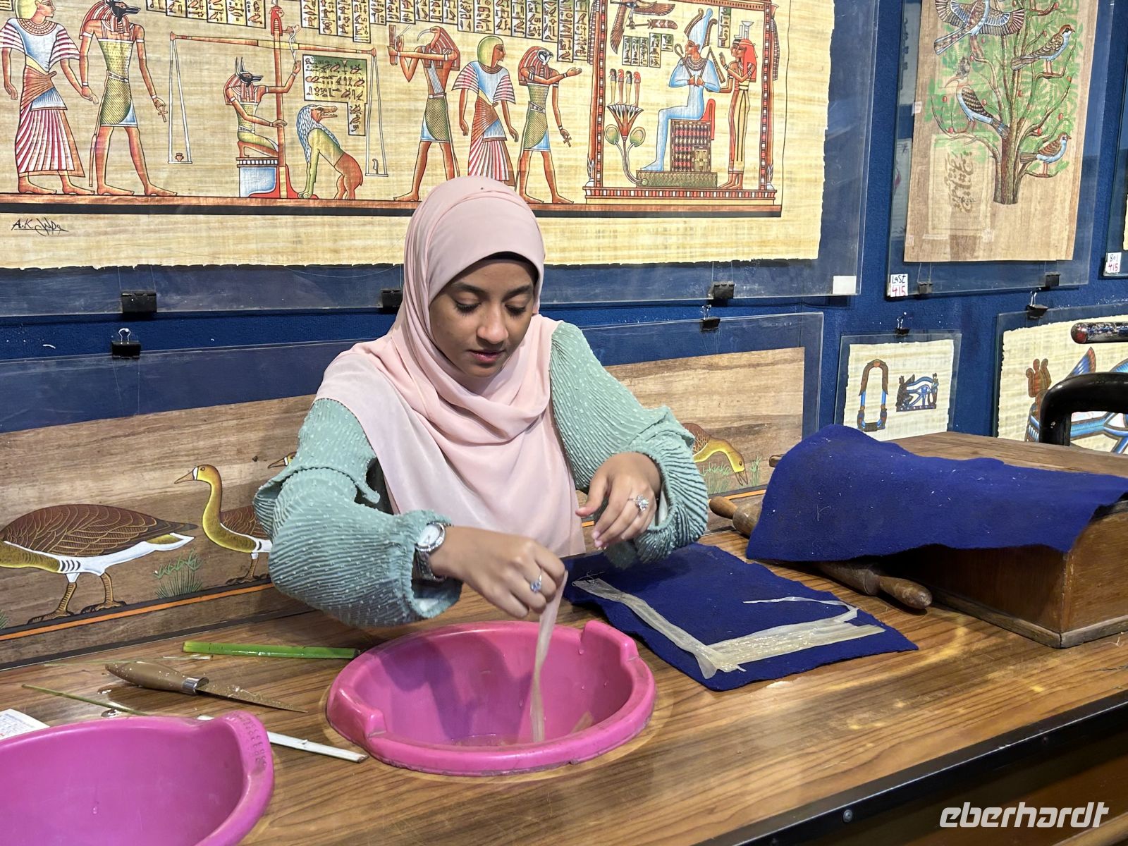 Dann geht es weiter zu einem Museum, wo Papyrus herstellt wird. Einige nutzen auch die Möglichkeit zum Kauf.