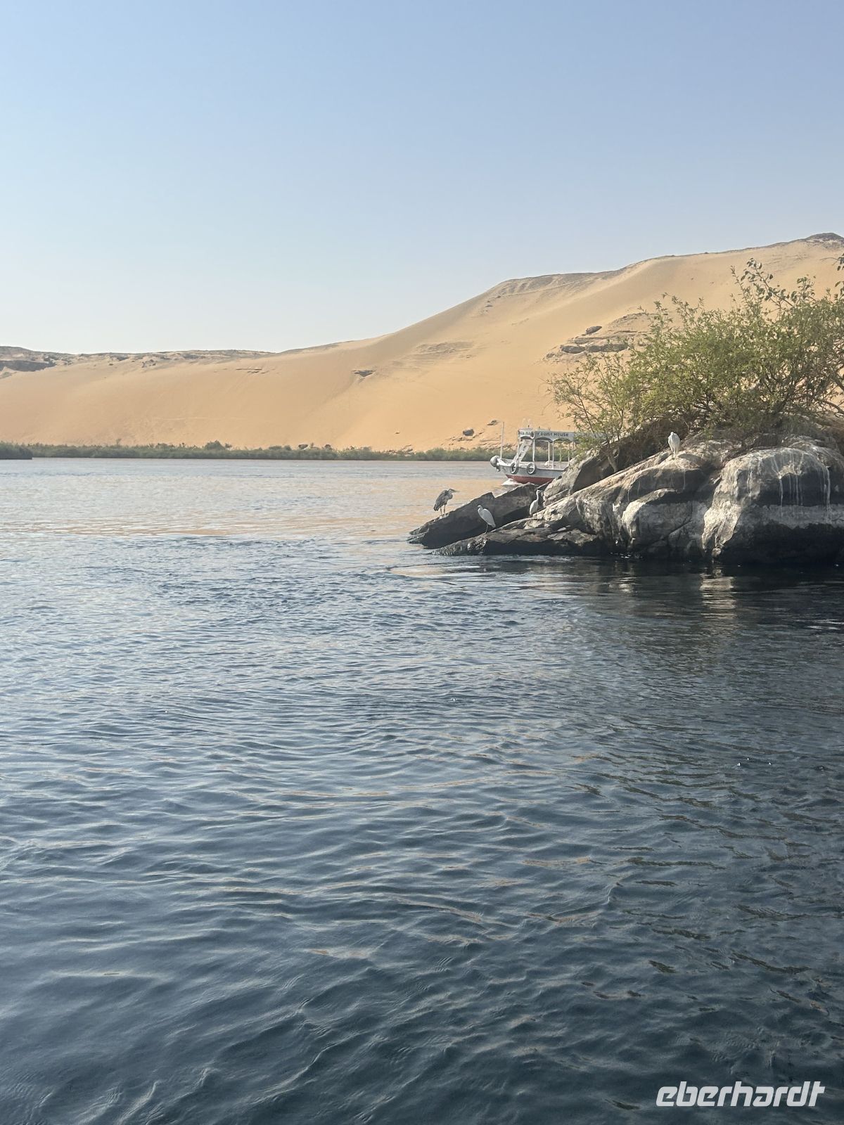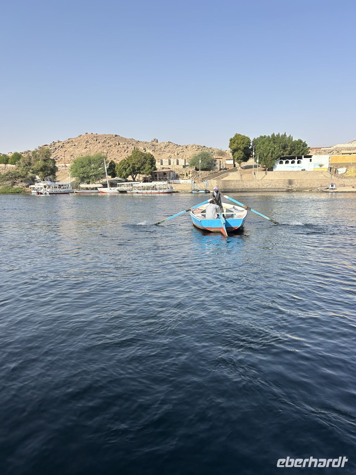 Heute geht es in ein nubisches Dorf mit dem Motorboot. Wir unternehmen eine bezaubernde Fahrt in Richtung Staudamm durch schöne Flusslandschaften. Essam führt uns zu einem authentischen Ort, wo die Einheimischen friedlich leben und uns auch nicht sofort bedrängen. So können wir in Ruhe in diese für uns besondere Welt eintauchen und vieles von diesem Land besser verstehen.