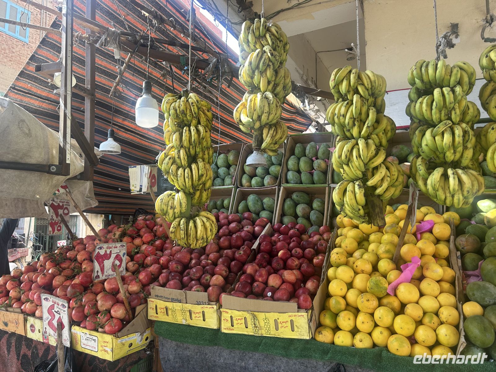 Mittagessen gibt es heute ganz in der Nähe in einer kleinen Straße des Stadtteils mit typischen ägyptischen Gerichten.