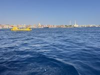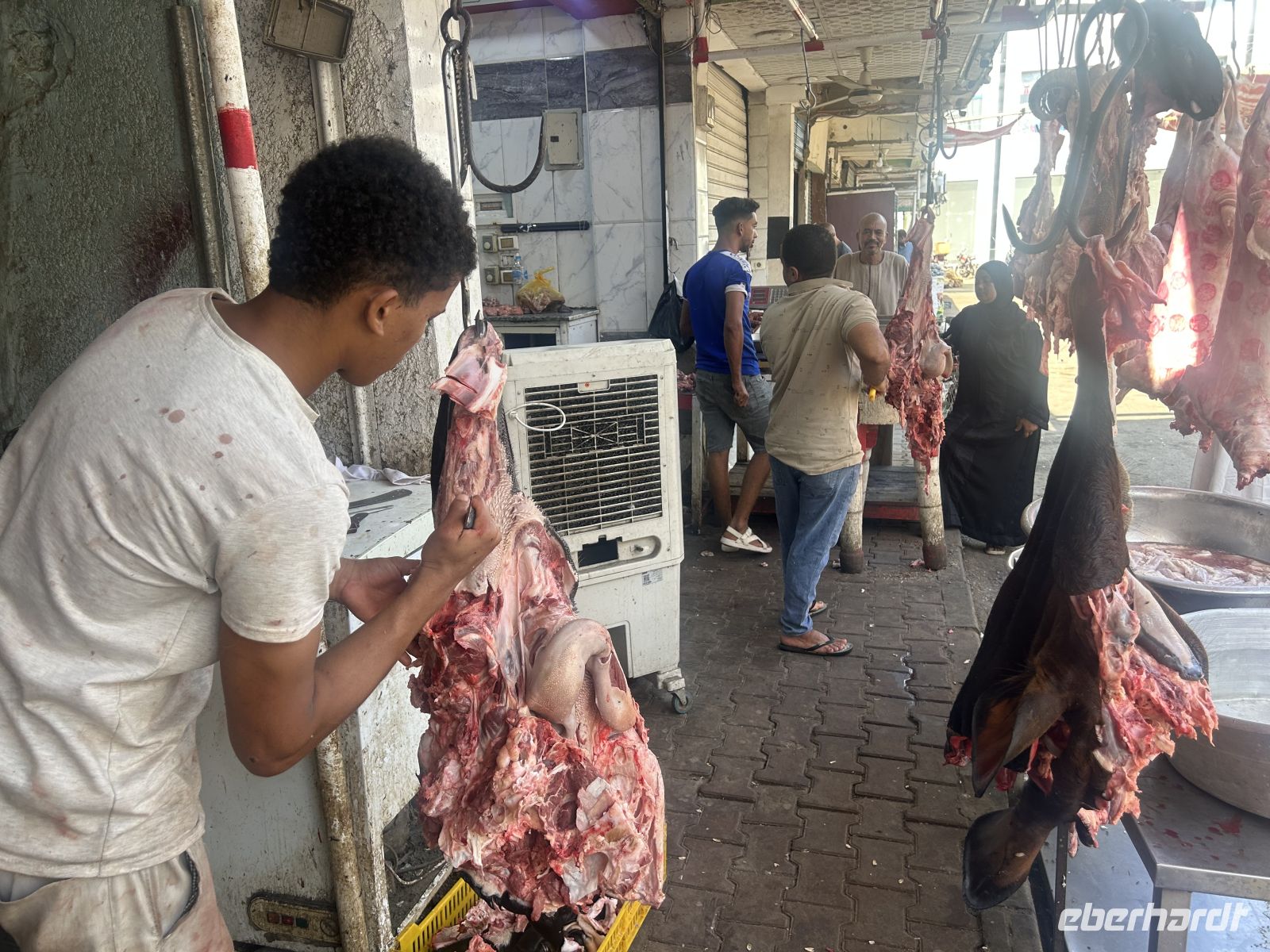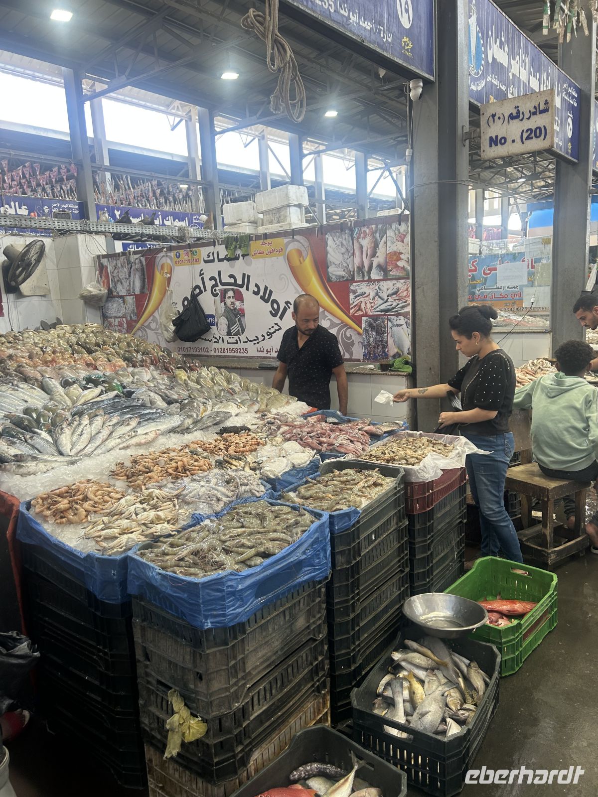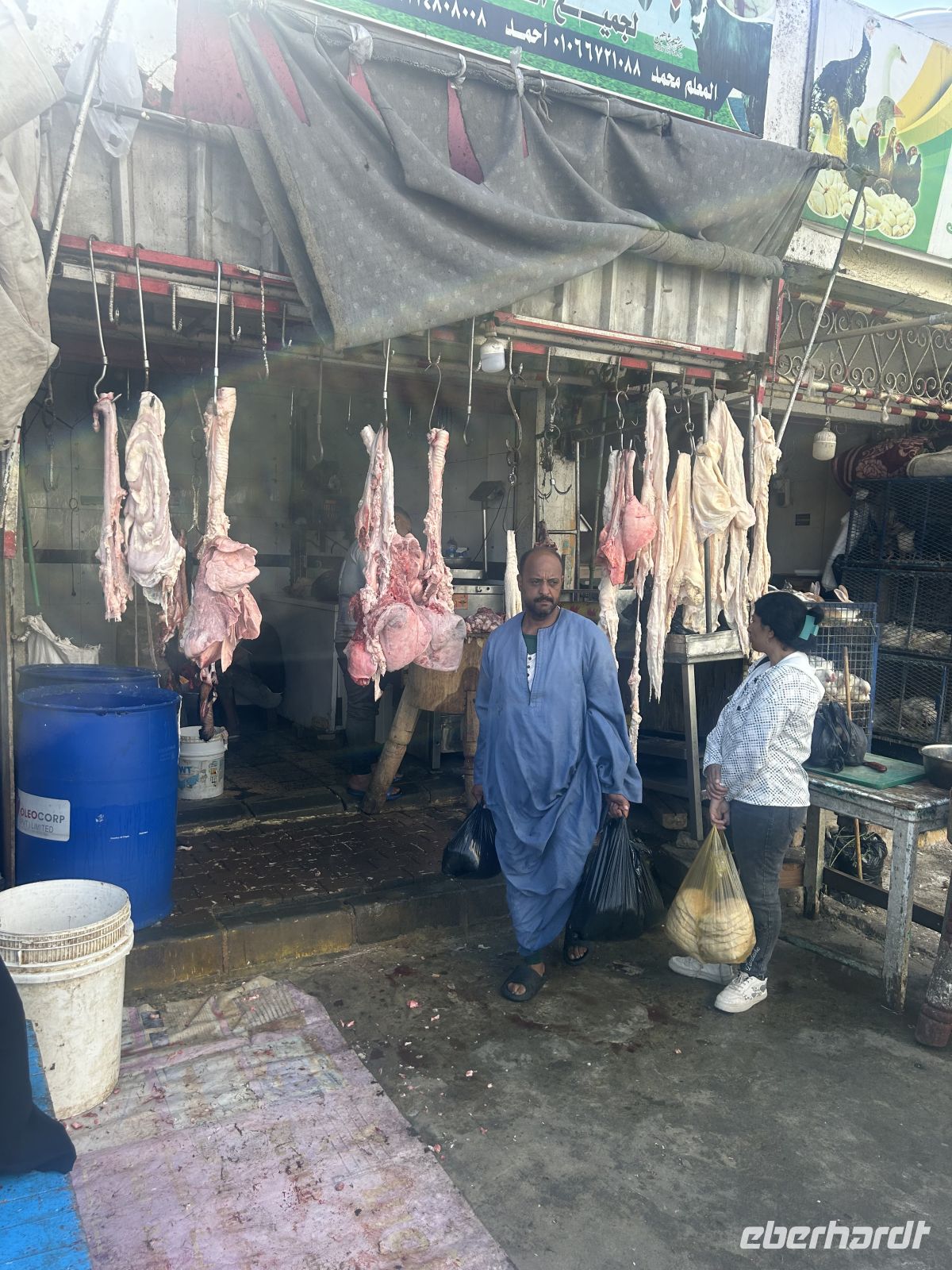 Heute Vormittag haben wir die Gelegenheit, und die Stadt Hurghada anzuschauen, die ca. 35 km von Safaga entfernt liegt. Essam mietet einen Kleinbus und wir unternehmen eine schöne Stadtrundfahrt. Zuerst besichtigen wir die Koptische Kirche, dann verschiedene Märkte für Lebensmittel. In der Altstadt gibt es noch sehr alte Verkaufsstände am Straßenrand, wo frisches Fleisch, Fisch und Hühner verkauft werden. Aber auch modernere Markthallen bieten eine reichhaltige Auswahl an allem an. Wir fahren noch zum Hafen und genießen eine Panorama Aussicht auf die Küste und die vorgelagerten Insel.