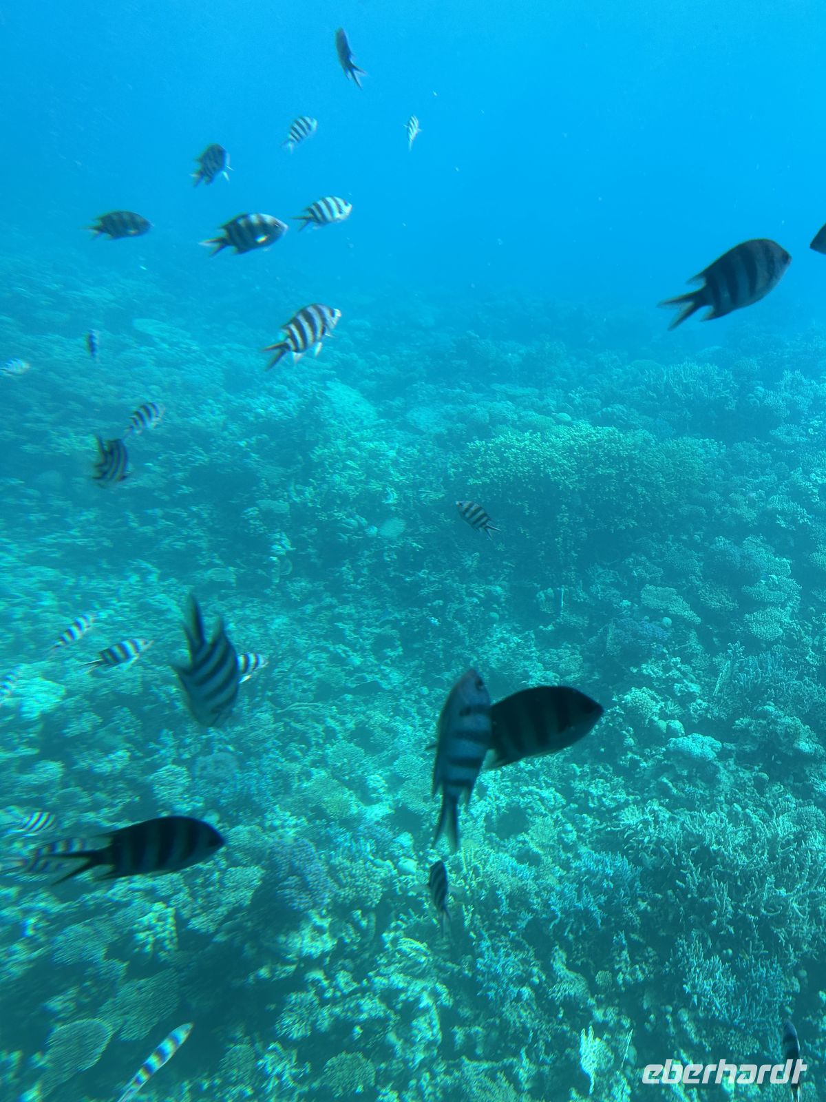 Heute gibt es wieder einen fakultativen Ausflug zu einer Fahrt mit dem Glasboden Boot inklusive schnorcheln. Es ist ein tolles Erlebnis, die bunten Korallen mit den farbenfrohen Fischen aus der Nähe zu sehen. Das Angebot zum schnorcheln wird auch fleißig genutzt.
