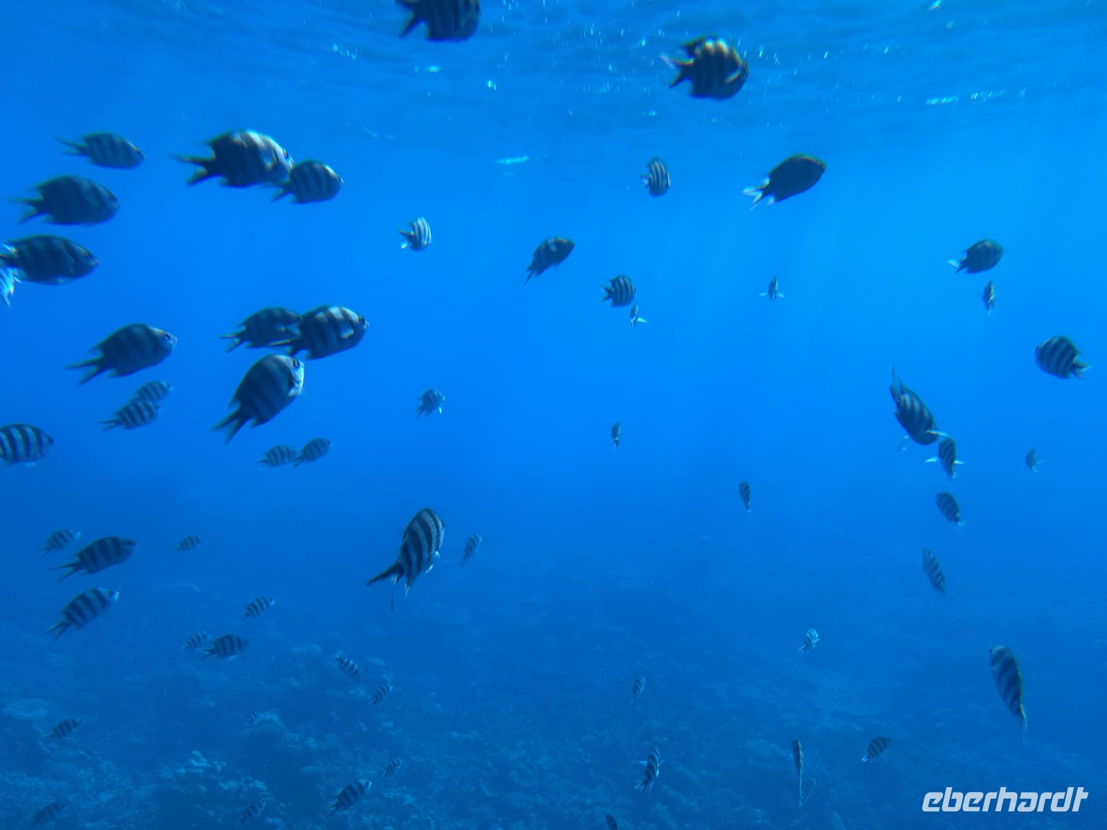 Nachmittags gibt es wieder Freizeit und Erholung. Das Baden im Meer ist besonders verlockend, weil das Wasser warm ist und es direkt in Strandnähe ein Korallenriff gibt. Dort kann man Kugelfische, Moränen Feuerfische und sogar Schildkröten beobachten. Unser letztes gemeinsames Abendessen genießen wir zusammen bei bestem Angebot an Speisen und Getränken.