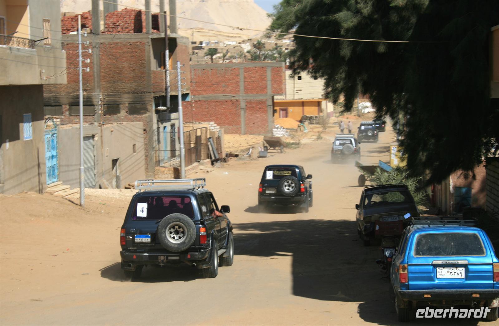 Nach etwa drei Stunden Fahrt erreichen wir die Oase Kharga. Freundlich werden wir von den Schulkindern und Jugendlichen begrüßt, die gerade vor ihrer Schule versammelt sind.