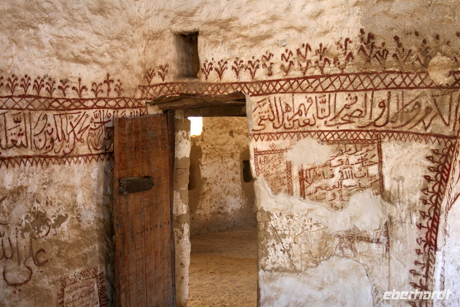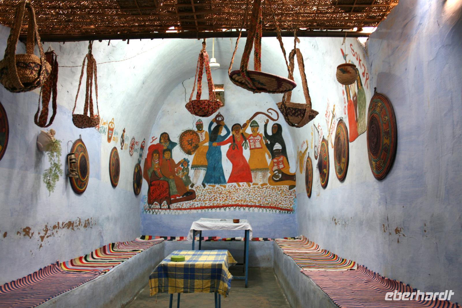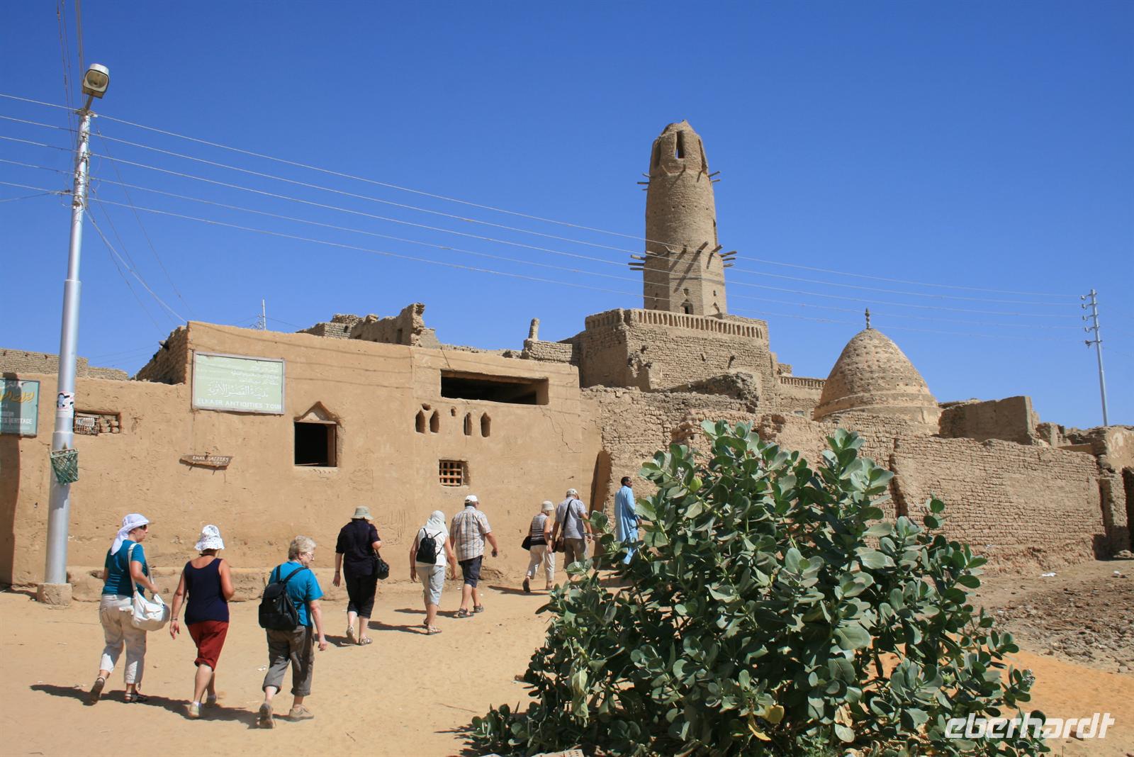 Besonders sehenswert ist hier die Altstadt Al Qasr, die nicht mehr bewohnt ist und heute ein riesiges Freiluftmuseum darstellt. Wir gehen durch schmale Gassen, Höfe und Häuser, die aus braunen, getrockneten Nilschlammziegeln gebaut sind. Aladin zeigt uns die kleine Moschee mit der Kuppel und dem Minarett aus Nilschlamm und Lehm, eine hölzerne Getreidemühle, eine alte Olivenölpresse und den ehemaligen Gerichtshof der Stadt. Es ist wie ein Ausflug in eine andere, längst vergangene Welt. Al Qasr muss man gesehen haben!