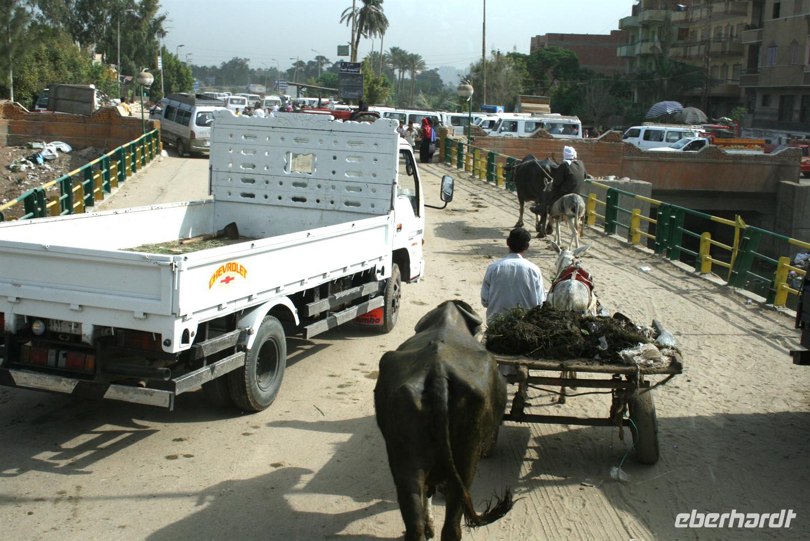 Der riesige Karnak-Tempel und der kleinere Luxor-Tempel waren einst mit einer Sphingenallee verbunden, die durch die ganze Stadt führte. Diese wird jetzt restauriert und soll in einigen Jahren wieder komplett zu sehen sein. Dafür werden Häuser abgerissen, Straßen umgeleitet und es herrscht derzeit etwas Chaos in der Stadt. Vielleicht wird ganz Luxor in ein paar Jahren wie ein einziges Freiluftmuseum wieder die alte Pharaonenstadt zeigen. Man darf gespannt sein …