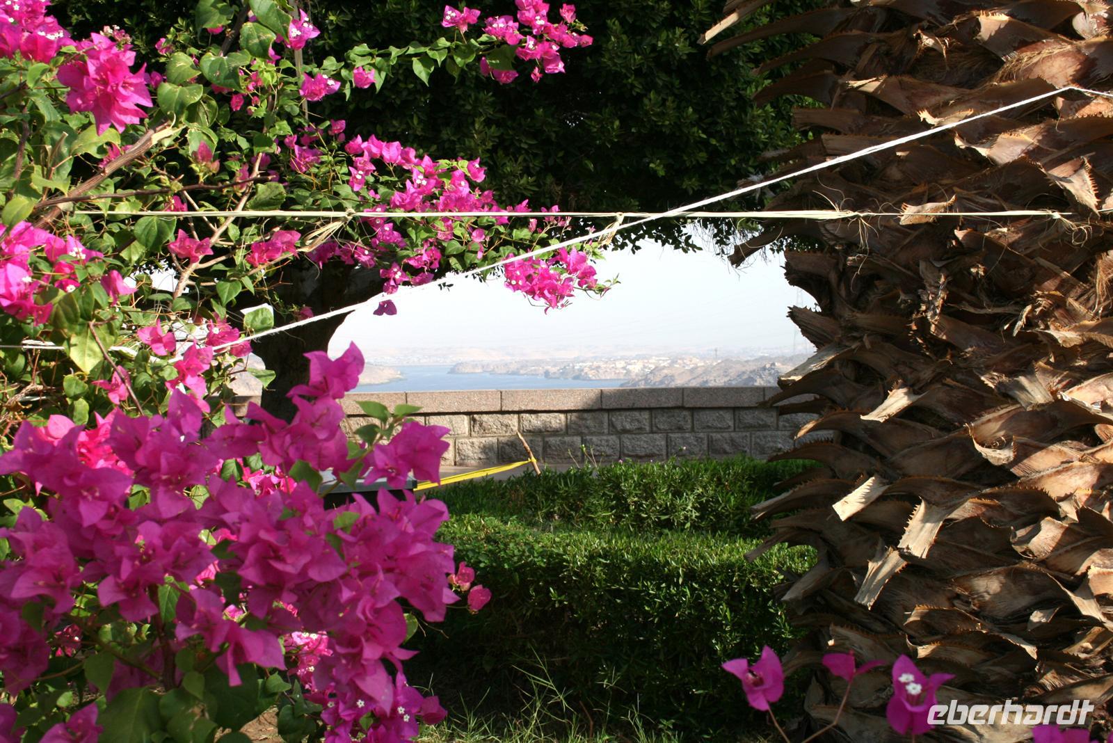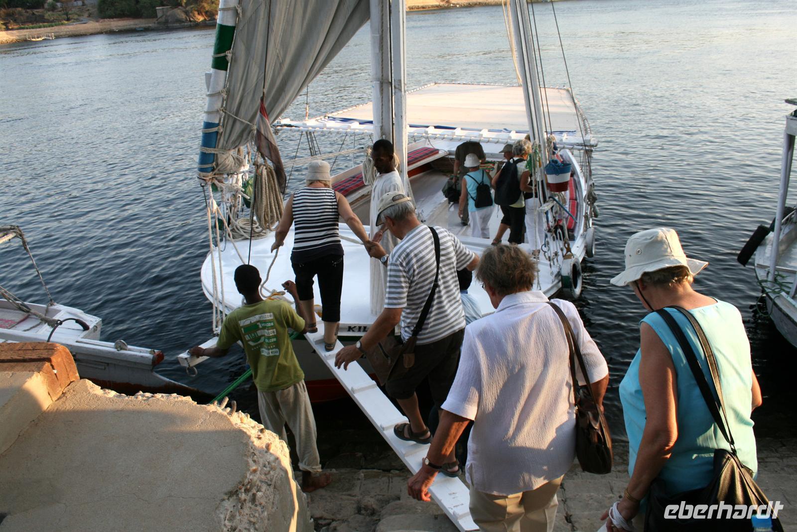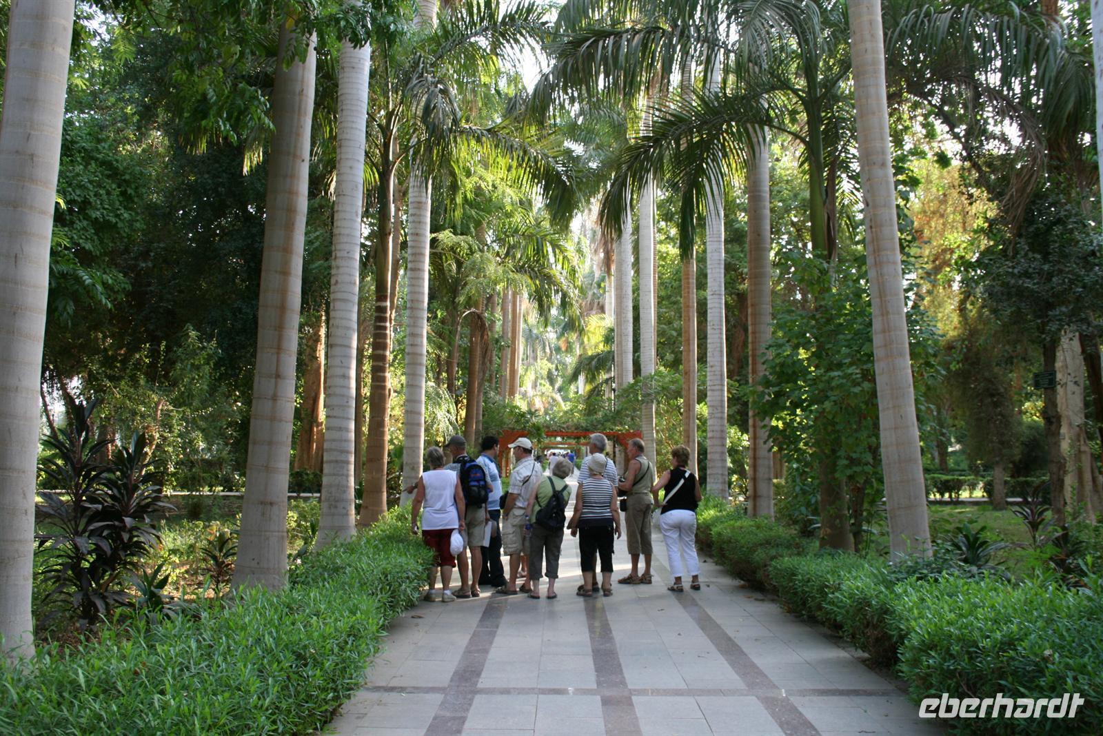 Zum Mittagessen sind wir zurück in Assuan. Nach einem kleinen Mittagsschläfchen oder einer Abkühlung im Pool gehen wir am Nachmittag noch einmal von Bord. Mit einem der typischen Segelboote - einer Felukke - fahren wir zur Kitchener Insel in Assuan. Hier befindet sich ein wunderschöner grüner botanischer Garten mit Pflanzen, Palmen und anderen Bäumen aus der ganzen Welt. Das satte Grün ist eine Wohltat für die Augen!