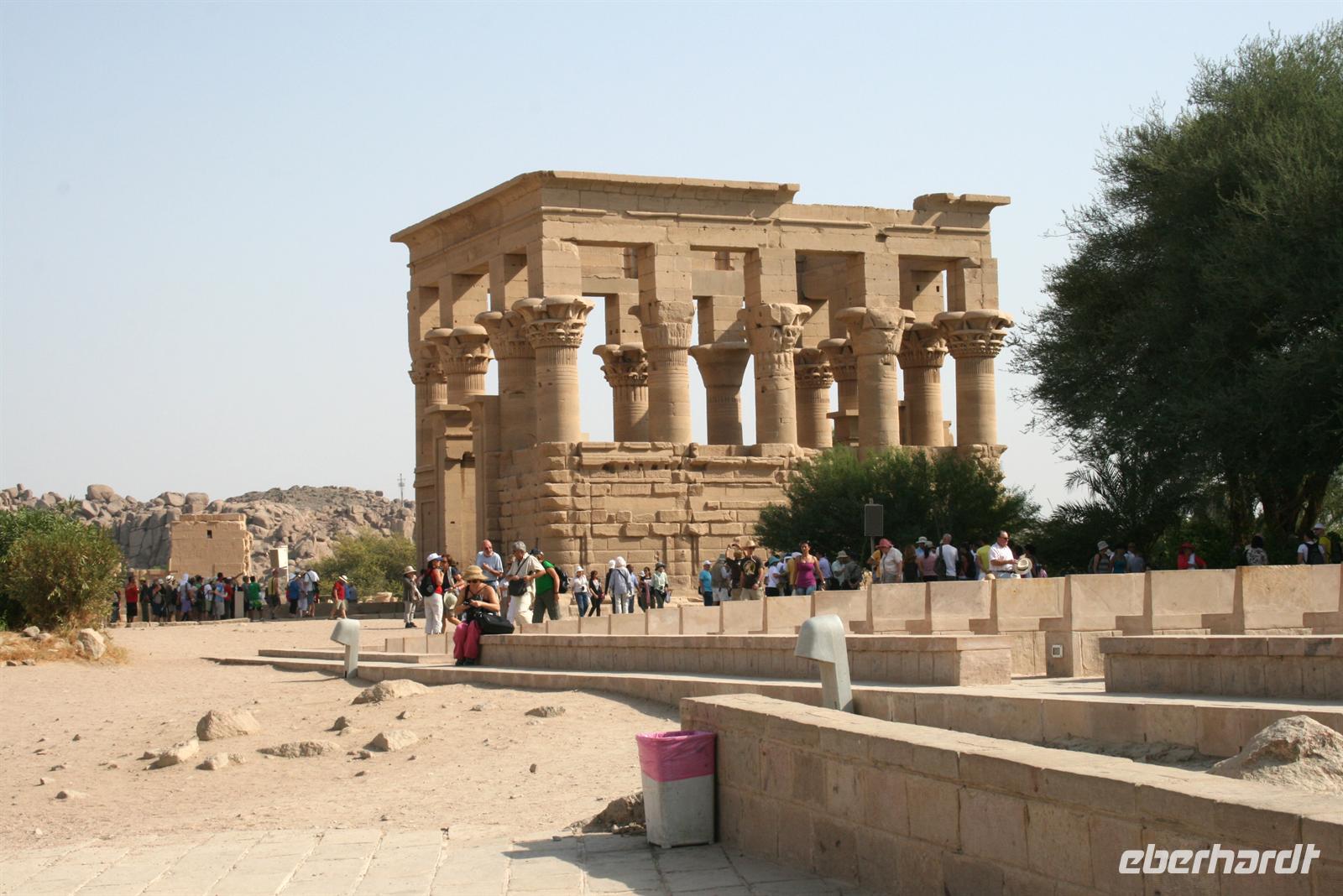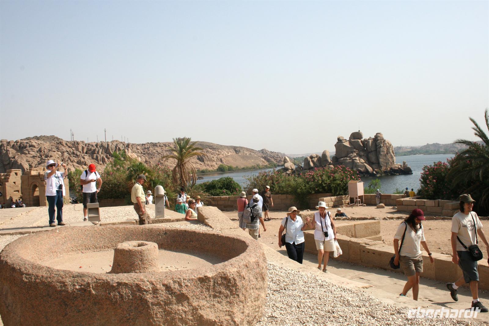 Hier steht heute der Isis-Tempel, der einst auf der Nachbarinsel Philae gebaut wurde, beim Bau des Assuan-Staudamms aber in den Fluten des Nasser-Sees versunken wäre. Wie Abu Simbel wurde der Tempel versetzt. Auch der Isis-Tempel stammt aus ptolemäischer Zeit und ist gut erhalten. Unser Reiseleiter Aladin zeigt uns die Tempelanlagen und erklärt uns die Geschichte der Götter und des Tempels selbst. Wie immer können wir die Anlage dann in freier Zeit auch selbst noch auf uns wirken lassen und jede Menge Fotos machen. Café und Souvenirshops sind auf der kleinen Insel natürlich auch zu finden.