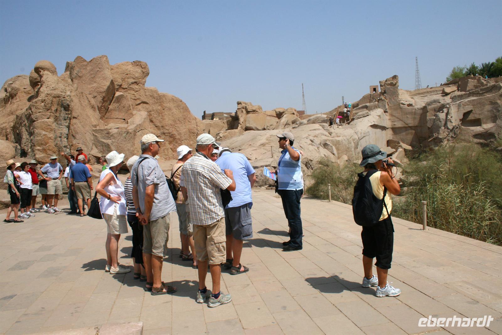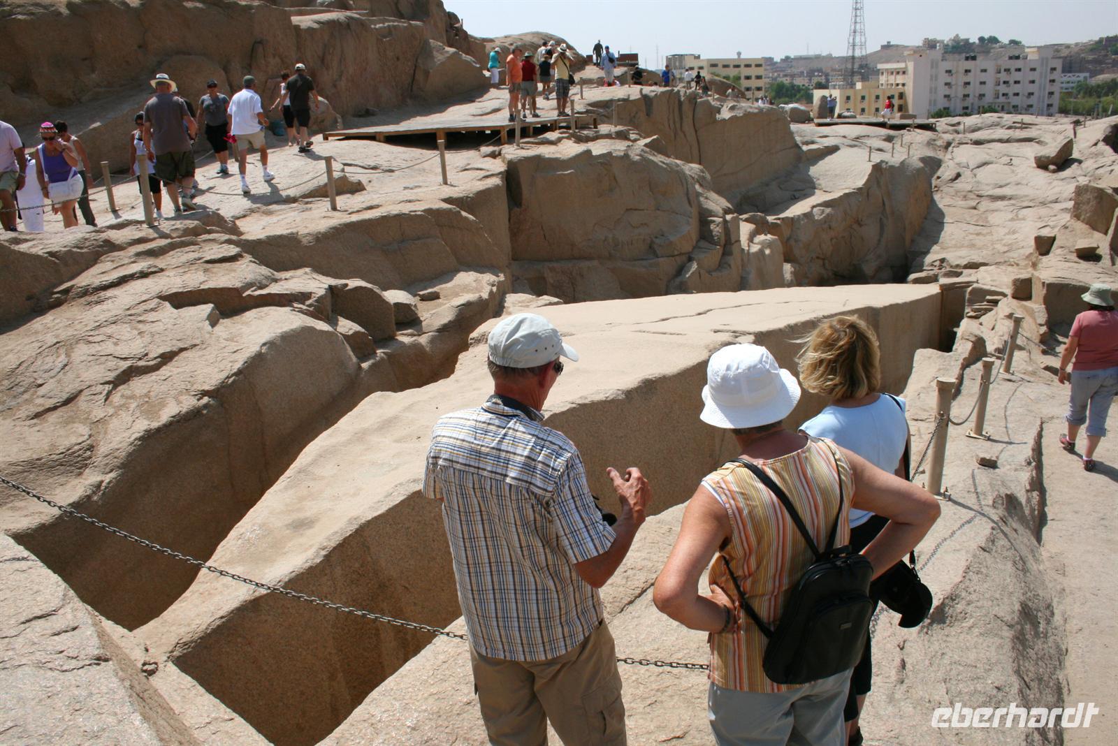 Bevor wir zum Mittagessen zum Schiff zurückkehren, besichtigen wir noch den Steinbruch in Assuan, in dem ein unvollendeter, riesiger Obelisk zu sehen ist. Man bekommt eine Vorstellung davon, wie die alten Ägypter ihre Obelisken in einem einzigen Stück aus dem Fels geschlagen haben.