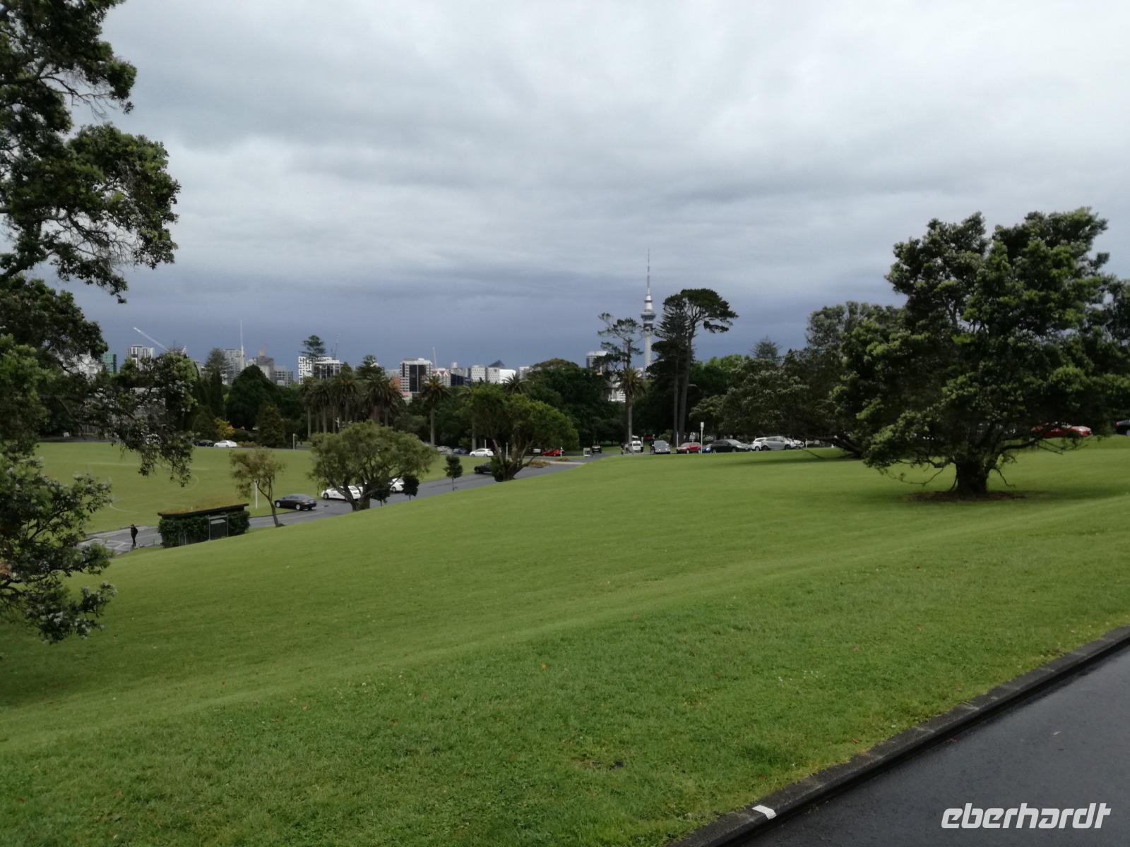 Als wir morgens den Frühstücksraum betraten, kamen wir aus dem Staunen nicht mehr raus. Frische Früchte, frische Pfannkuchen, ein Schokoladenbrunnen, warme Speisen usw. Alles was das Herz begehrt stand vor uns. Also frühstückten wir in Ruhe und gingen dann gemeinsam auf Erkundungstour durch Auckland. Die Stadt der Segel wird auch in Maori Tanaki Makaurau genannt und bedeutet „Tamaki mit hundert Liebhabern. Man vermutet, dass der Name wegen seines fruchtbaren Bodens und unzähligen Wasserwegen entstanden ist. Unser erster Anhaltspunkt war ein schönes Gewächshaus mitsamt eines Botanischen Gartens. Hier sind vor allem Fahne untergebracht und Doris zeigt uns den Silver Fern. Der silberne Farn ist das Nationalsymbol der Kiwis. Weiter führte uns unsere Reise zum Auckland Museum. Hier konnten wir uns gemütlich umsehen und auf eigene Faust die Kunst der Maori entdecken. In der ersten Etage gab es zudem ein Vulkanismus Zentrum, wo man eine Unmenge über Erdbeben und deren Konsequenzen erfahren konnte. Zudem entdeckten wir einen Kiwi. Kiwi" hat in Neuseeland mehrere Bedeutungen: der flugunfähige Vogel, die Kiwi-Frucht und zudem bezeichnet sich die Neuseeländer selbst als Kiwi. Weiter ging es mit der Aufführung der Maroi. Der Name Maori bedeutet Ankömmling, da die Ureinwohner damals von den Polynesischen Inseln nach Neuseeland übergesiedelt. Die Moari sind äußerst gute Navigateure, die sich an die Wolken, Wellen und Vögel orientierten, um sich im Meer zurechtzufinden. Auch heute gewinnen viele Kiwis mit Maori-Abstammung bei Ruderwettbewerben. Aber der Nationalsport ist Rugby, wo die sogenannten All Black einen Titel nach dem Anderen gewinnen und die Gegnern vor allem mit dem Haka Furcht eintreiben. Die Kriegstanz Haka konnten wir auch bei der Aufführung bestaunen und im Anschluss noch Bilder mit den Schaustellern machen.