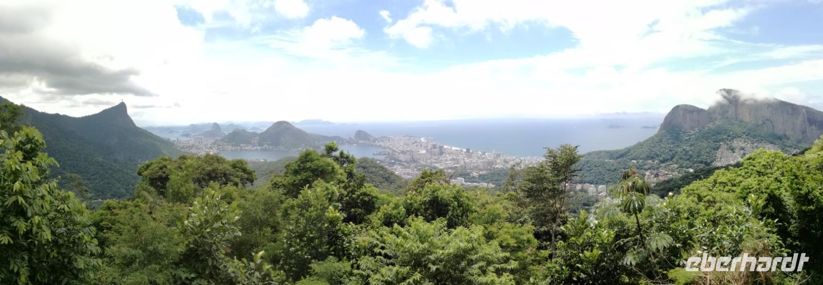 Am Morgen starteten wir noch einem guten Frühstück in den Tijuca-Regenwald. Der Wald gilt als der größte Stadtwald der Welt. Er macht 7% des gesamten Stadtgebietes aus und ist auch als die Lunge von Rio bekannt. Die Stadt zu besuchen, ohne den Wald zu sehen, ist wie nach New York City zu gehen und den Central Park nicht zu sehen. In Rio dreht sich alles um Natur, wilde Orte und schöne Aussichten. Endlich gibt es die Möglichkeit die großen Jack-Füchte mit den Stacheln zu fotografieren, Bananenblüten aus der Nähe zu beäugeln und frische Tropenwaldluft einzuatmen. Weiter ging zum Corcovado. Die riesengroße Christusstatue inmitten des Tijuca Nationalparks mit seinem atlantischen Regenwald ist eines der bedeutendsten Wahrzeichens Rios - und daher für uns ein Muss. Wir fuhren mit dem Bus zur Talstation der Zahnradbahn, mit der man hinauf zu der mit Speckstein ummantelten Figur fährt. Wir stiegen in die Zahnradbahn ein, um über 700 Meter den Berg „hochzuklettern". Nach circa 20 Minuten kamen wir oben an - und da war er: der überdimensional große Christus mit seinen ausgestreckten Armen, mit denen er die gewaltige Stadt bewacht. Es war zwar sehr diesig und neblig, aber atemberaubend schön. Und der Blick über die Stadt mit ihren vielen Hügeln, Stadtteilen, Buchten, Stränden und Hochhäusern war wunderbar. Wir konnten uns gar nicht sattsehen. Später fuhren wir mit der Bahn wieder runter. Zurück im Hotel genossen wir den restlichen Tag und gingen am einen letzten Caipi trinken.