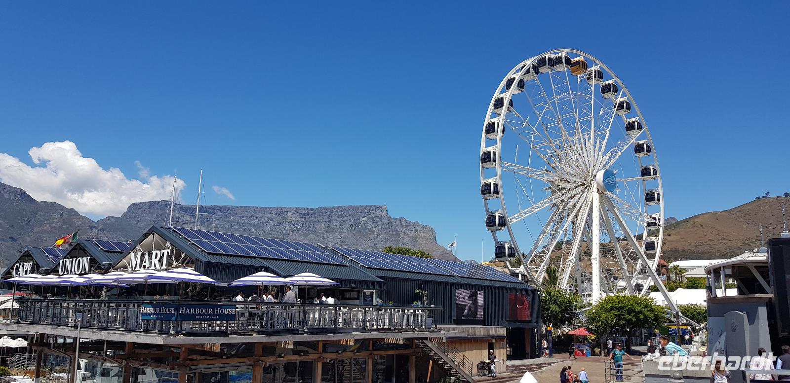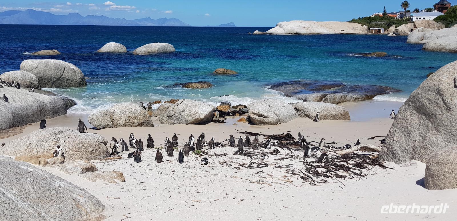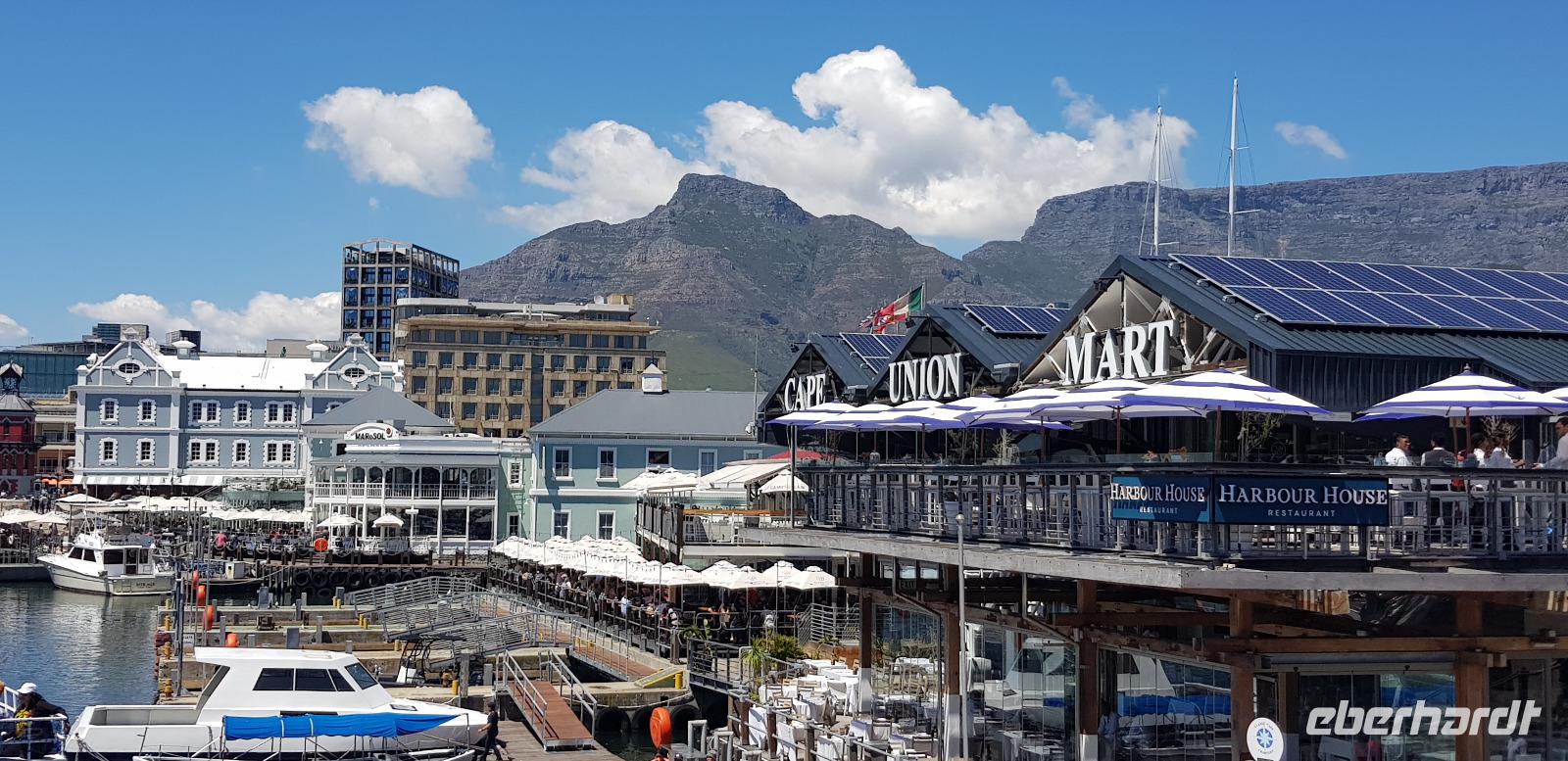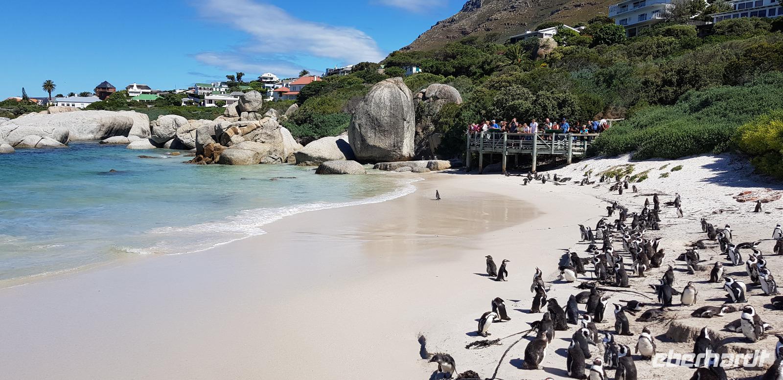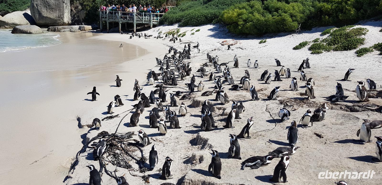 Weiter geht es ins Stadtzentrum und ins Bo-Kaap Viertel, welches bekannt ist für seine bunten Häuser. Hier spazieren wir gemütlich durch die engen Straßen und bewundern die vielfältigen Farben der Häuserfassaden. Mit dem Bus setzen wir schließlich unsere Stadtrundfahrt durch die Innenstadt fort und erreichen gegen Mittag die wunderschöne Waterfront. Dort haben wir etwas Freizeit zum Bummeln oder Mittagessen. Alles ist sehr schick und geschmackvoll gestaltet. Hier befinden sich viele Restaurants, Boutiquen und Bars... besser gesagt, eines der besten Vergnügungs- und Ausgehviertel der Stadt. Nach der Ruhepause fahren wir mit unserem Reisebus weiter auf dem weltbekannten Chapmans Peak Drive zum Boulders Beach, wo wir in voller Pracht die kleinen Brillenpinguine bestaunen können. Die hier ansässige Pinguinkolonie besteht aus bis zu 3000 Tieren, die man ganz nah und in freier Natur von einem Holzsteg aus betrachten kann. Was für ein tolles Erlebnis!