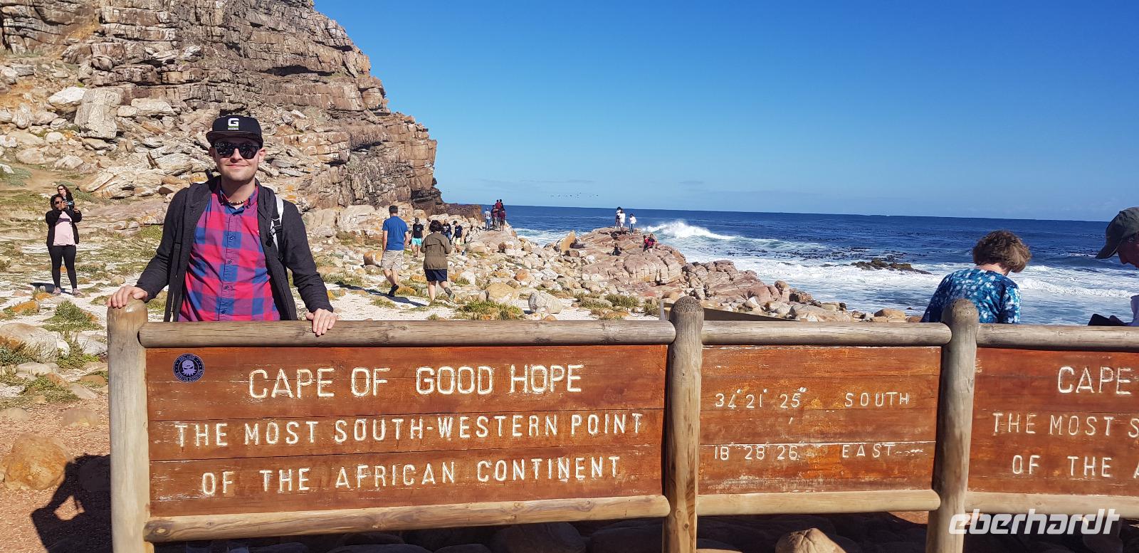 Am Schild vom Kap der Guten Hoffnung angekommen, schießen wir ausgiebig unsere Fotos. Auch hier herrscht Ordnung und somit stellt sich jeder in einer Reihe an und ich fotografiere alle in der gewünschten Pose. ??