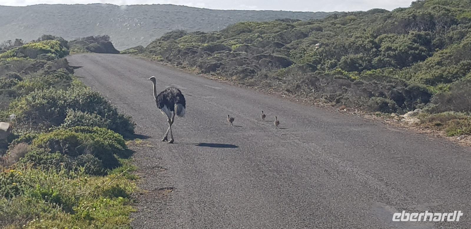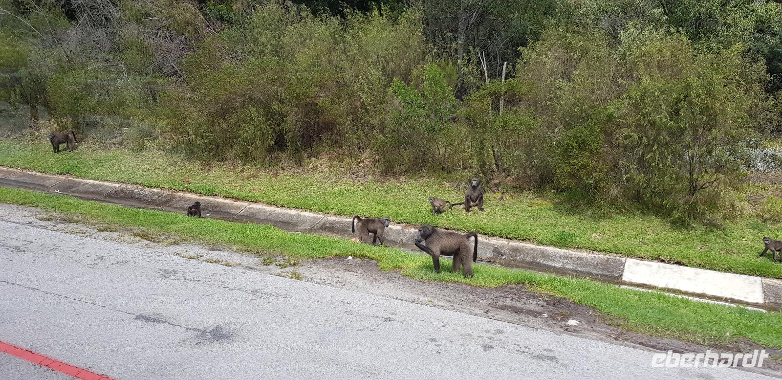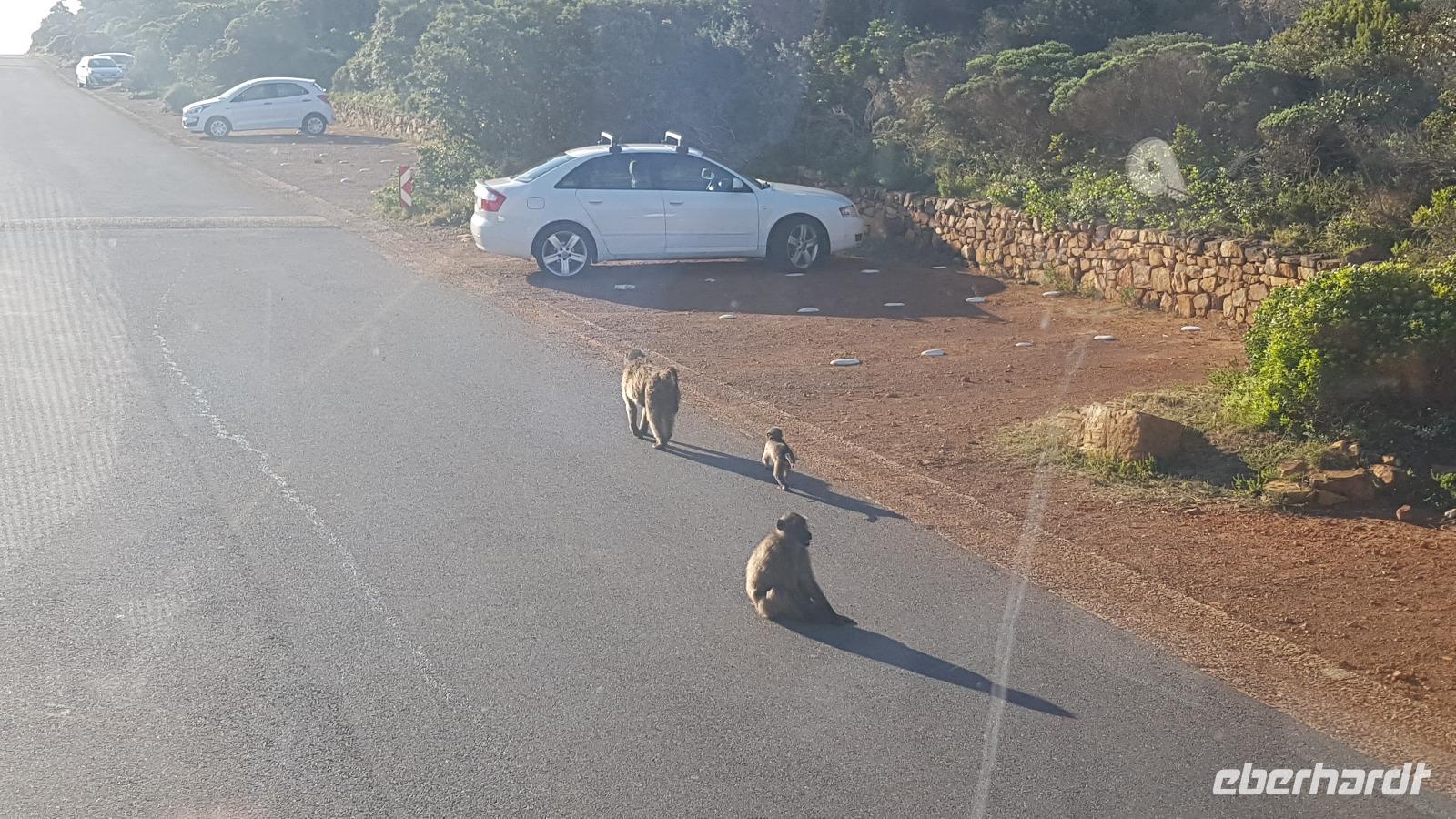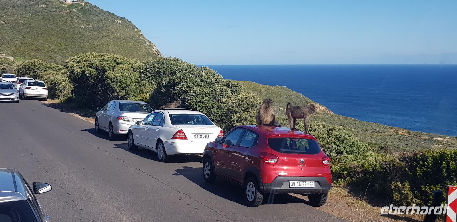 Weiter geht es mit unserem Reisebus zum Kap der Guten Hoffnung. Nach einer halben Stunde Fahrzeit, erreichen wir den gleichnamigen Nationalpark. Nun sind es nur noch ein paar Meter zum weltbekannten Kap-Schild. Unterwegs sehen wir sogar noch einige Straußen und Paviane mitten auf der Straße. Wir wissen vor Begeisterung gar nicht was wir zuerst fotografieren sollen. :-D