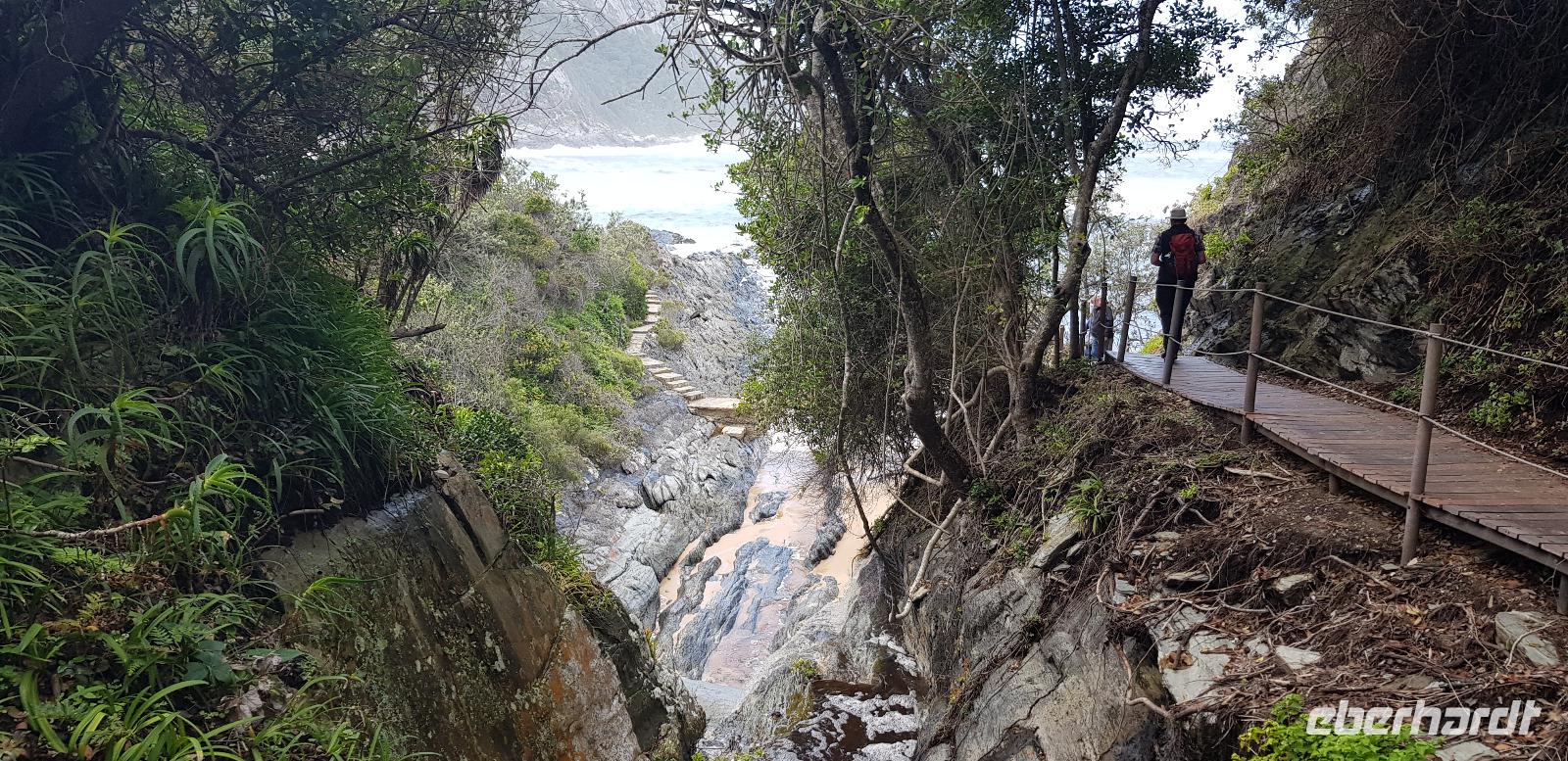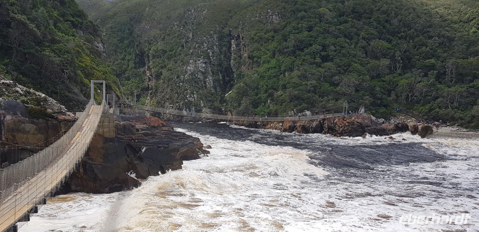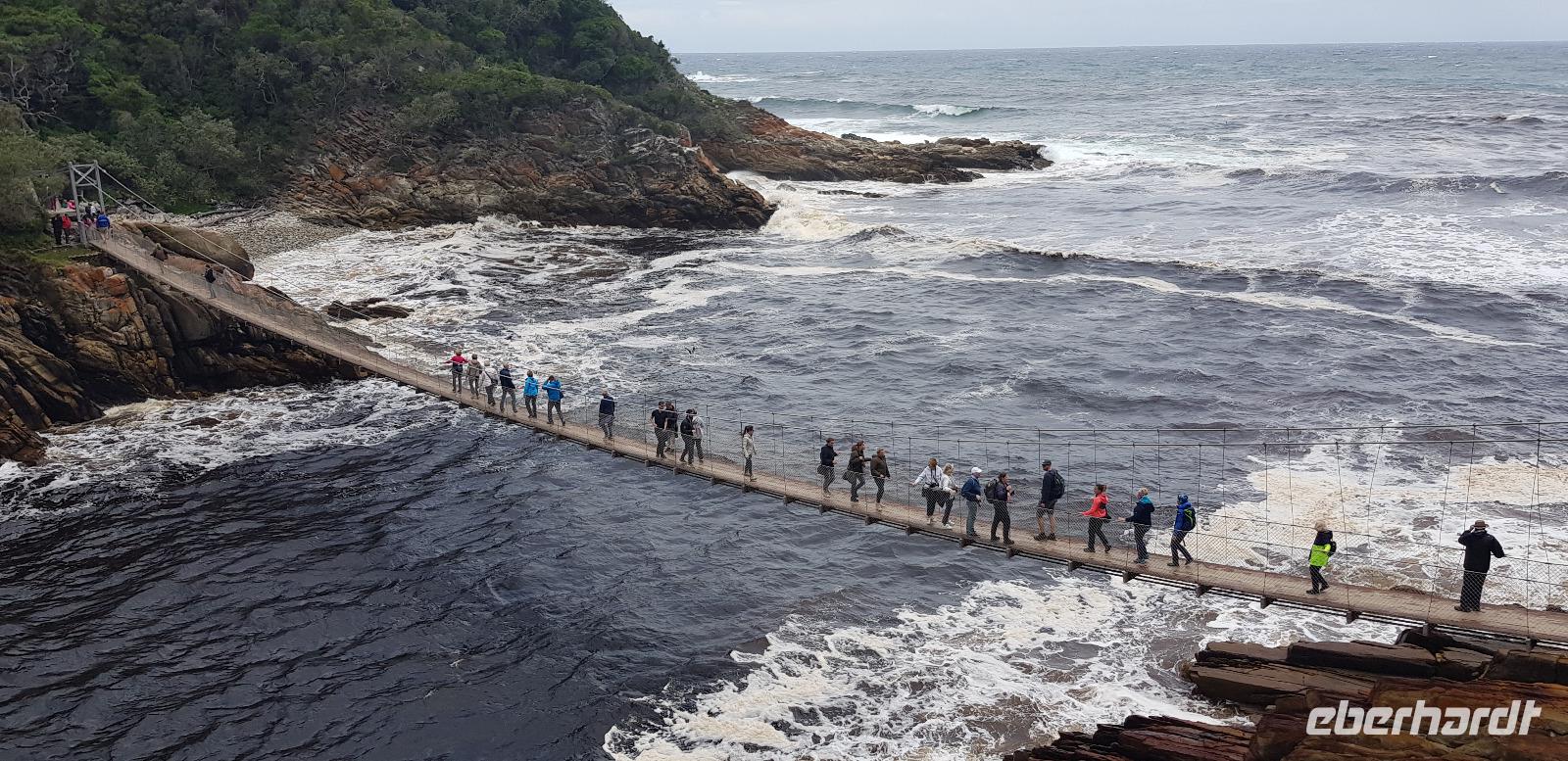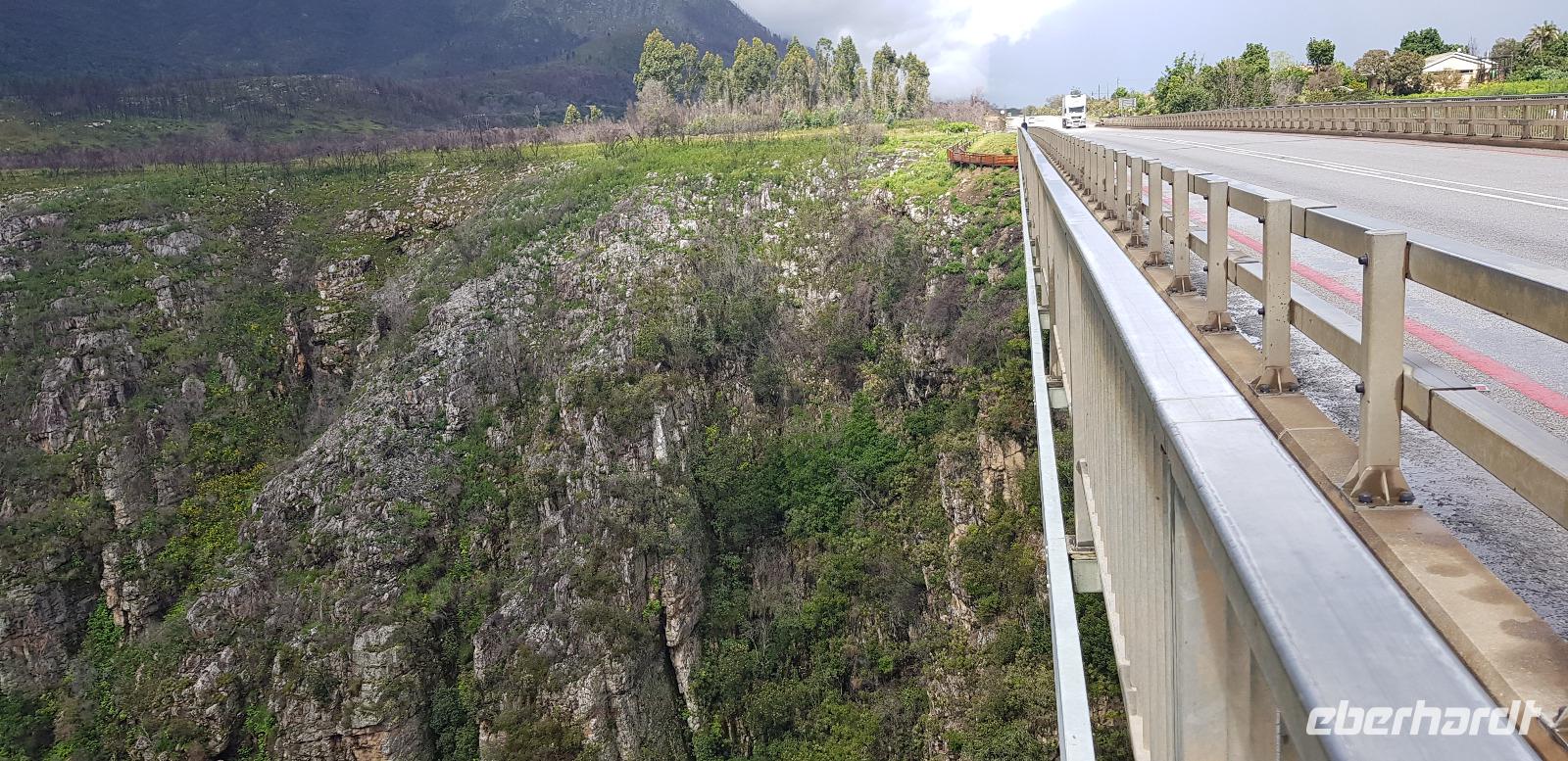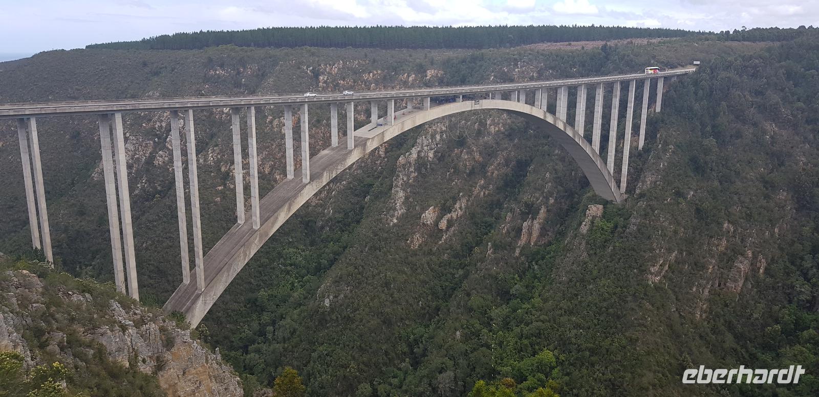 Bevor wir Knysna allerdings verlassen, haben wir noch etwas Freizeit zum Bummeln an der Waterfront. Danach geht es aber los. Nach etwa 2 Stunden Fahrt erreichen wir die weltbekannte Bloukrans Brücke, welche als höchste Bungeejump Brücke der Welt bekannt ist. Hier stürzen sich die Adrenalinjunkies 216 Meter in die Tiefe. Aus unserer Gruppe hat sich niemand freiwillig gemeldet... sehr seltsam. :D