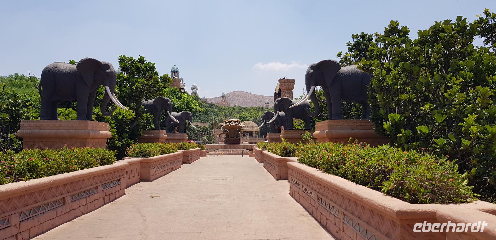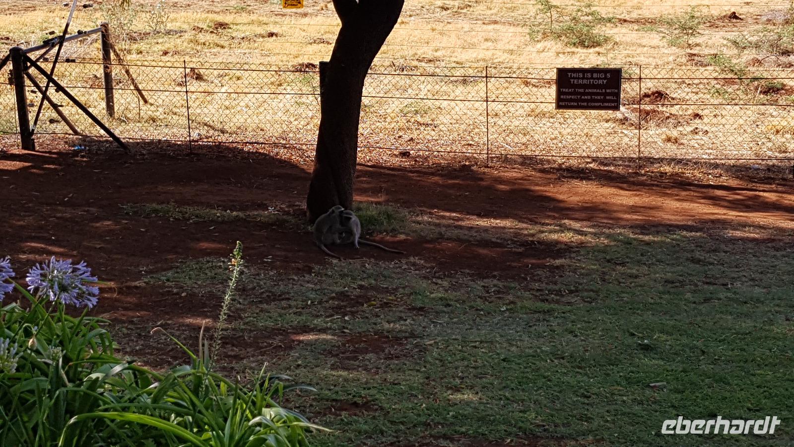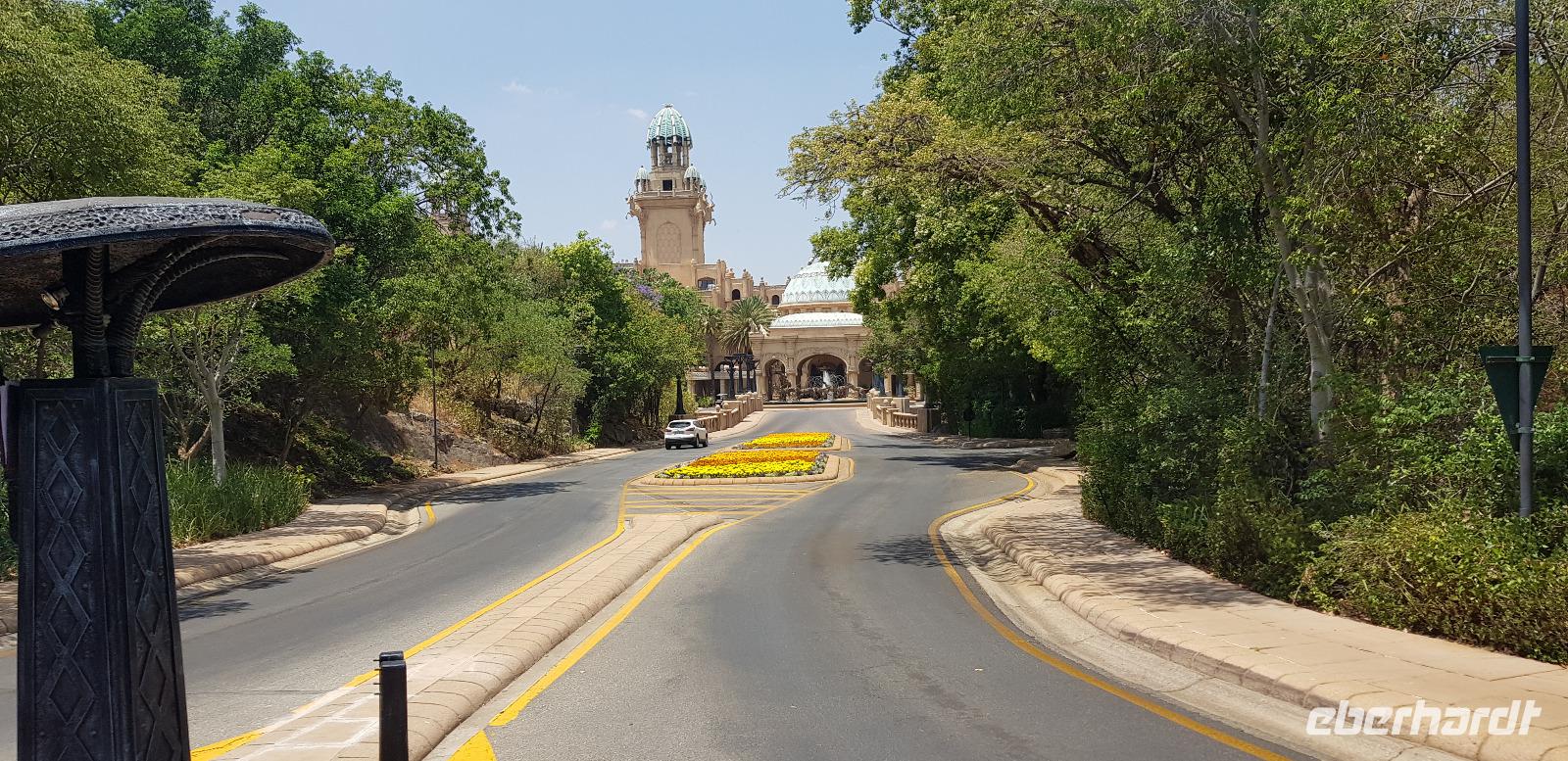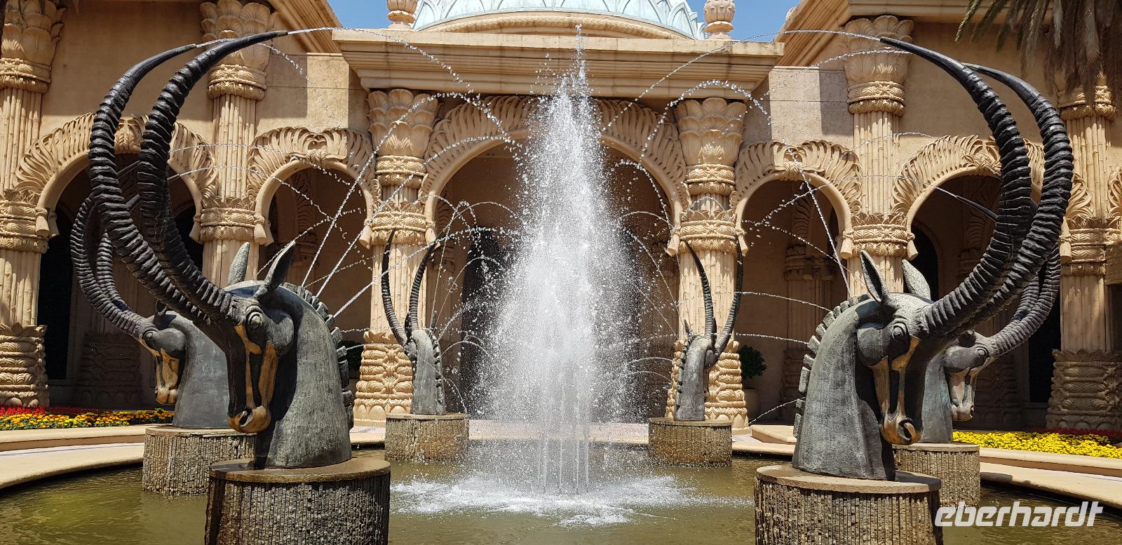 Danach erkunden wir gemütlich die gigantische Ferienanlege von Sun City, sehen den künstlichen Strand und besuchen das Palace Luxushotel. Hier schaffen wir es sogar - Dank Anita - hinein und spazieren einmal kurz durch die Lobby und wieder zurück. Zum Abschluss blicken wir noch einmal kurz ins Casino. Hier demonstriere ich wie schnell man in wenigen Minuten 10€ verspielt. Es gewinnt eben immer die Bank. Nun fahren wir zurück in unsere schöne Lodge, wo wir noch etwas Freizeit haben bis zur nächsten Safari. Die meisten entspannen sich am schönen Pool oder packen schon die Koffer für die morgige Abreise