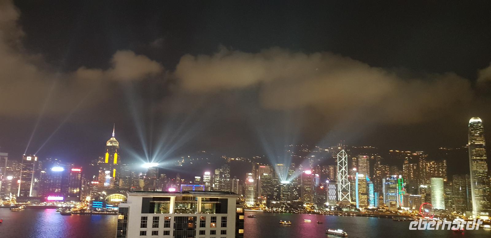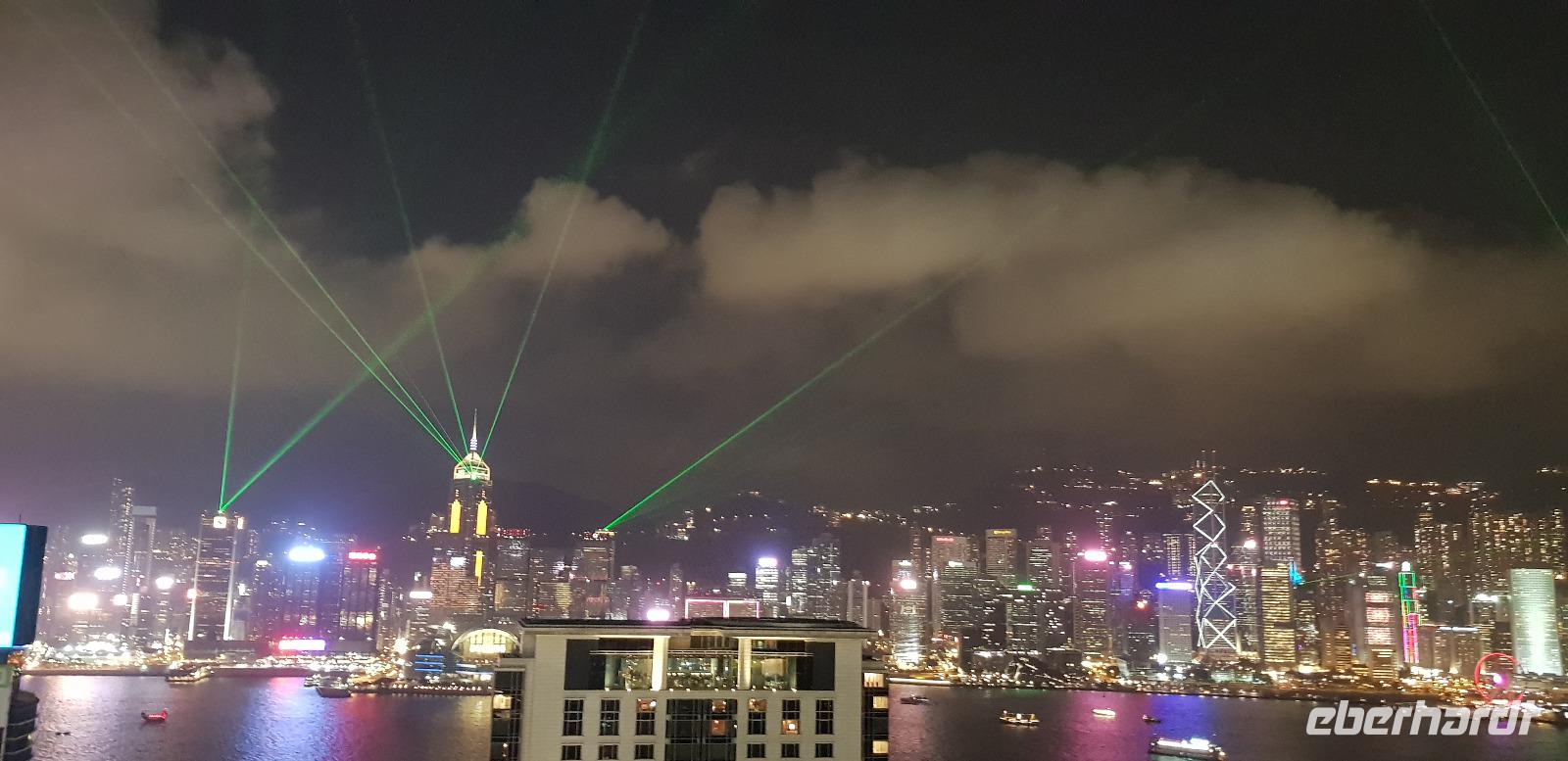 Gegen 16Uhr erreichen wir schließlich unser Hotel „The Cityview", wo wir nach dem Check-in noch etwas Freizeit genießen können. Am frühen Abend werden wir wieder von Reiseleiter Tak abgeholt und zum Restaurant Nanhai No. 1 gebracht. Hier erwartet uns in der 30. Etage ein exklusives 10 Gänge Menü. Es gibt u.a. Hummer, Jakobsmuscheln und natürlich Peking Ente. Ein Genuss mit Aussicht. Die abendliche Lichtershow „Symphony of Lights" rundet unser Skyrestaurant-Erlebnis ab. Vom Tisch oder vom Balkon aus, blicken wir auf die gigantische Lichtershow, die von den Hochhäusern auf der anderen Seite vom Victoria Harbour abgespielt wird. Was für ein toller Anblick - Hong Kong ist immer wieder Klasse! Nach einem hervorragenden Abendessen, fahren wir mit Reiseleiter Tak zum Hotel zurück und verabschieden uns bis zum nächsten Tag.