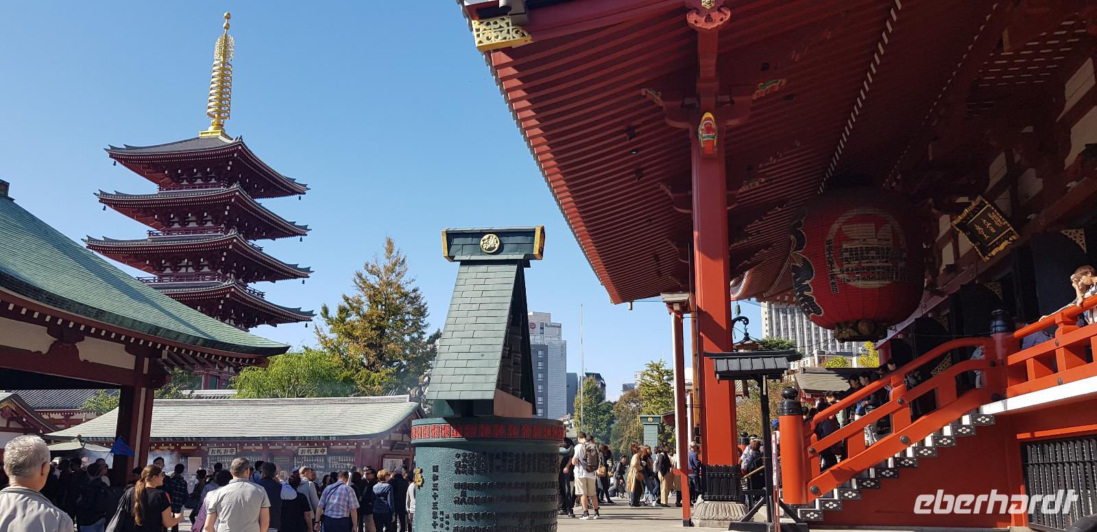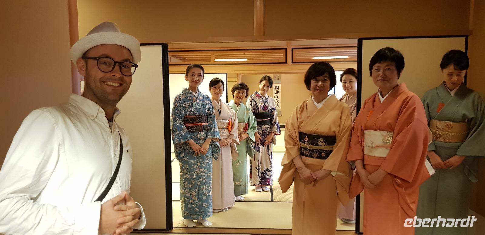 Nun heißt es schon wieder auschecken, denn heute Abend fliegen wir schon nach Australien weiter. Vorher unternehmen wir jedoch noch eine schöne Stadtrundfahrt durch Tokio. Zuerst besuchen wir den Meji Schrein, wo uns viele kleine süße Kinder in ihren Kimonos entgegenkommen. Heute werden in Japan viele Kindertaufen/Kindersegnung gefeiert. Wir fragen höfflich, ob wir Fotos schießen dürfen und die meisten Kinder stellen sich fotogen in Pose. Was für eine Freude... die Tempelanlagen werden dabei zur Nebensache. Anschließend geht es weiter zum Aksakusa Kannon Tempel, im gleichnamigen Stadtteil. Auch hier führt uns Reiseleiter Nils umher und anschließend haben wir noch ausreichend Freizeit. Abschließend besuchen wir einen kleinen Aussichtpunkt auf einem Bürogebäude, von wo aus wir einen tollen Blick auf den Skytree und die umliegenden Marktstände haben. Weiter geht es mit unserem Reisebus zur Teezeremonie, wo uns auf ganz traditionelle Art und Weiße der Tee serviert wird. Wir dürfen alle auf dem Boden und im Kreis platz nehmen, wo uns als erstes ein kleines Stück Reißgebäck serviert wird, danach folgt der japanische Tee. Ich glaube das niemand von uns zuvor so aufwändig und zeremoniell seinen Tee genossen hat. Nach der entspannten Teestunde fahren wir zum Flughafen, wo wir uns von Reiseleiter Nils verabschieden.