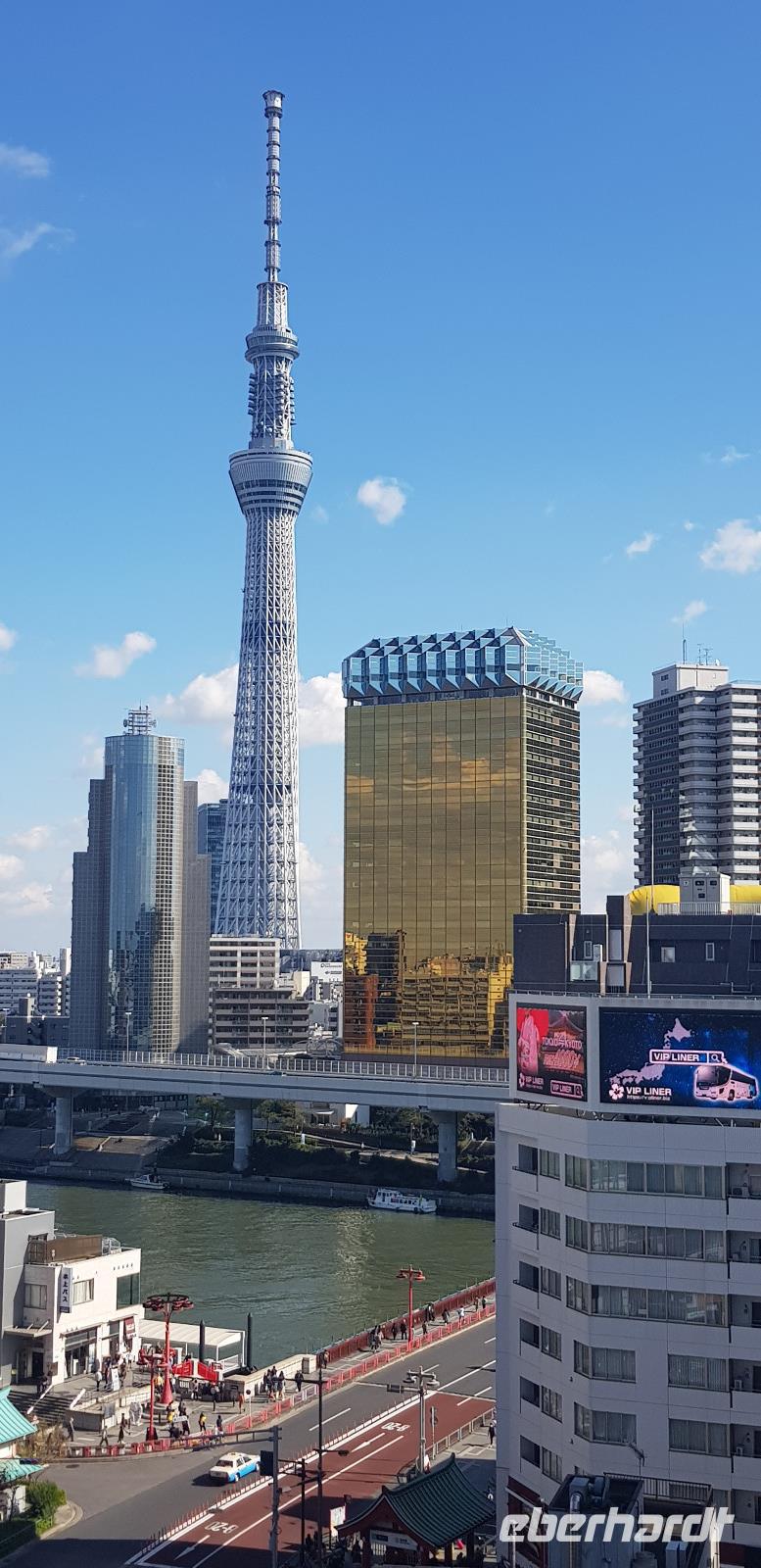 Mit dem Bus fahren wir etwa eine Stunde zum 634 Meter hohen Skytree, dem zweithöchsten Bauwerk der Erde. Von hier aus blicken wir auf die gigantische Stadt, wo bis zum Horizont nur Lichter zu sehen sind. Reiseleiter Nils erklärt uns alle wichtigen Punkte, bevor jeder noch etwas Freizeit zum fotografieren hat. Danach geht es weiter zu unserem schicken 4 Sterne Hotel, wo wir nach dem Check-in noch ein reichhaltiges Buffet-Abendessen genießen dürfen. Anschließend führt uns Nils noch in einen Supermarkt, bevor wir uns auf eine erholsame Nacht freuen.