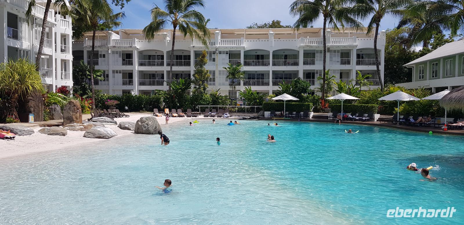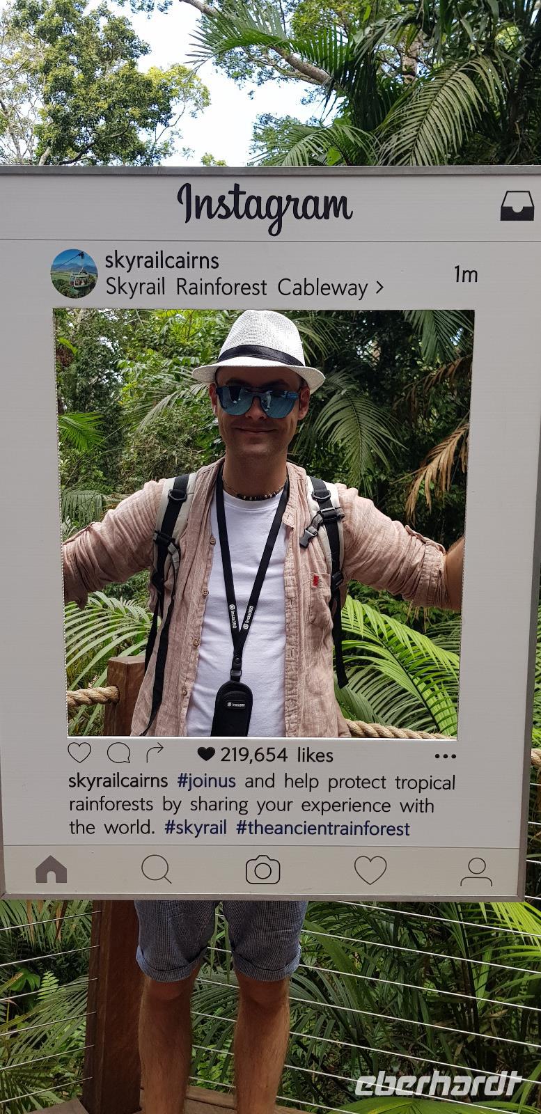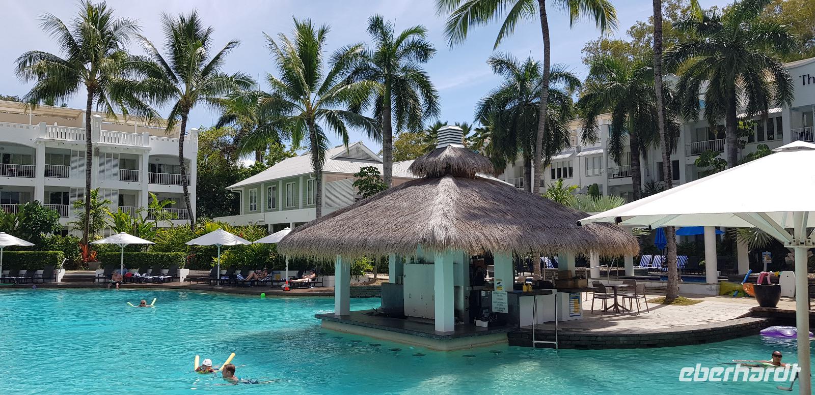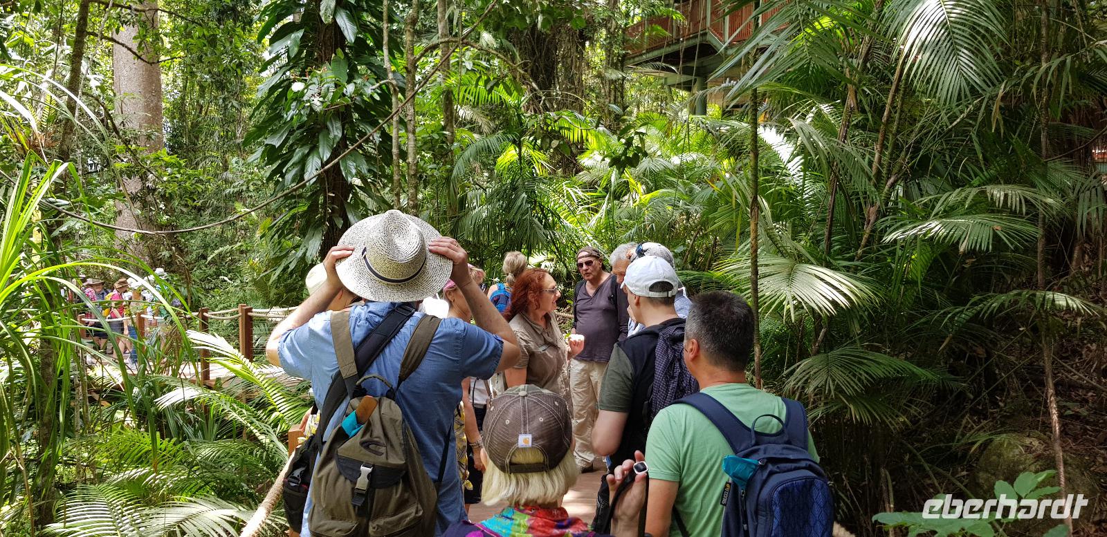 Am frühen Morgen landen wir an der Ostküste von Australien in Cairns. Hier werden wir von Reiseleiterin Claudine in Empfang genommen. Auch sie kenne ich schon von der letzten Eberhardt Reise im Februar... Wiedersehen macht Freude. ?? Gemeinsam fahren wir ca. 30min zu unserem schicken 5 Sterne Hotel „Peppers Beach Club" in Palm Cove. Wir checken ein und genießen das reichhaltige Frühstücksbuffet. Der restliche Tag steht zur freien Verfügung. Die meisten ruhen sich aus oder gehen Baden am schönen Sandstrand gegenüber von der Hotelanlage. Abends treffen wir uns für einen kleinen Umtrunk - sponsert by Herrn Eberhardt - es gibt australischen Bundaberg Rum.