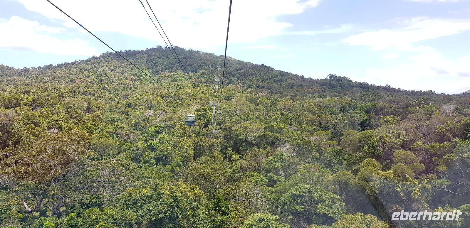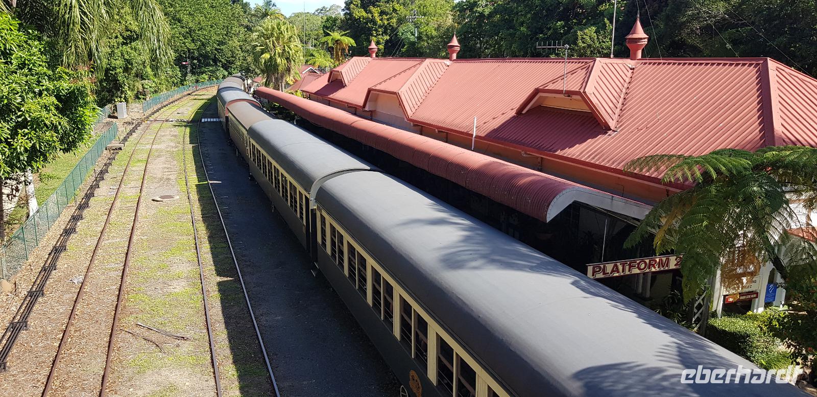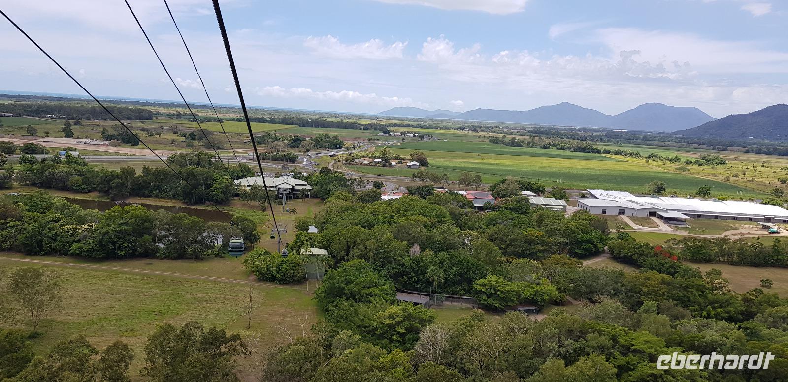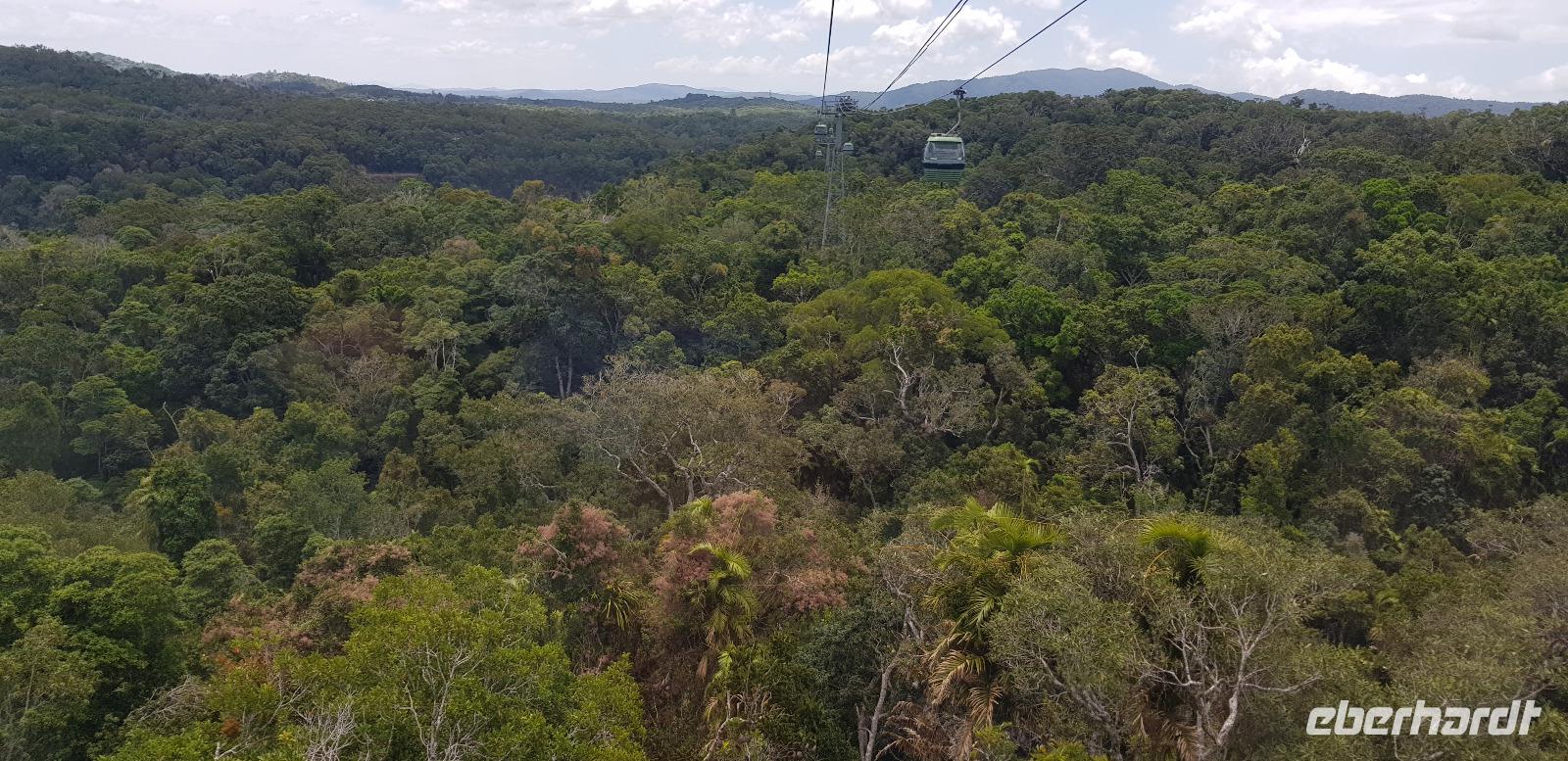 Anschließend fahren wir mit der Skyrail. Die Gondelbahn ist eine 7,5 km lange Seilbahn, deren Strecke durch den tropischen Regenwald verläuft, wobei die Gondeln nur wenige Meter über den Baumwipfeln schweben. Wir erleben eine atemberaubende Sicht! Am ersten Stopp können wir entlang eines Baumpfadwegs spazieren und die Tropenwelt auch vom Boden genießen. Unser nächster Halt sind die Barron Falls, ein steiler Wasserfall und eine tolle Fotomöglichkeit. Die Fahrt endet in Kuranda, wo wir etwas Freizeit haben zum Mittagessen und Bummeln, bevor es mit dem Zug zurück nach Cairns geht.