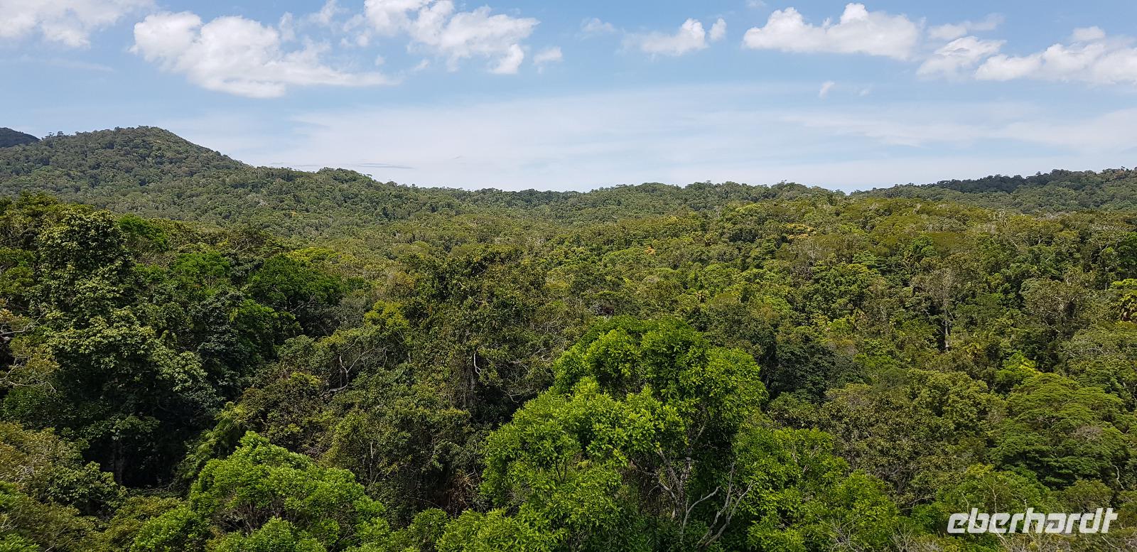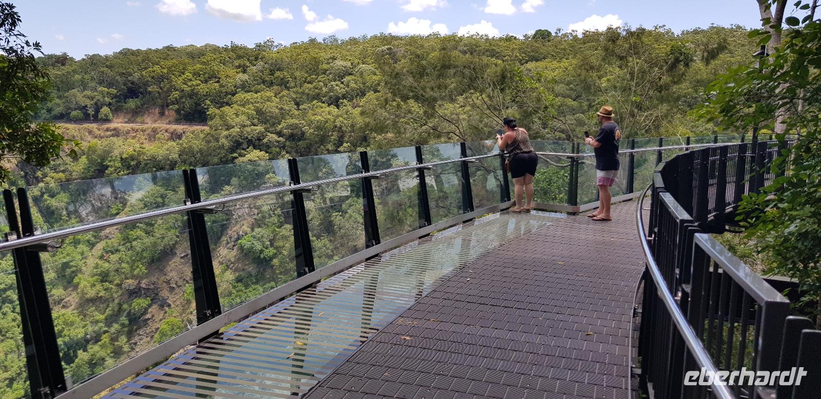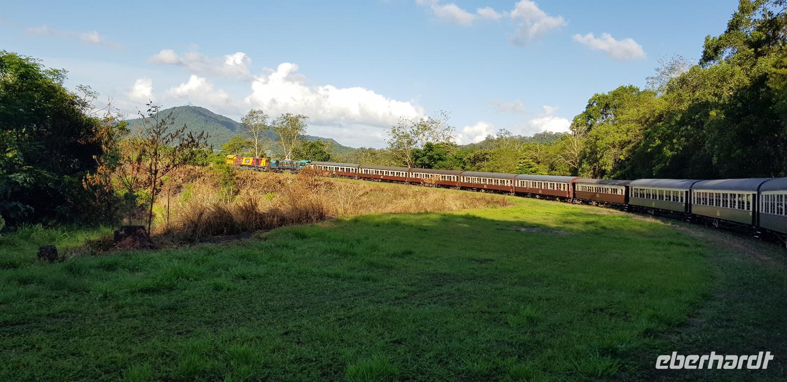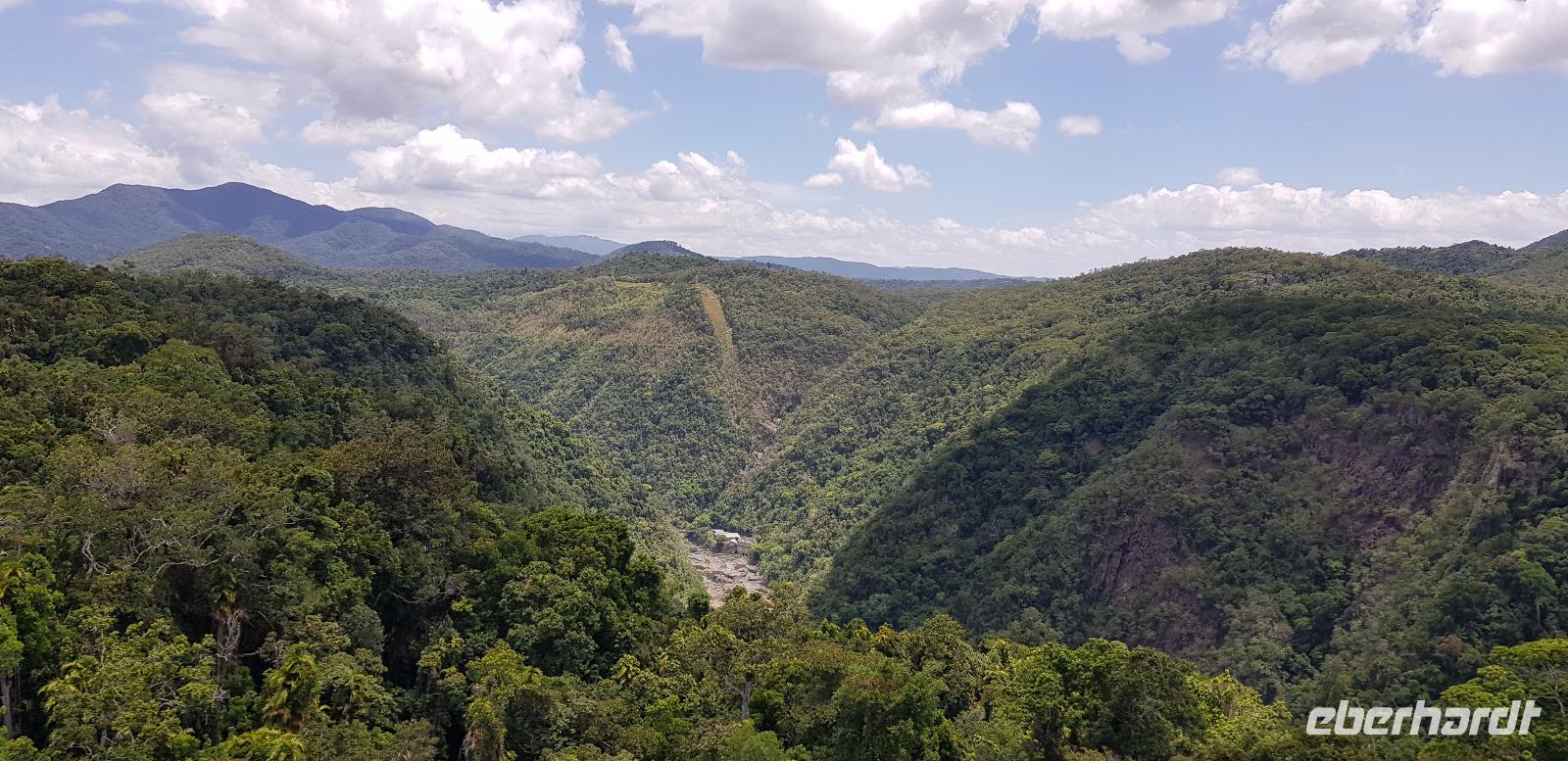 Anschließend fahren wir mit der Skyrail. Die Gondelbahn ist eine 7,5 km lange Seilbahn, deren Strecke durch den tropischen Regenwald verläuft, wobei die Gondeln nur wenige Meter über den Baumwipfeln schweben. Wir erleben eine atemberaubende Sicht! Am ersten Stopp können wir entlang eines Baumpfadwegs spazieren und die Tropenwelt auch vom Boden genießen. Unser nächster Halt sind die Barron Falls, ein steiler Wasserfall und eine tolle Fotomöglichkeit. Die Fahrt endet in Kuranda, wo wir etwas Freizeit haben zum Mittagessen und Bummeln, bevor es mit dem Zug zurück nach Cairns geht.