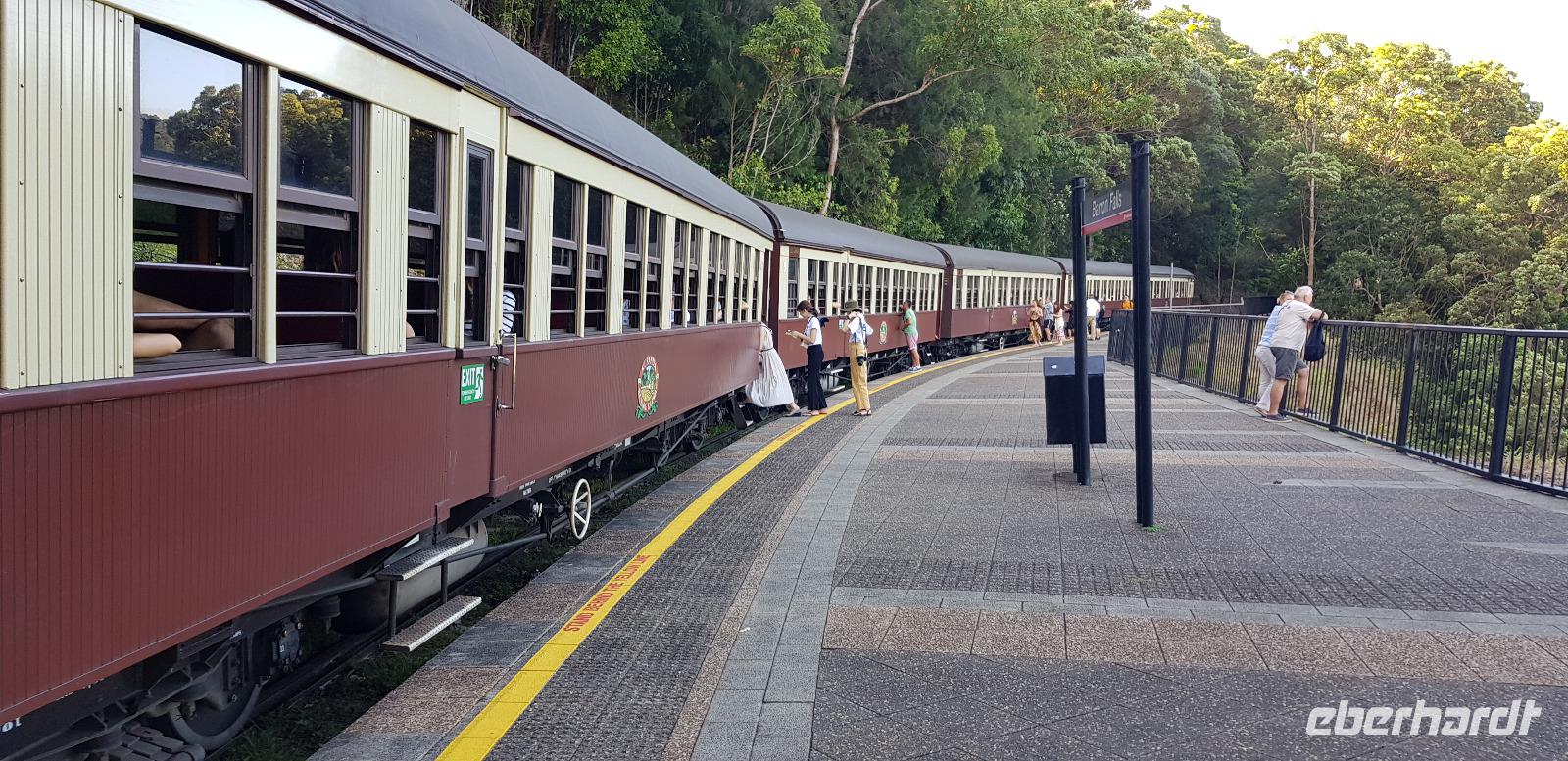 Während der Zugfahrt mit der historischen Eisenbahn Scenic Train, stoppen wir nochmals an den „Barronfalls" Wasserfällen... diesmal von einer anderen Seite.