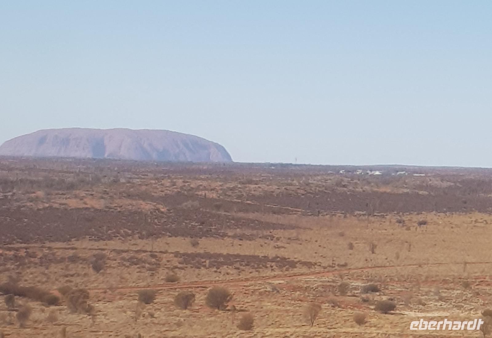 Am Morgen fahren wir zum Flughafen und nehmen die einzige Maschine die direkt zum Ayers Rock fliegt an diesem Tag. Nach etwa 3 Stunden Flugzeit, erreichen wir das Rote Zentrum. Einige haben Glück und können den Ayers Rock sogar vom Flugzeug aus erkennen. Auch hier werden wir von einer deutschsprachigen Reiseleiterin in Empfang genommen - sie heißt Eva und kommt aus Süddeutschland. Gemeinsam fahren wir als erstes zum Aborigine Museum und Kulturzentrum. Dort sehen wir Aborigine-Kunstwerke und erfahren wir einiges über die Kultur der Ureinwohner. Zudem haben wir hier die Möglichkeit uns Fliegennetze für den Kopf zu kaufen. Die Fliegen sind hier besonders lästig, weil sie Feuchtigkeit suchen und einem ständig in die Augen, Ohren und Nasen fliegen. Nun sind wir alle bestens ausgestattet und wir fahren weiter zum Ayers Rock. Dort unternehmen wir einen kleinen Rundgang zu einem Wasserloch - auch Billabong genannt.