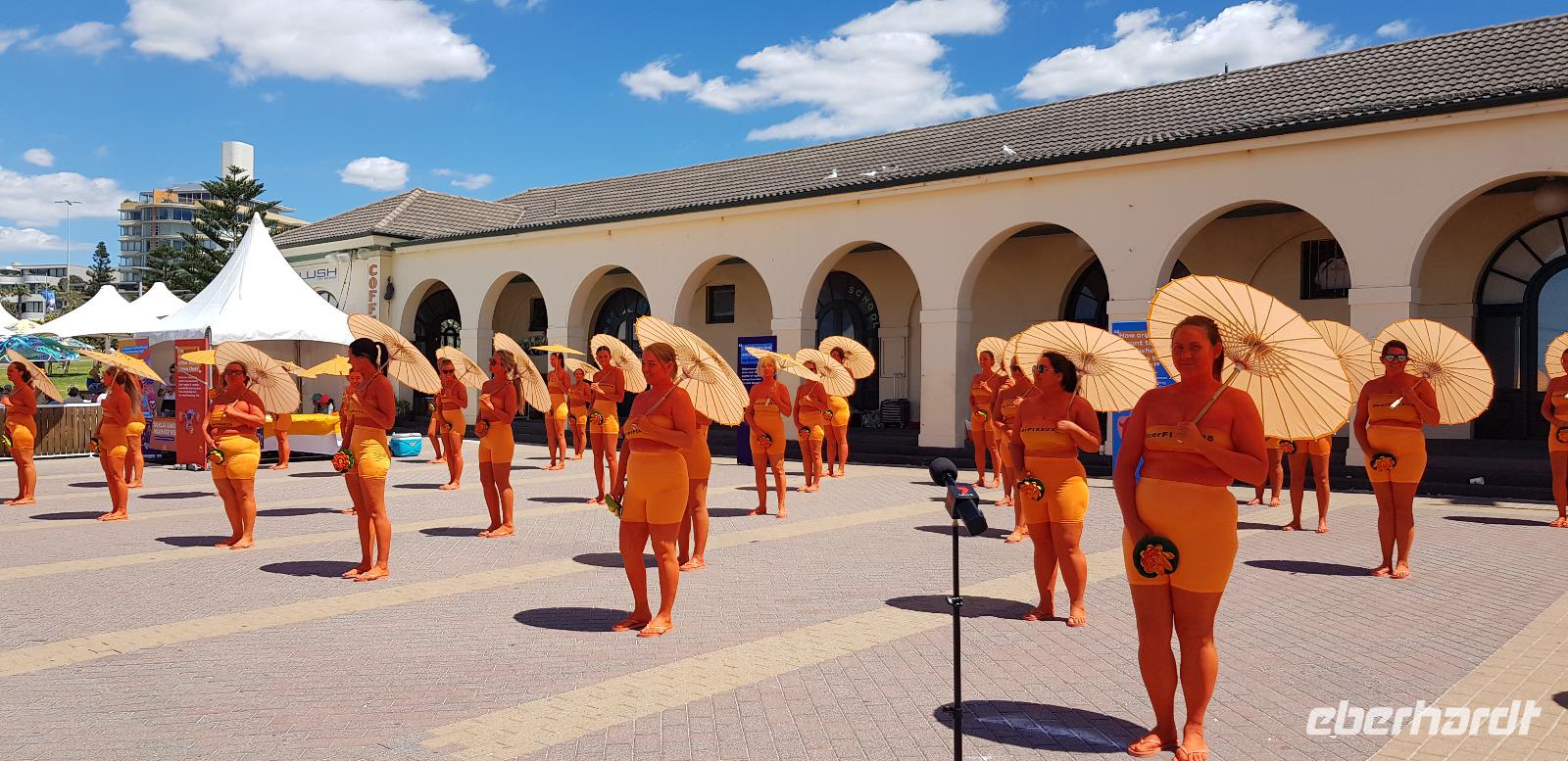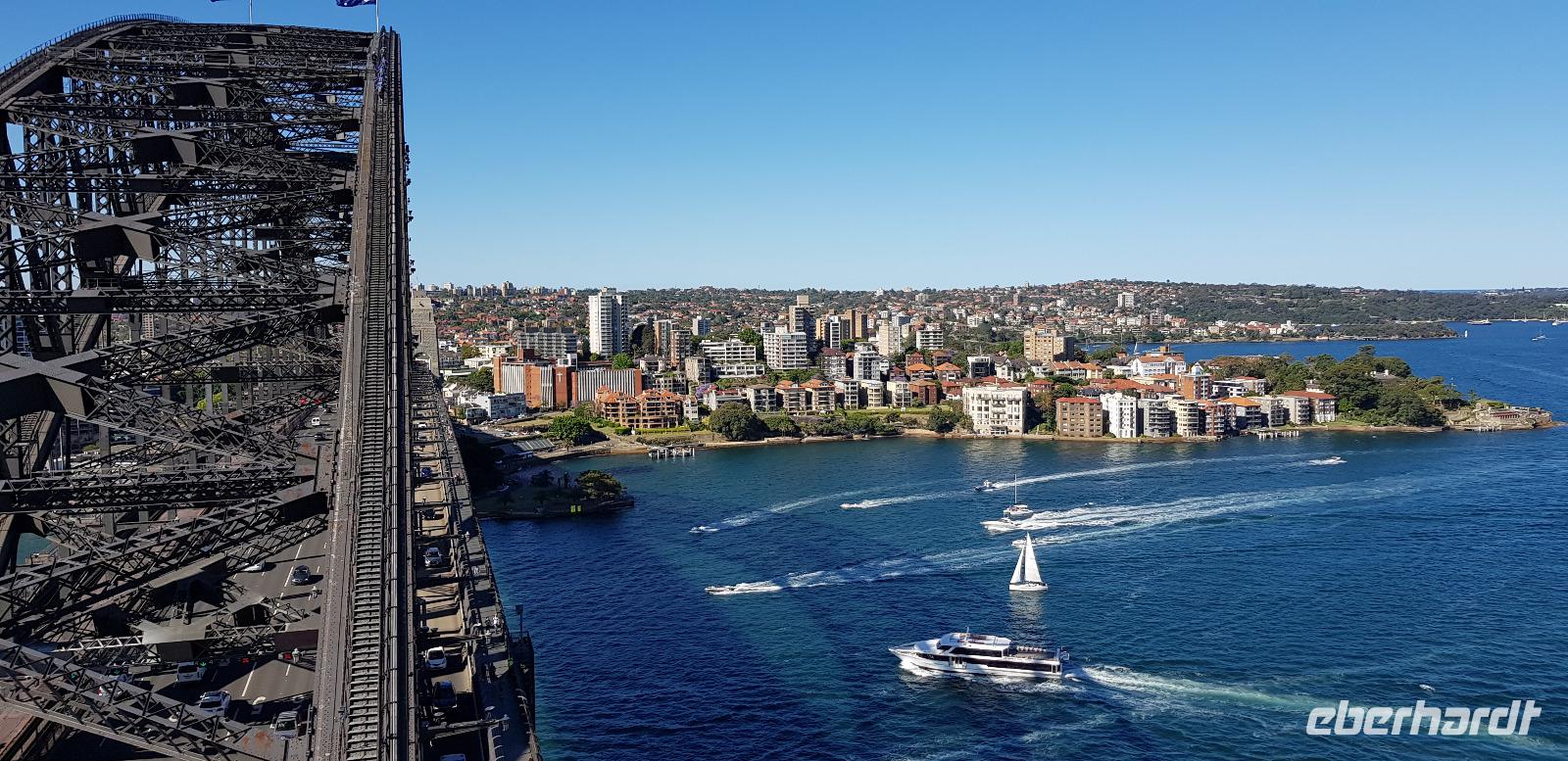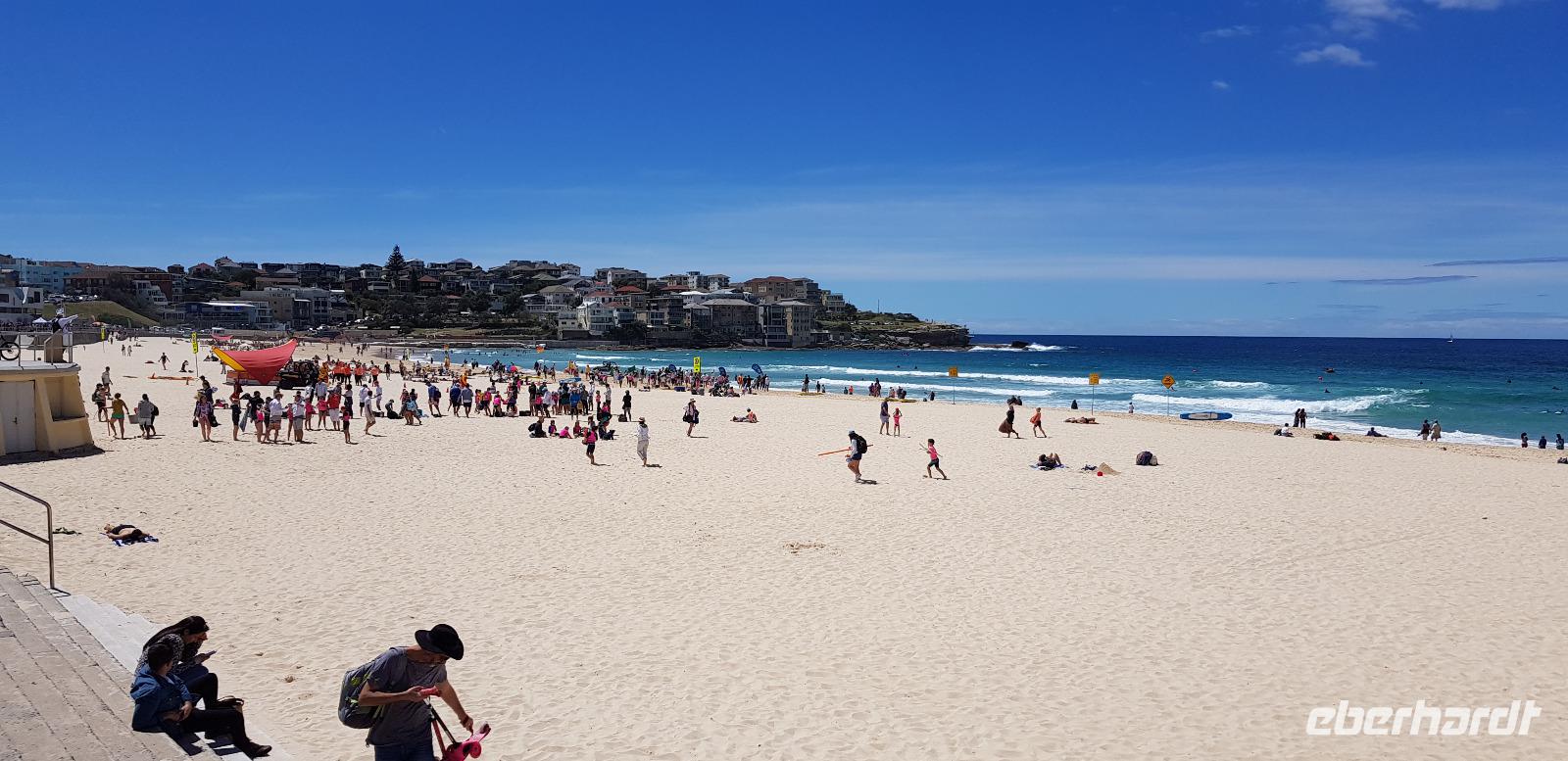 Die Sonne scheint und der Himmel ist wolkenfrei - also beste Voraussetzung für eine tolle Stadtrundfahrt. Mit Uli und unserem Reisebus fahren wir als erstes zur weltbekannten Harbour Bridge, von wo aus wir auf die Sydney Oper blicken. Was für ein toller Gänsehautmoment... für viele geht nun wieder ein Traum in Erfüllung. Weiter geht es durch die Innenstadt zum Botanischen Garten, wo wir die Oper von der anderen Seite aus fotografieren können. Anschließend fahren wir durch Woollomoolo zum Aussichtspunkt am „Jacob Ladders Point" und schließlich zum Bondi Beach. Dort haben wir Freizeit zum Kaffee trinken oder für einen kleinen Strandspaziergang. Wir haben Glück, denn heute ist Sonntag und der Strand ist lebhaft gefüllt. So erleben wir den richtigen Flair und entdecken die ein oder andere Strandschönheit. ;-)