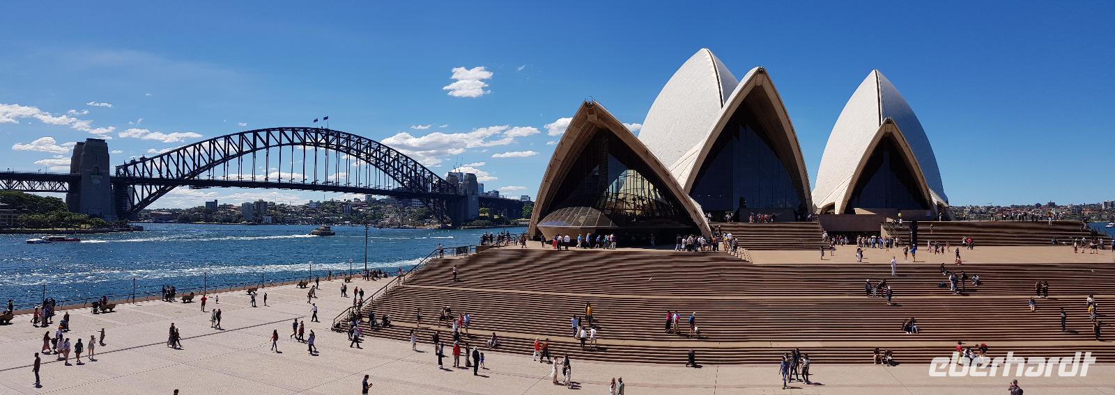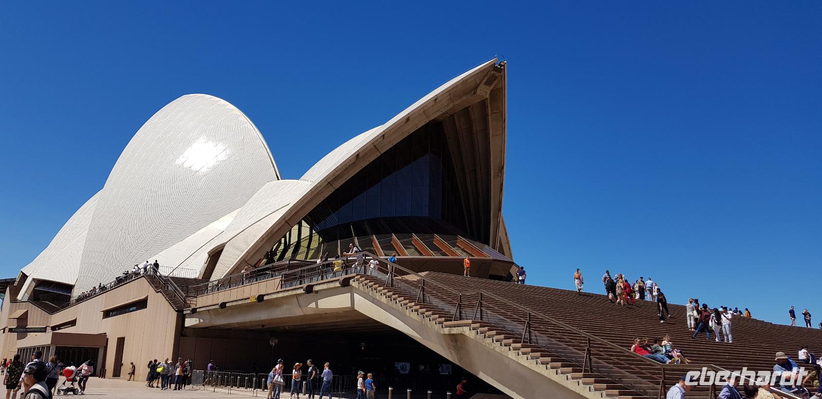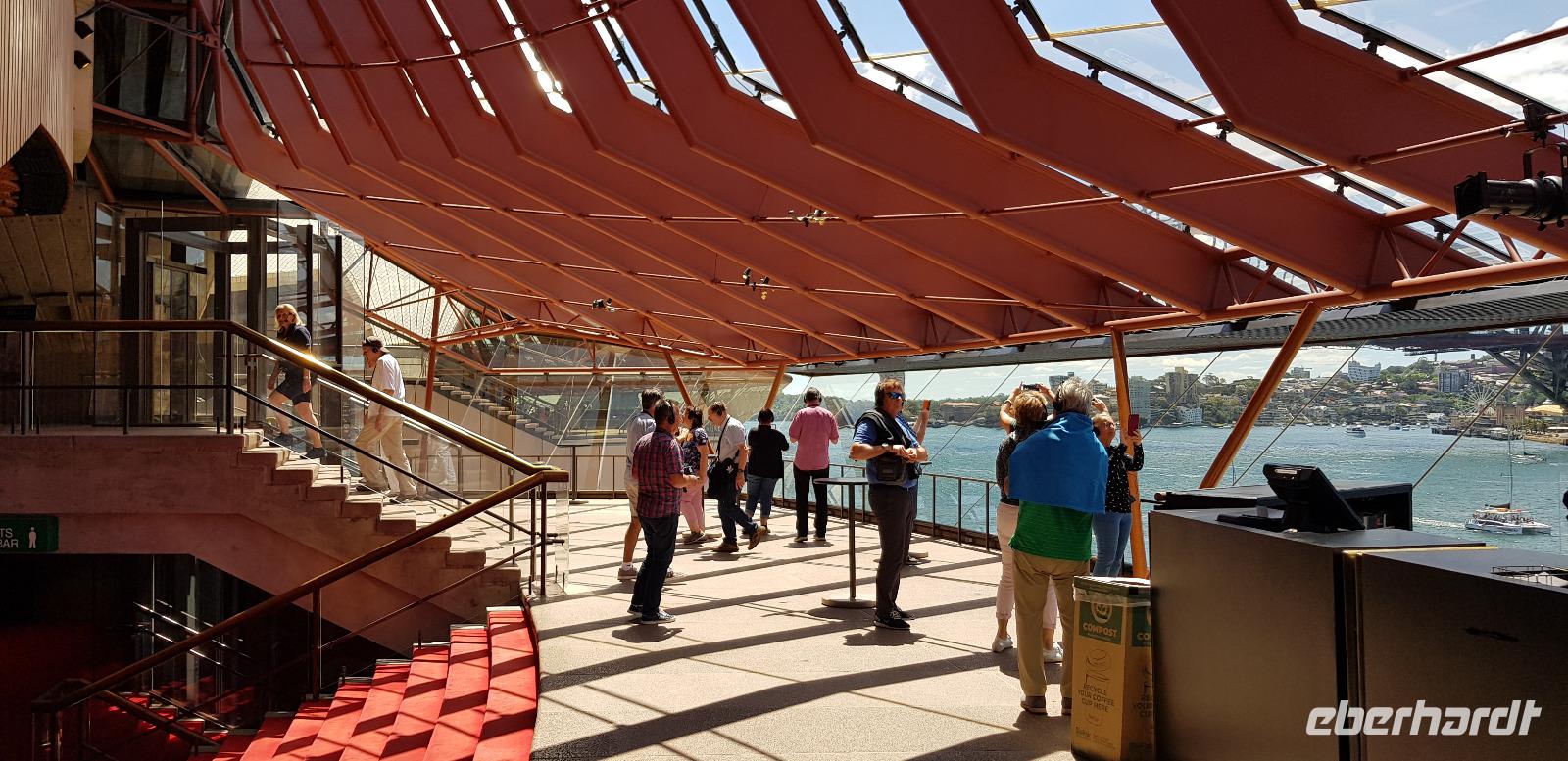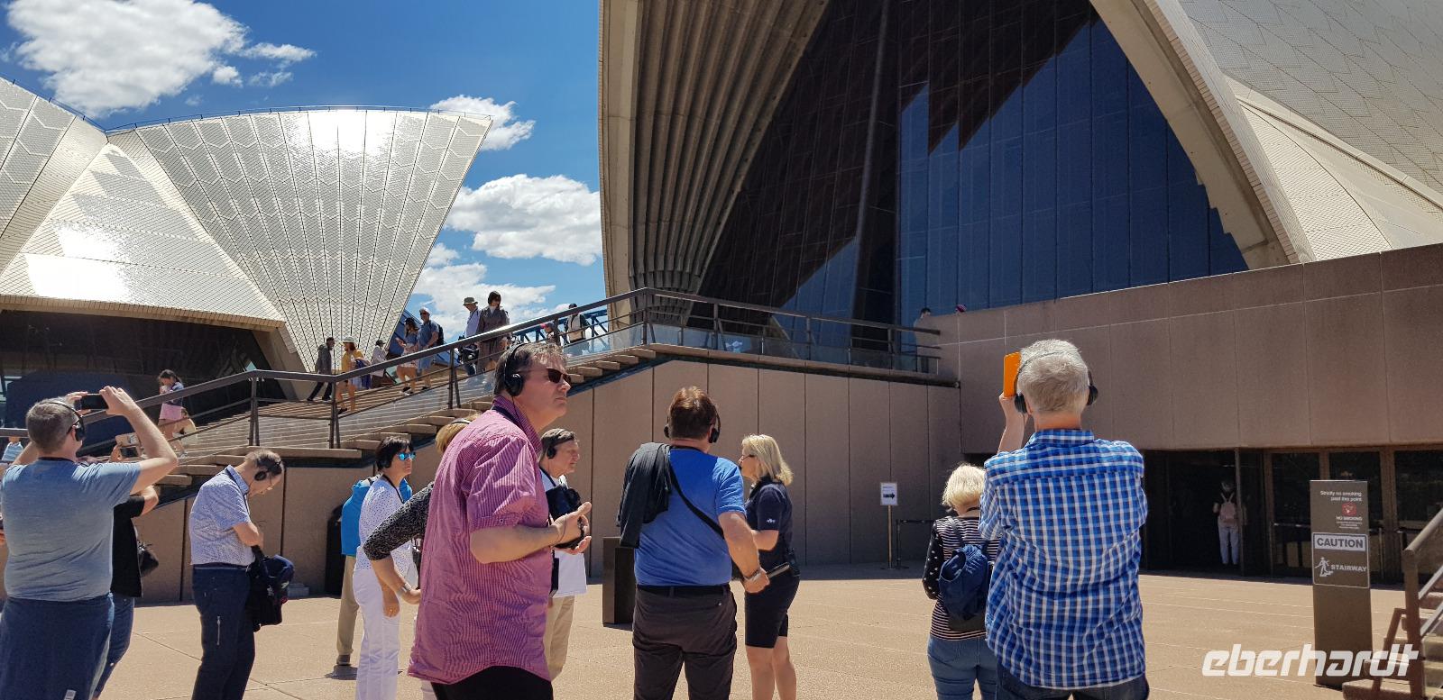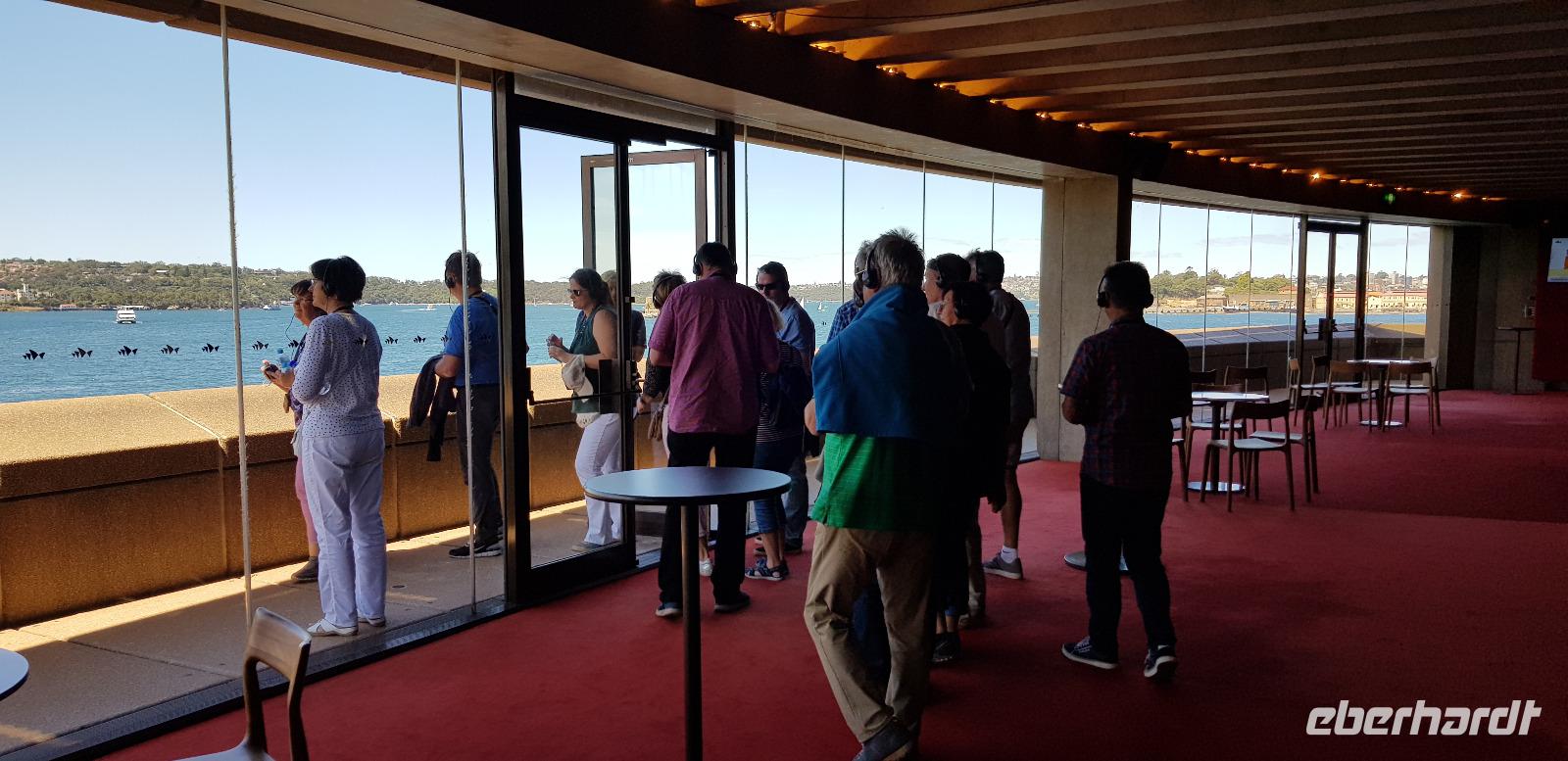 Wir wären gerne noch länger geblieben, jedoch haben wir für unsere Gäste eine Überraschung organisiert: eine exklusive Führung durch das imposante Opern Gebäude. Eine deutschsprachige Mitarbeiterin der Sydney Oper führt uns ca. 1 Stunde durch die verschiedenen Konzertsäle und Foyers. Was für eine tolle Überraschung - wir sind begeistert! Nach dem Highlight haben wir nun Freizeit zum Mittagessen oder um Sydney auf eigene Faust zu erkunden.