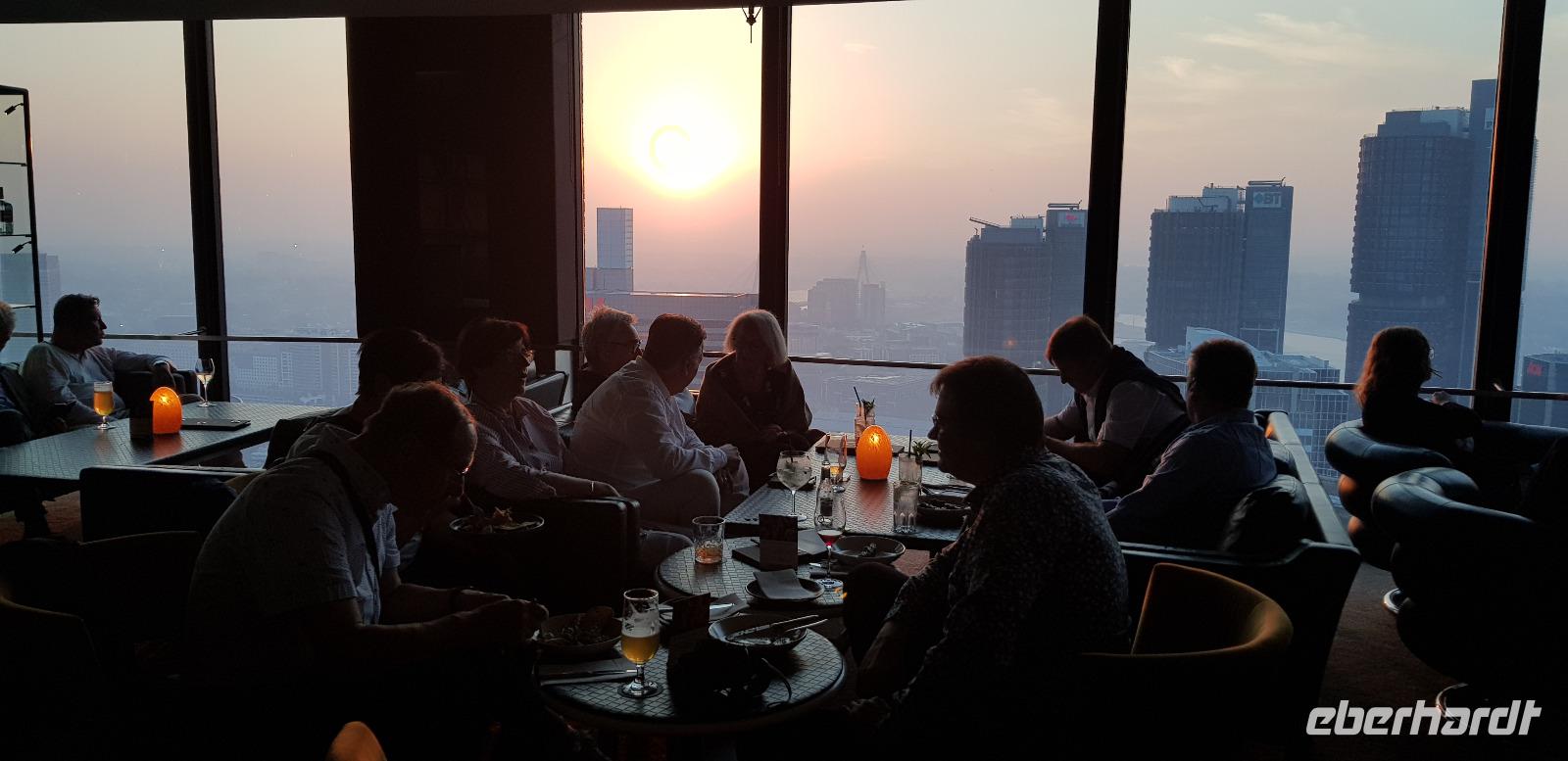 Abends lassen wir den Tag im Hotelrestaurant ausklingen und blicken auf den schönen Sonnenuntergang über den Dächern der Millionen Metropole. :-)