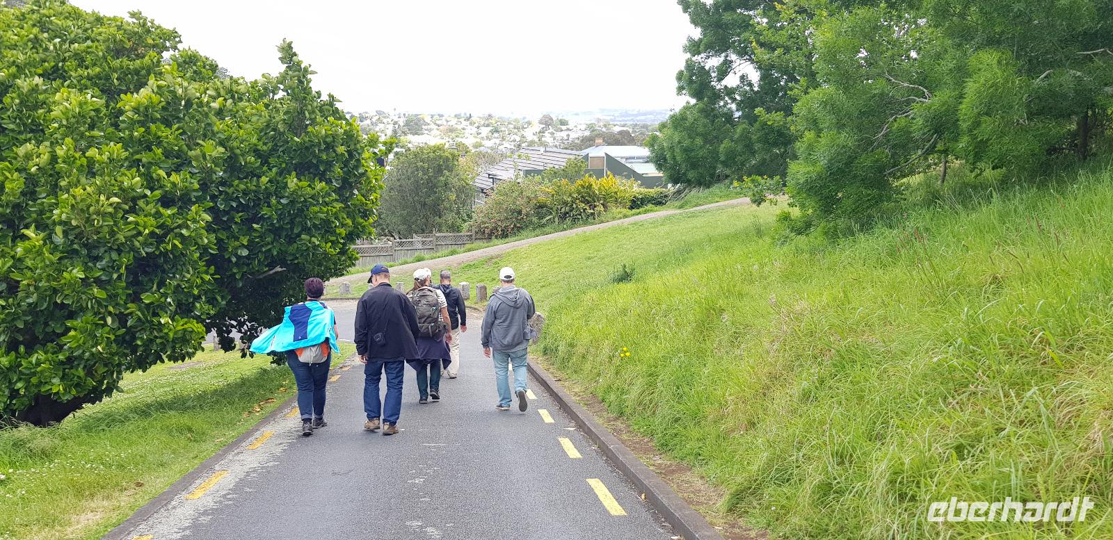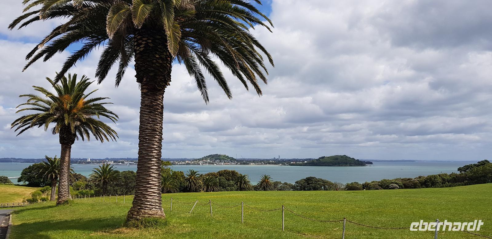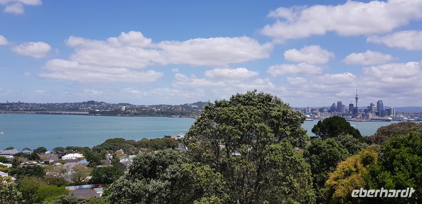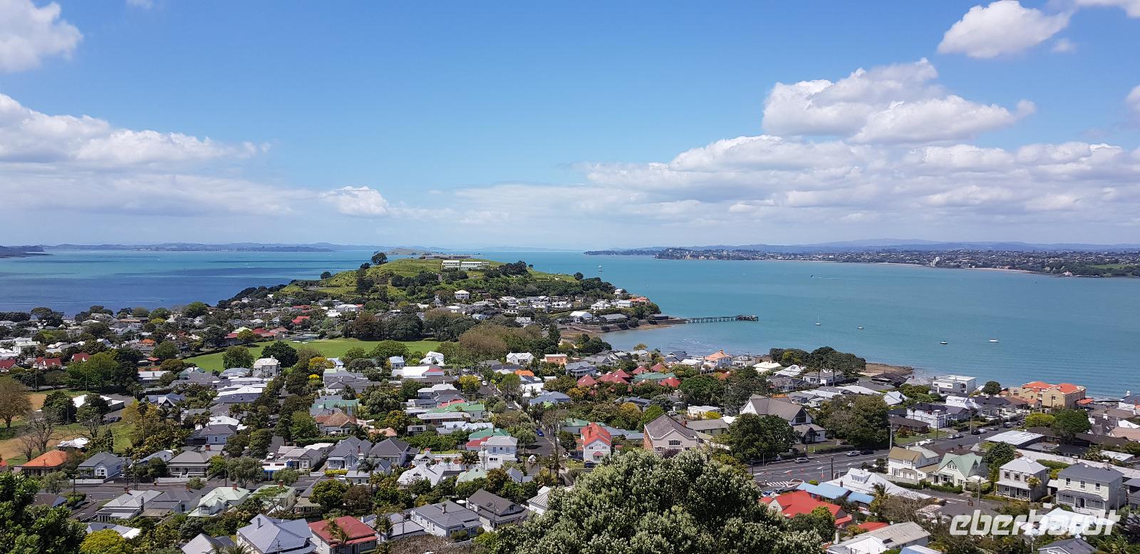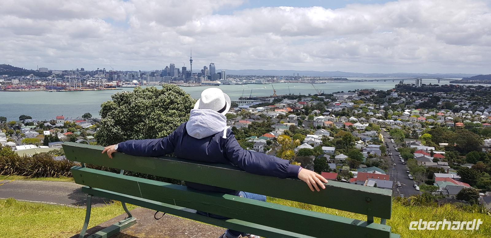 Anschließend geht es weiter zum Mount Victoria im Stadtteil Devenport. Dort spazieren wir den 87m hohen Vulkanberg hinauf, um von oben die tolle Aussicht auf Auckland zu genießen. Wir blicken auf die Vororte, die Skyline und die Buchten von Auckland. Fazit: etwas Bewegung und frische Luft tun immer gut! ;-)