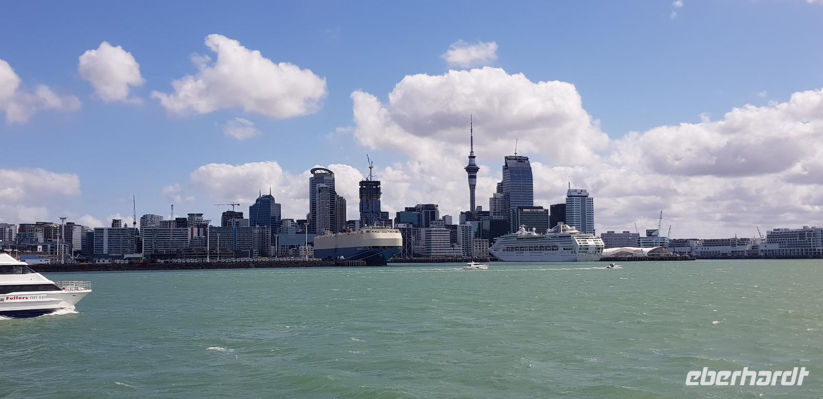 Danach spazieren wir wieder hinunter und haben noch etwas Freizeit zum Mittagessen, bevor es mit der Fähre wieder ins Zentrum von Auckland zurück geht. Dort angekommen nimmt uns unser Bus wieder in Empfang und bringt uns schließlich zum Hotel.