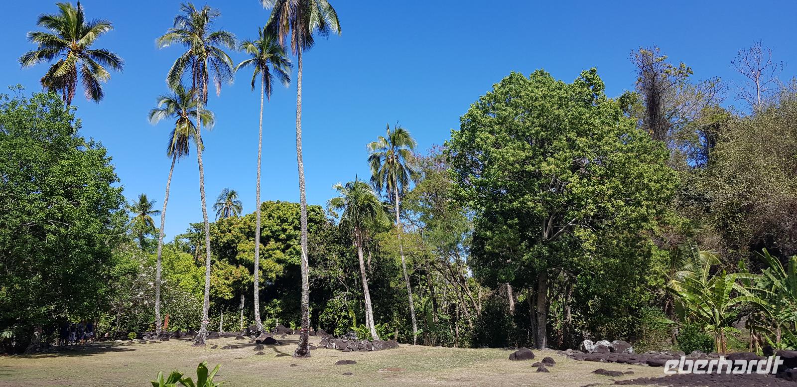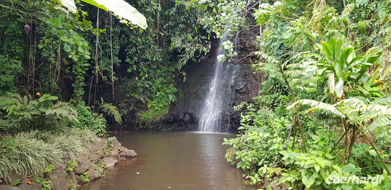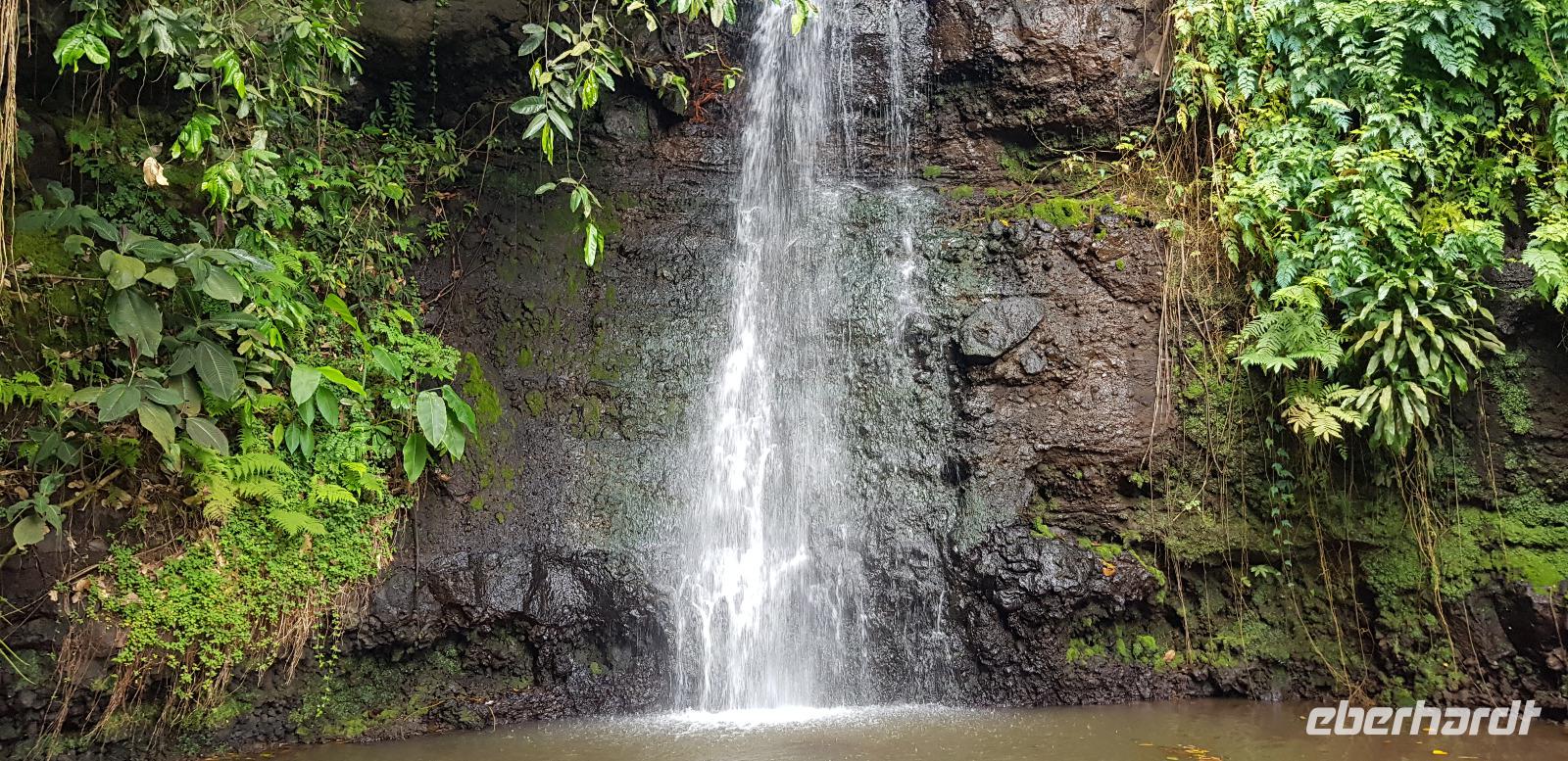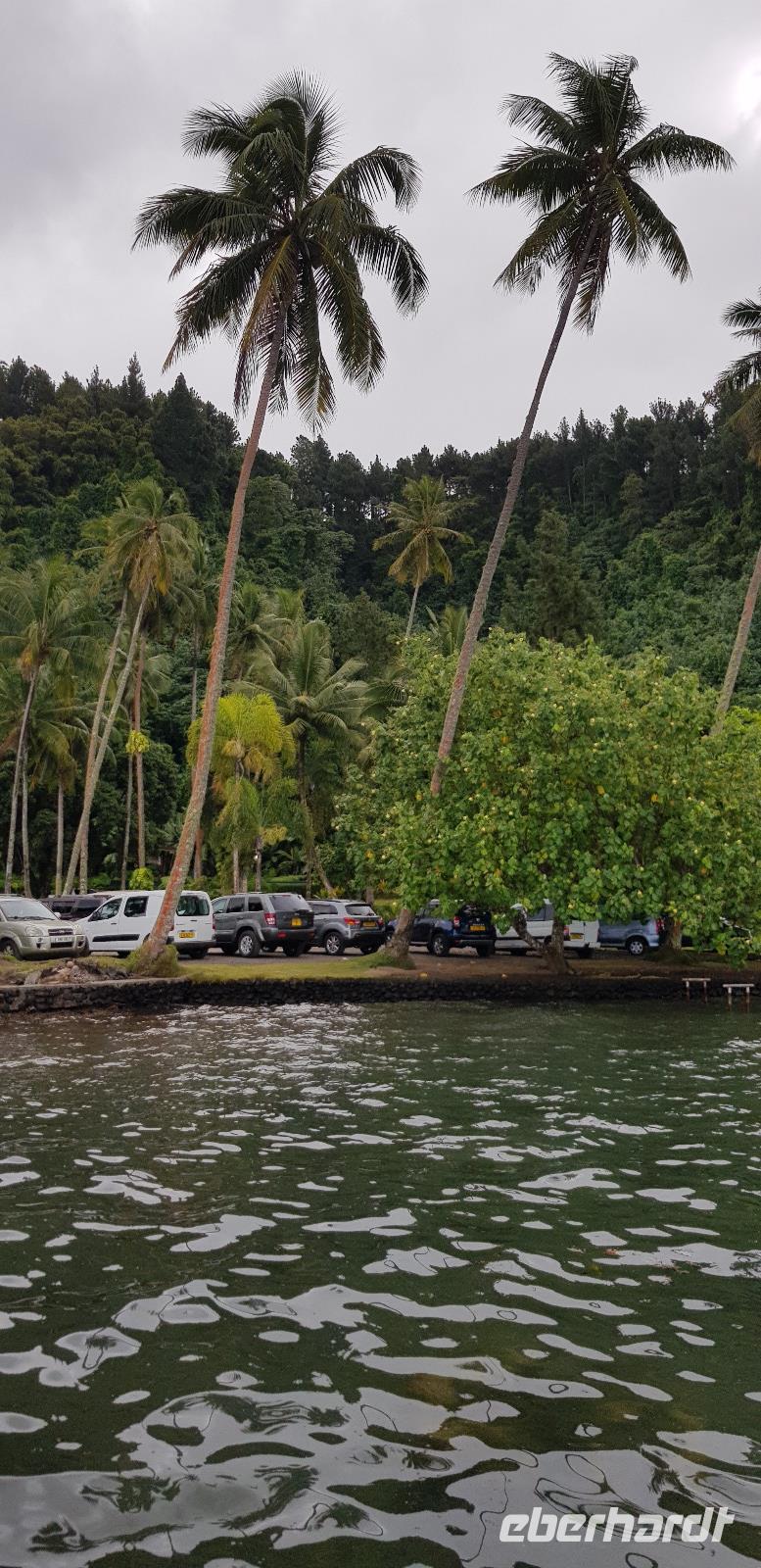 Im Hotel werden wir von Reiseleiterin Margit begrüßt und schon geht es auf gemeinsame Inselrundfahrt. Unser erster Programmpunkt ist das Tahiti-Inselmuseum, wo wir einige historische Exponate über die Polynesischen Inseln bestaunen können. Wir sind die einzigen Besucher und das Museum hat nur wegen uns geöffnet. Margit erklärt die Geschichte und Besiedlung der Südsee, was sich anhand einer großen Pazifik Karte gut vorzustellen ist. Anschließend stoppen wir an den Ausgrabungen von Arahurahu Marae - einem Zeremonienplatz der Polynesier. Nach einem ausführlichen Rundgang bekommen wir einen neuen Reisebus, denn beim vorhergehende machte leider die Klimaanlage schlapp. Weiter geht es also um die Insel mit angenehmer Kühlung. Unser nächster Fotostopp führt uns zur „Maraa fern Grottes" eine Höhle mit kleinen Wasserfällen und einer Badestelle, umgeben von einer Parkanlage. Dort präsentiert uns ein einheimischer stolz seine Tattoos und sein klappriges Fahrrad, verziert mit bunten Blumen. Als nächstes erreichen wir das Paul Gauguin Restaurant, wo wir für eine Mittagspause einkehren. Es gibt frischen Frisch und als Nachspeise Eis oder frisches Obst. Gut gestärkt setzen wir unsere Inselrundfahrt fort und besuchen den Vaipahi Tropical Garden und den gleichnamigen Vaipah Wasserfall. Kurze Zeit später wartet schon der Faarumai Wasserfall auf uns und schließlich das „Blue Hole" - einer Bucht mit starker Wellenbrandung. Nun sind wir einmal fast um die Insel herum gefahren und erreichen unseren letzten Stopp, dem Venuspoint. Hier legte James Cook erstmalig am 10. April 1769 mit seinem Schiff Endeavour an. Eine tolle Inselrundfahrt geht zu Ende.