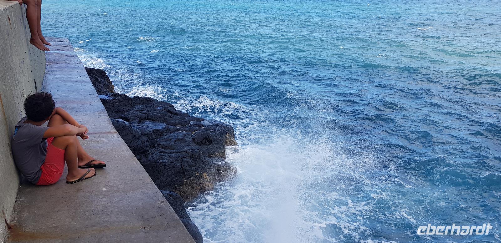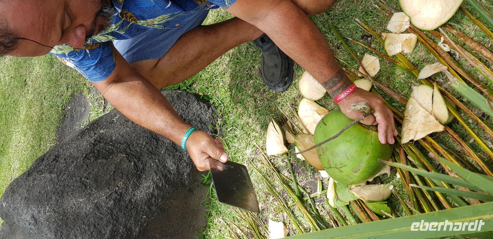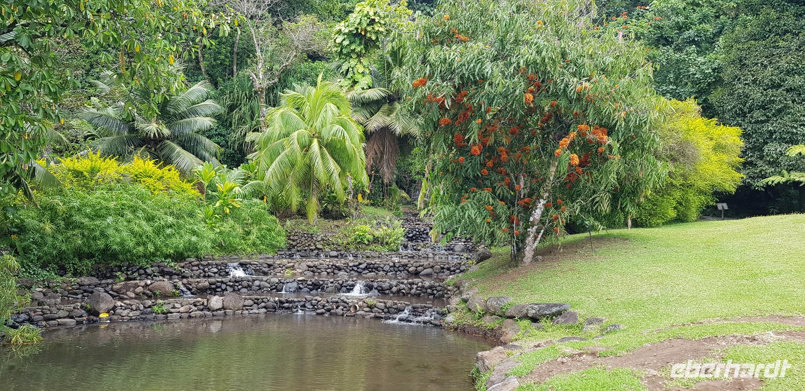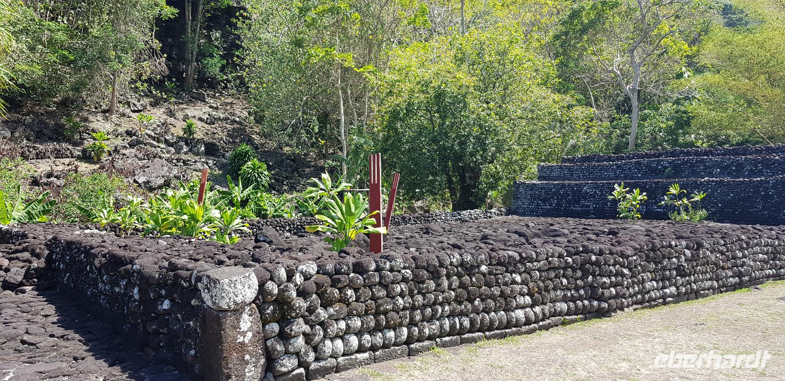 Im Hotel werden wir von Reiseleiterin Margit begrüßt und schon geht es auf gemeinsame Inselrundfahrt. Unser erster Programmpunkt ist das Tahiti-Inselmuseum, wo wir einige historische Exponate über die Polynesischen Inseln bestaunen können. Wir sind die einzigen Besucher und das Museum hat nur wegen uns geöffnet. Margit erklärt die Geschichte und Besiedlung der Südsee, was sich anhand einer großen Pazifik Karte gut vorzustellen ist. Anschließend stoppen wir an den Ausgrabungen von Arahurahu Marae - einem Zeremonienplatz der Polynesier. Nach einem ausführlichen Rundgang bekommen wir einen neuen Reisebus, denn beim vorhergehende machte leider die Klimaanlage schlapp. Weiter geht es also um die Insel mit angenehmer Kühlung. Unser nächster Fotostopp führt uns zur „Maraa fern Grottes" eine Höhle mit kleinen Wasserfällen und einer Badestelle, umgeben von einer Parkanlage. Dort präsentiert uns ein einheimischer stolz seine Tattoos und sein klappriges Fahrrad, verziert mit bunten Blumen. Als nächstes erreichen wir das Paul Gauguin Restaurant, wo wir für eine Mittagspause einkehren. Es gibt frischen Frisch und als Nachspeise Eis oder frisches Obst. Gut gestärkt setzen wir unsere Inselrundfahrt fort und besuchen den Vaipahi Tropical Garden und den gleichnamigen Vaipah Wasserfall. Kurze Zeit später wartet schon der Faarumai Wasserfall auf uns und schließlich das „Blue Hole" - einer Bucht mit starker Wellenbrandung. Nun sind wir einmal fast um die Insel herum gefahren und erreichen unseren letzten Stopp, dem Venuspoint. Hier legte James Cook erstmalig am 10. April 1769 mit seinem Schiff Endeavour an. Eine tolle Inselrundfahrt geht zu Ende.