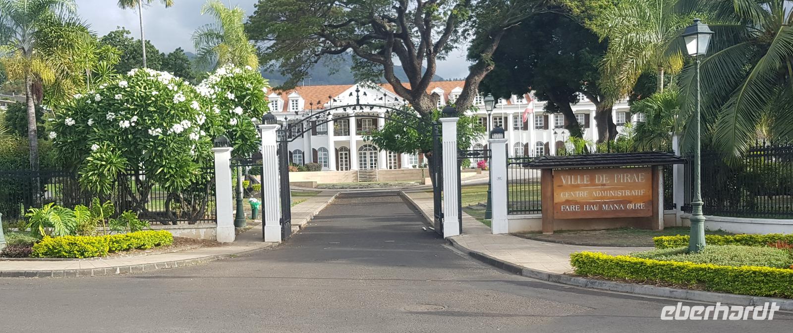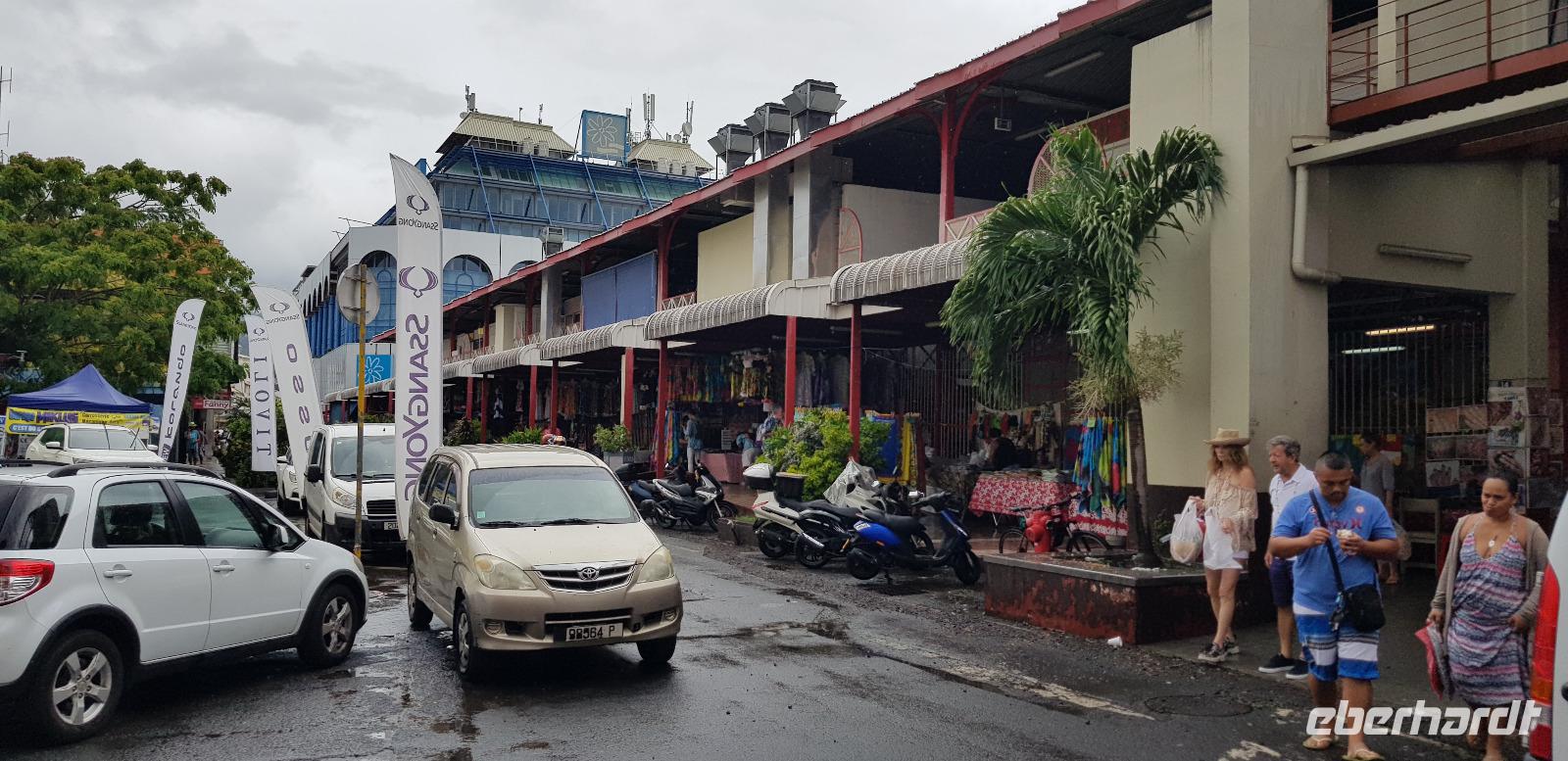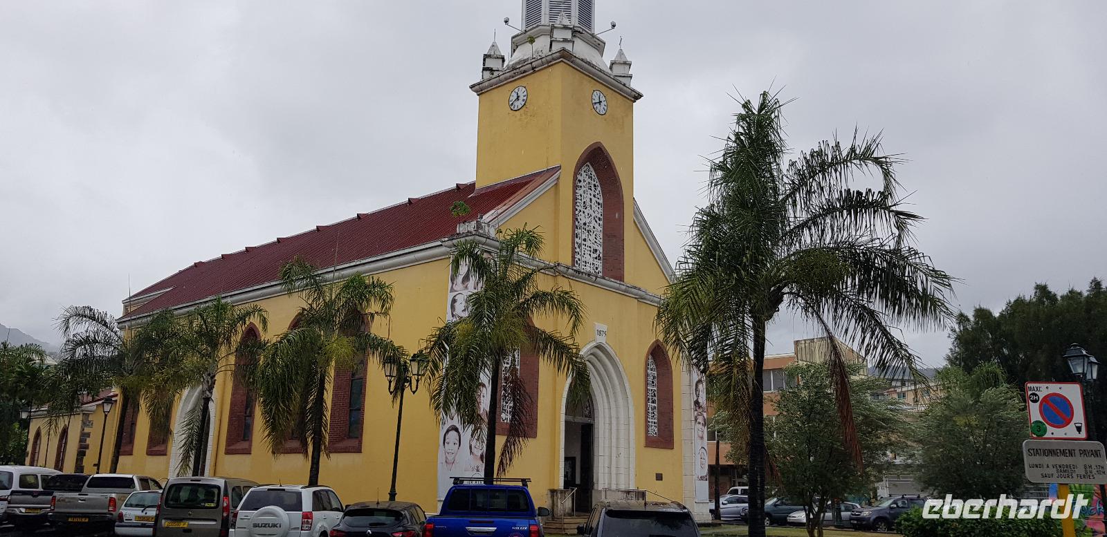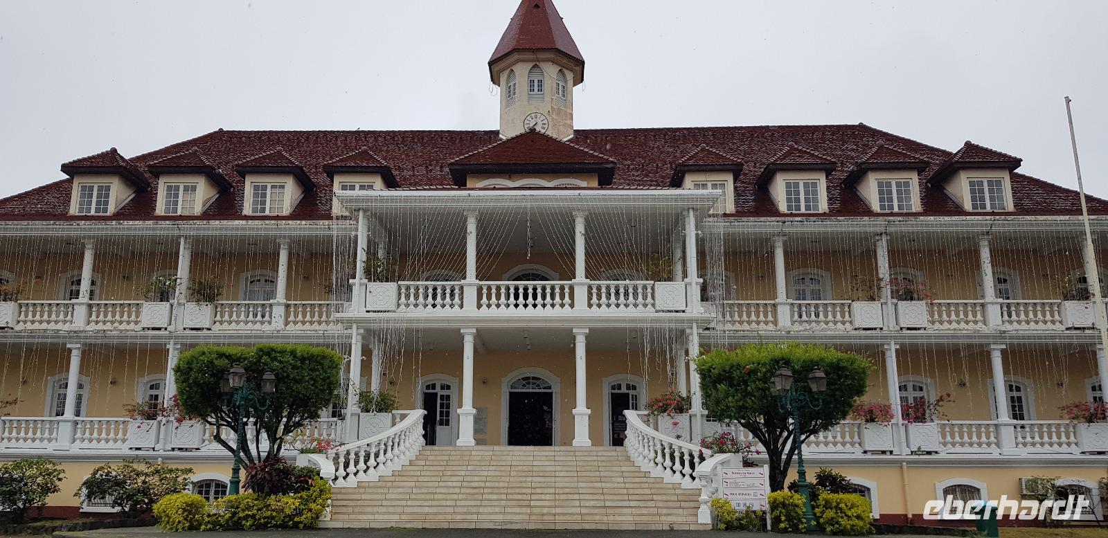 Wir spazieren entlang der Hafenpromenade zum Hôtel de Ville de Papeete - einem alten Kolonialhotel, dann weiter zur Kathedrale „Notre-Dame" und schließlich zur Markthalle.