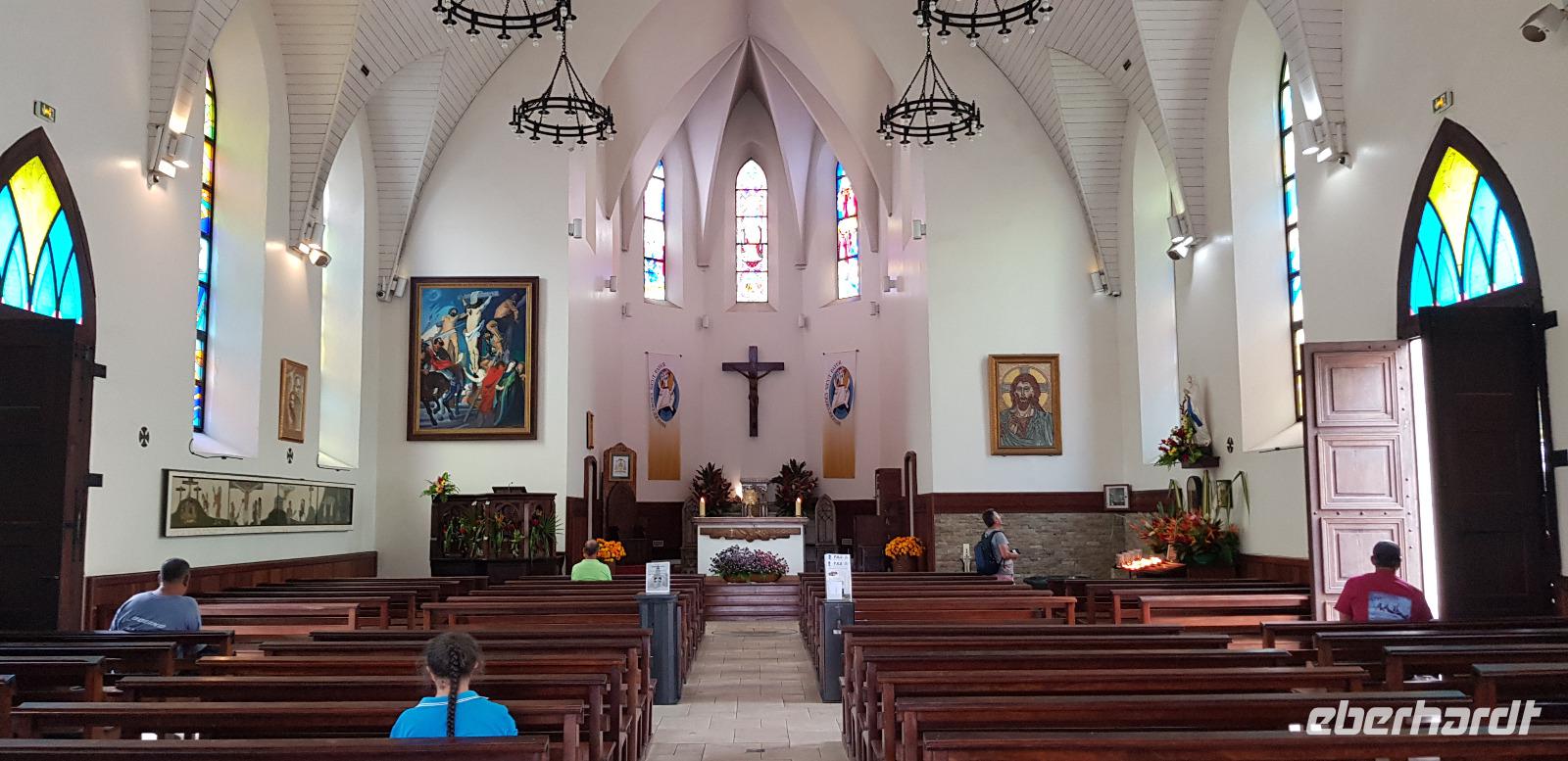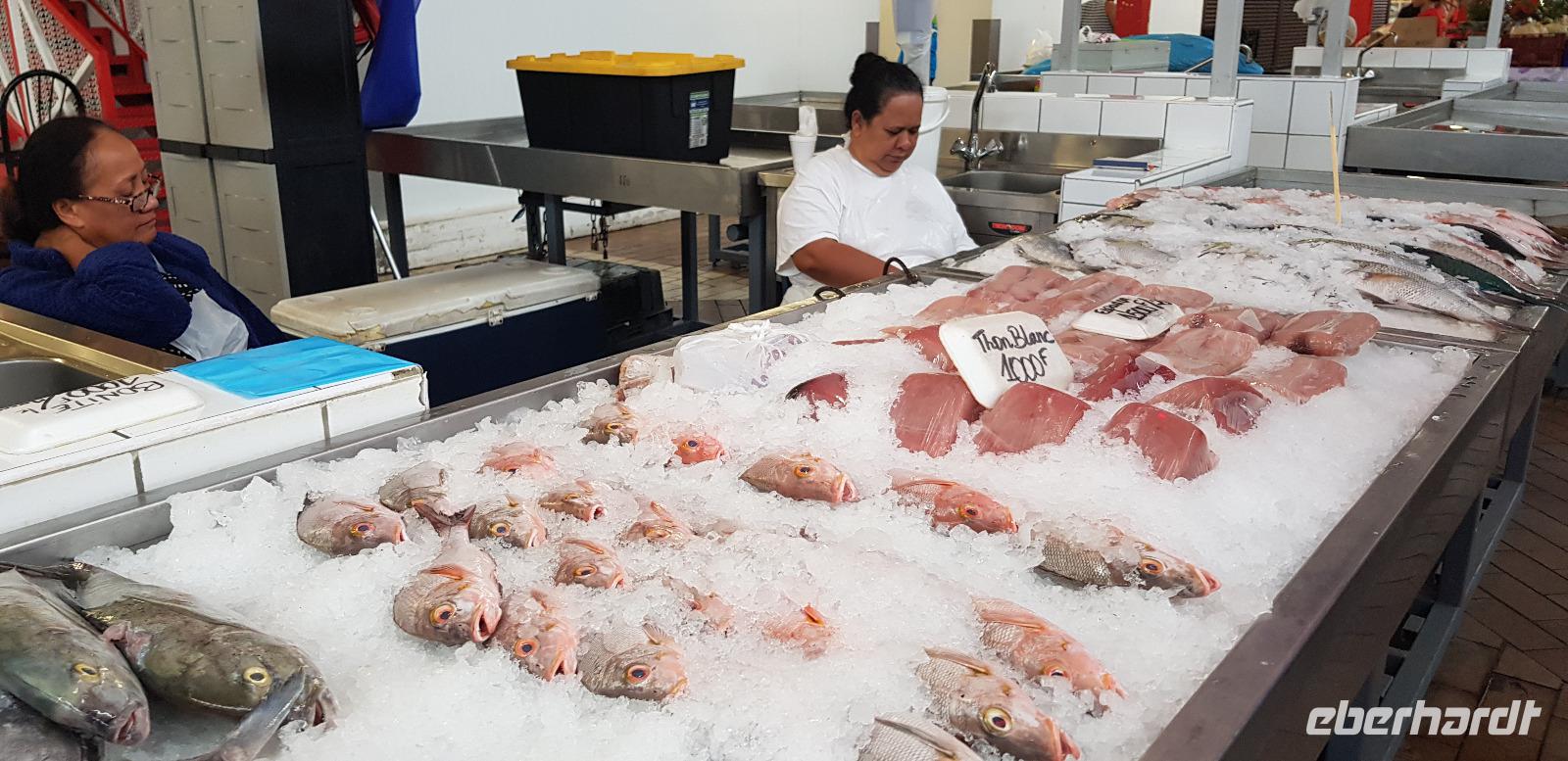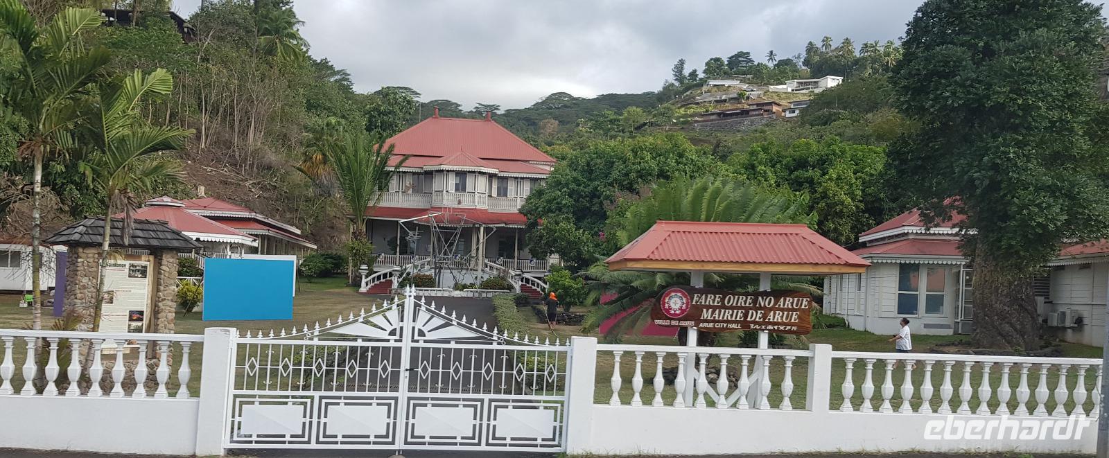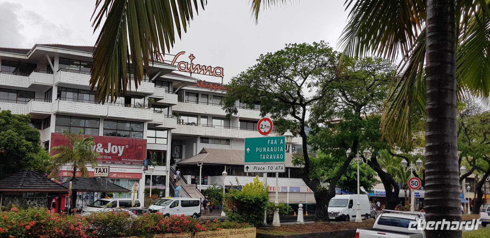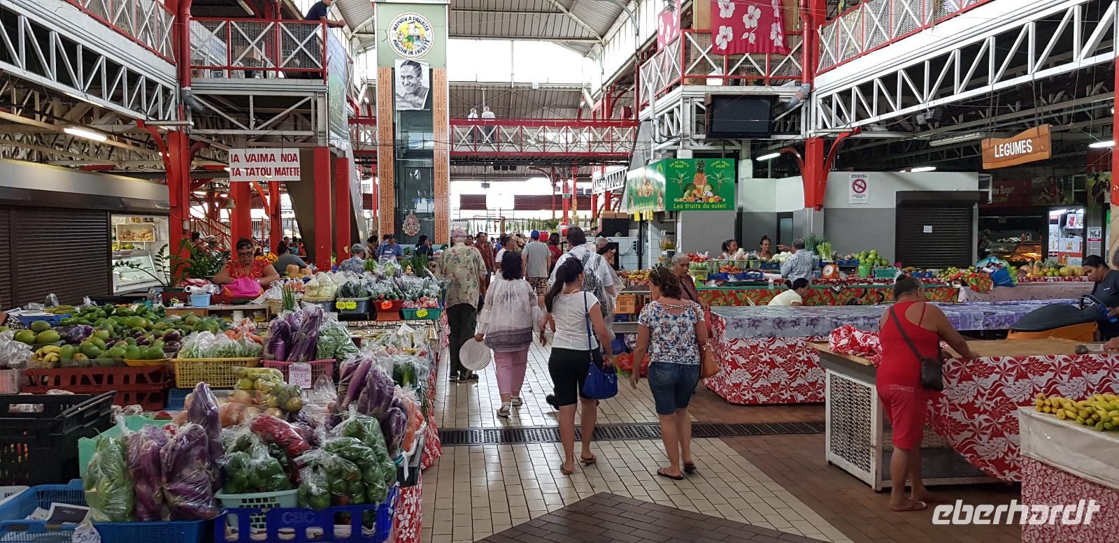 Wir spazieren entlang der Hafenpromenade zum Hôtel de Ville de Papeete - einem alten Kolonialhotel, dann weiter zur Kathedrale „Notre-Dame" und schließlich zur Markthalle.