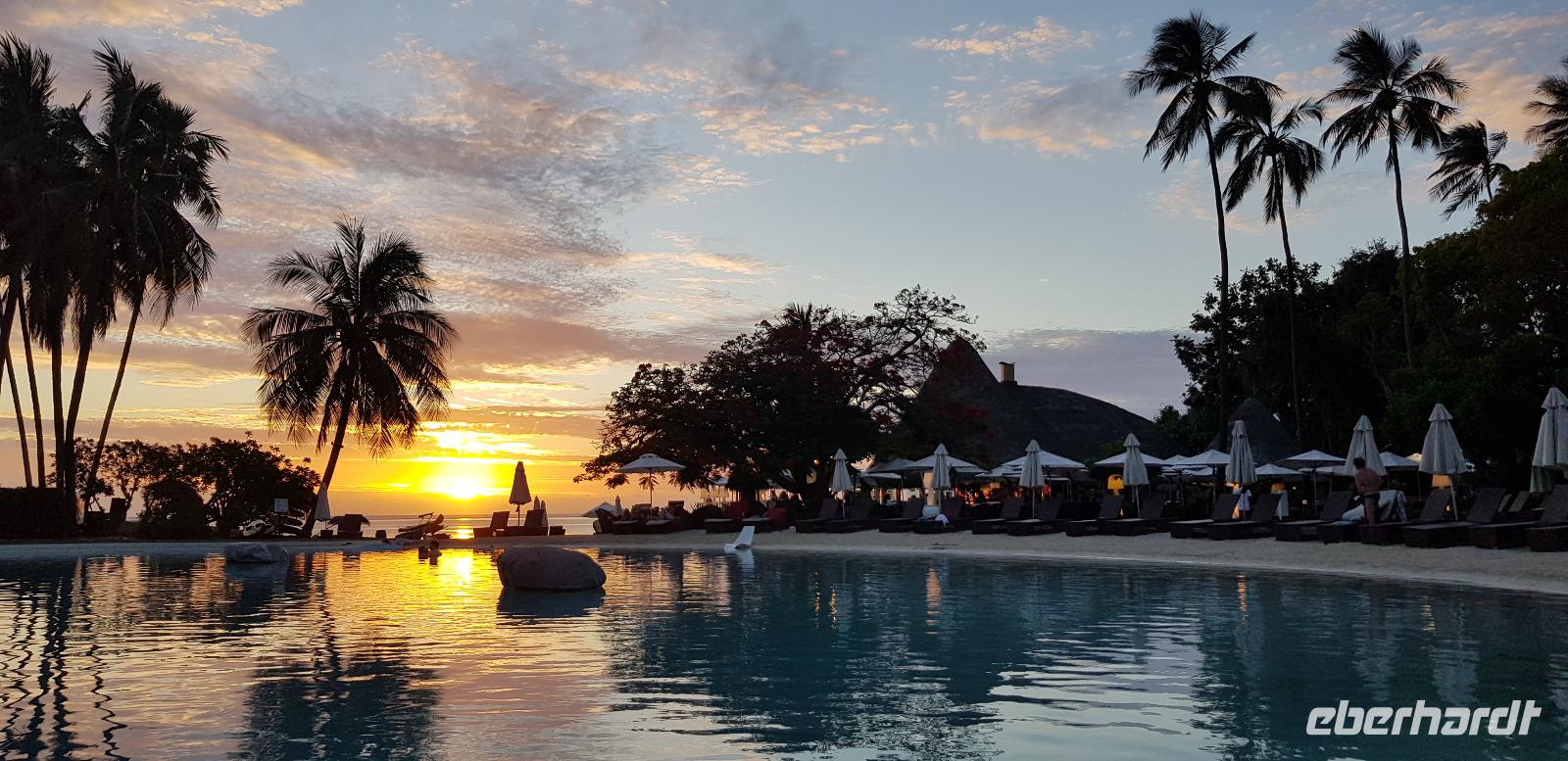 Wir genießen unseren freien Tag und entspannen am Pool oder Strand. Abends gehen die meisten mit mir im Strandrestaurant a-la-carte Abendessen.