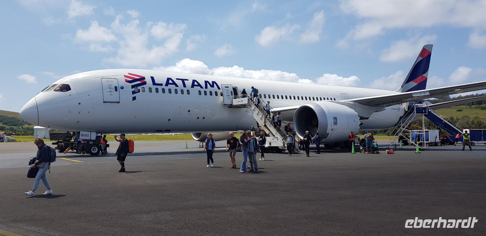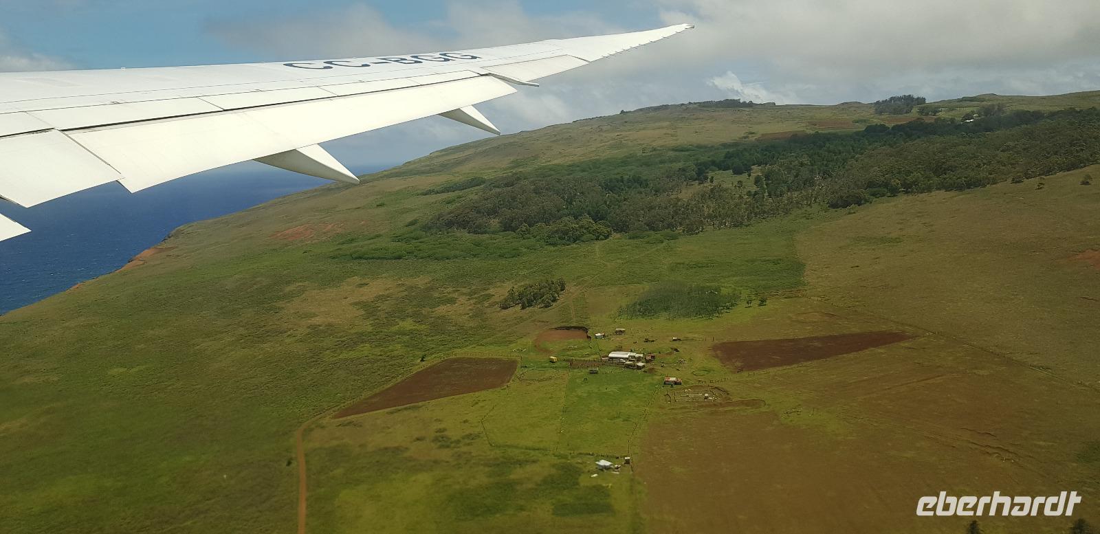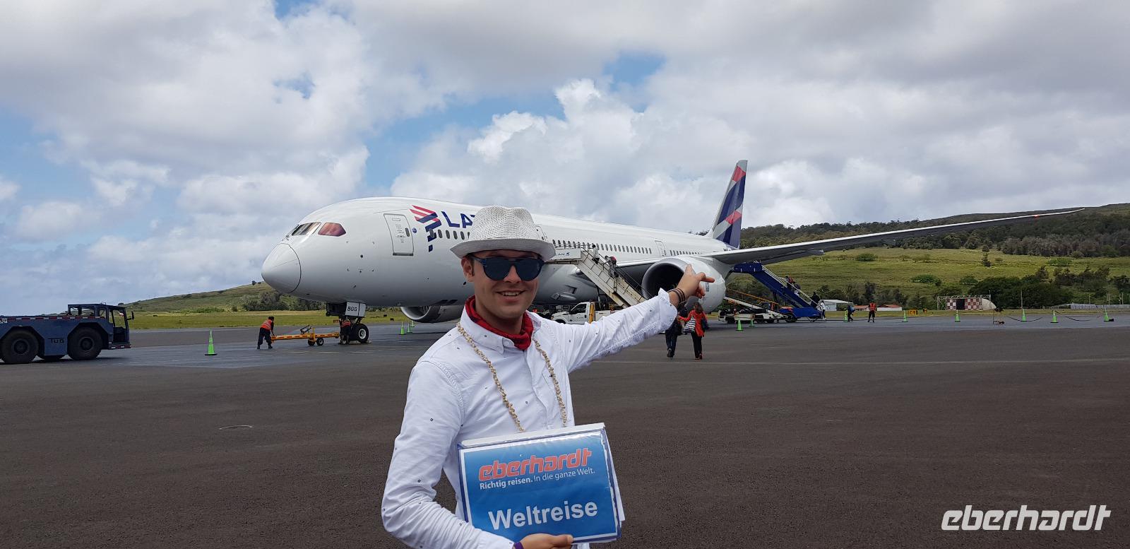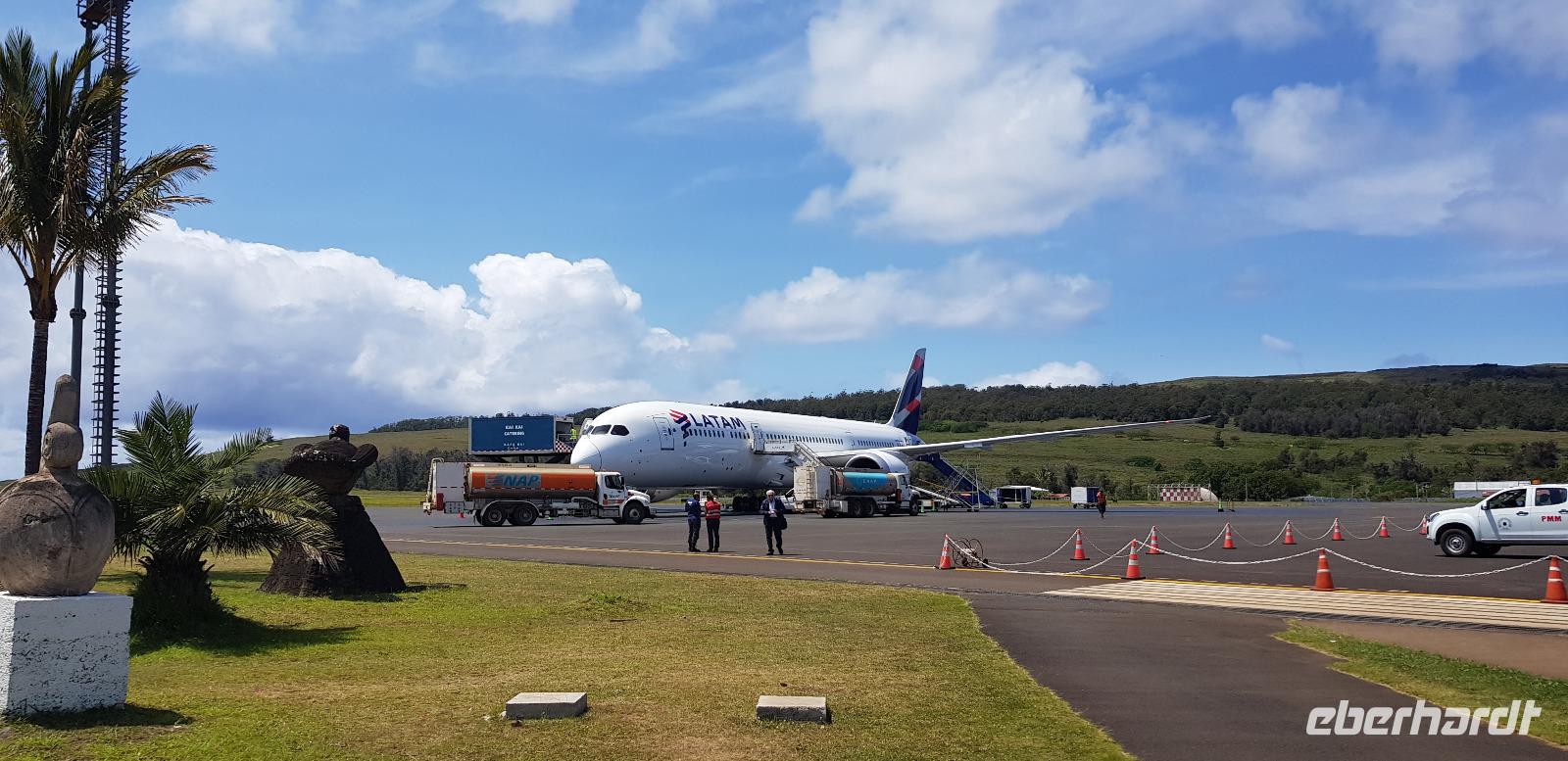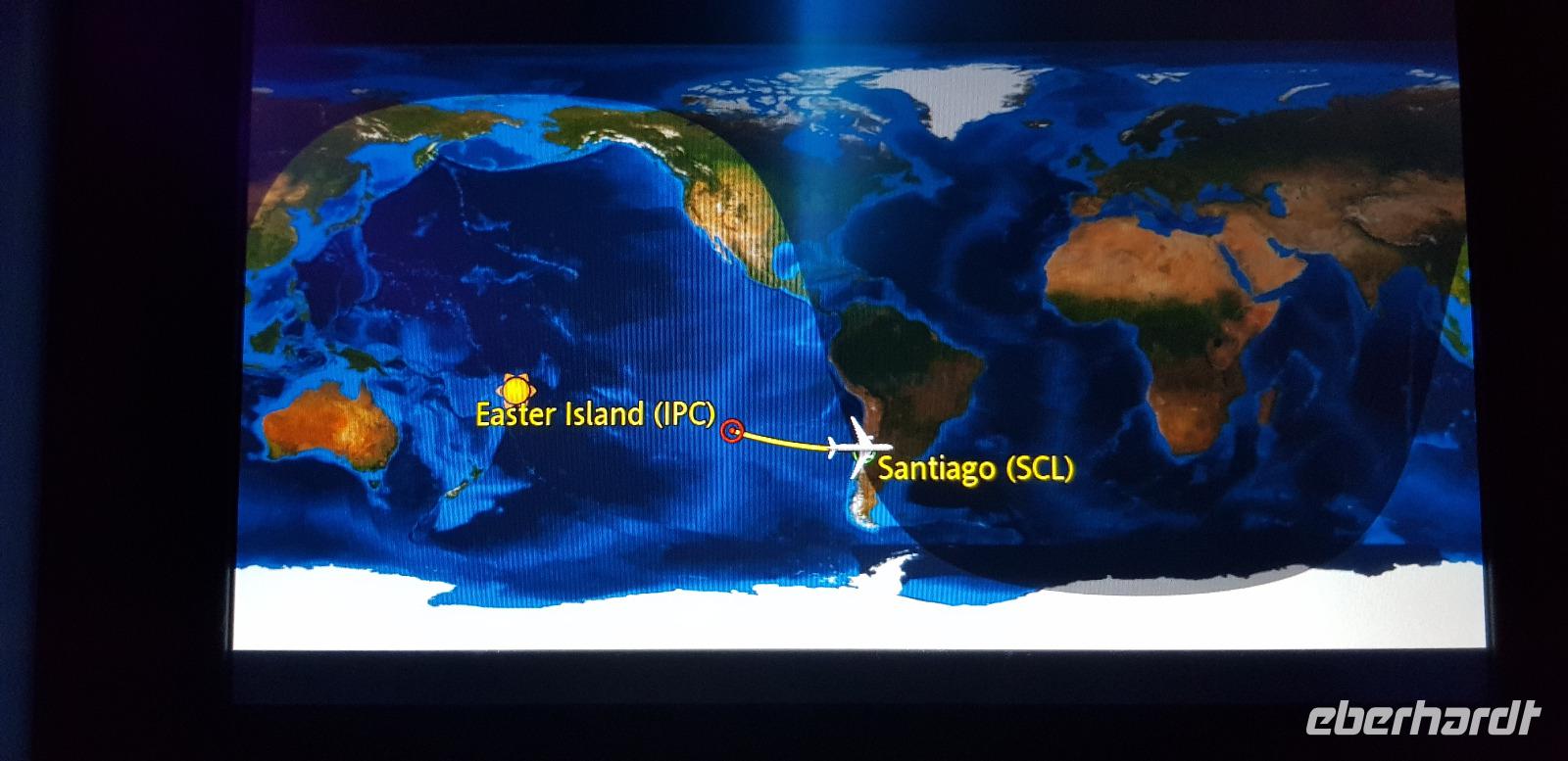 Kurz danach werden wir zum Flughafen gebracht und fliegen schließlich über die Osterinseln nach Santiago de Chile.