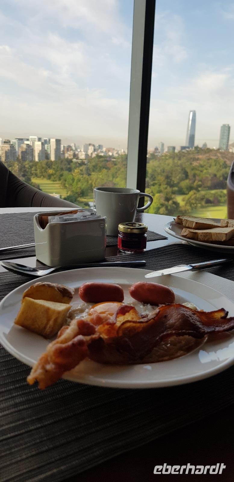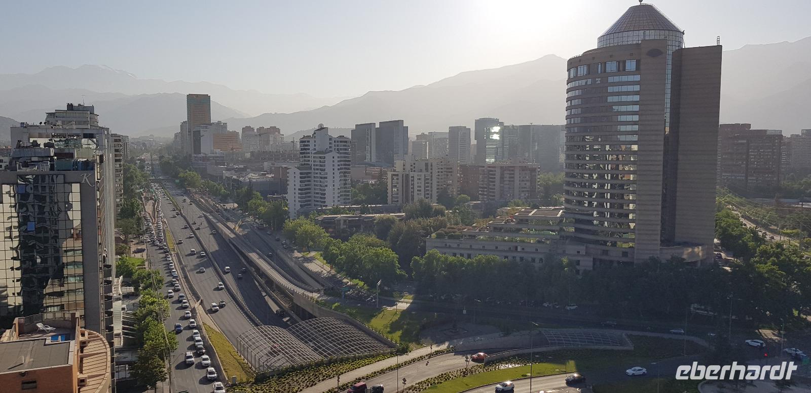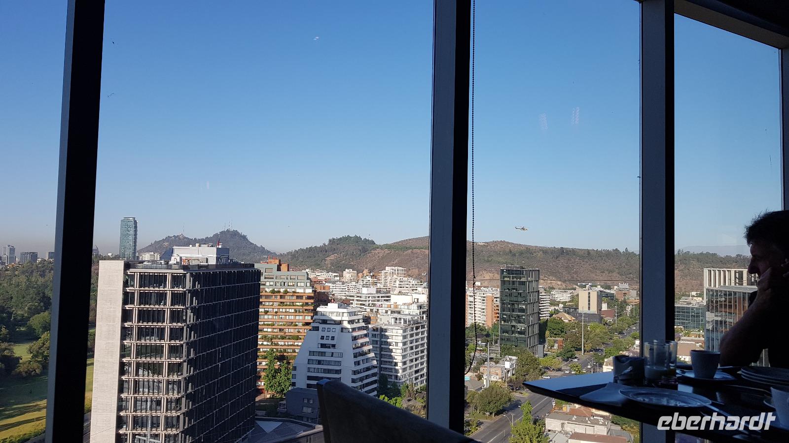 Gegen Abend erreichen wir das ebenso schicke 5-Sterne-Hotel-Cumbres Vitacura im Herzen Santiagos. Einige gehen mit mir noch eine Kleinigkeit essen, bevor wir uns auf unser Bett freuen.